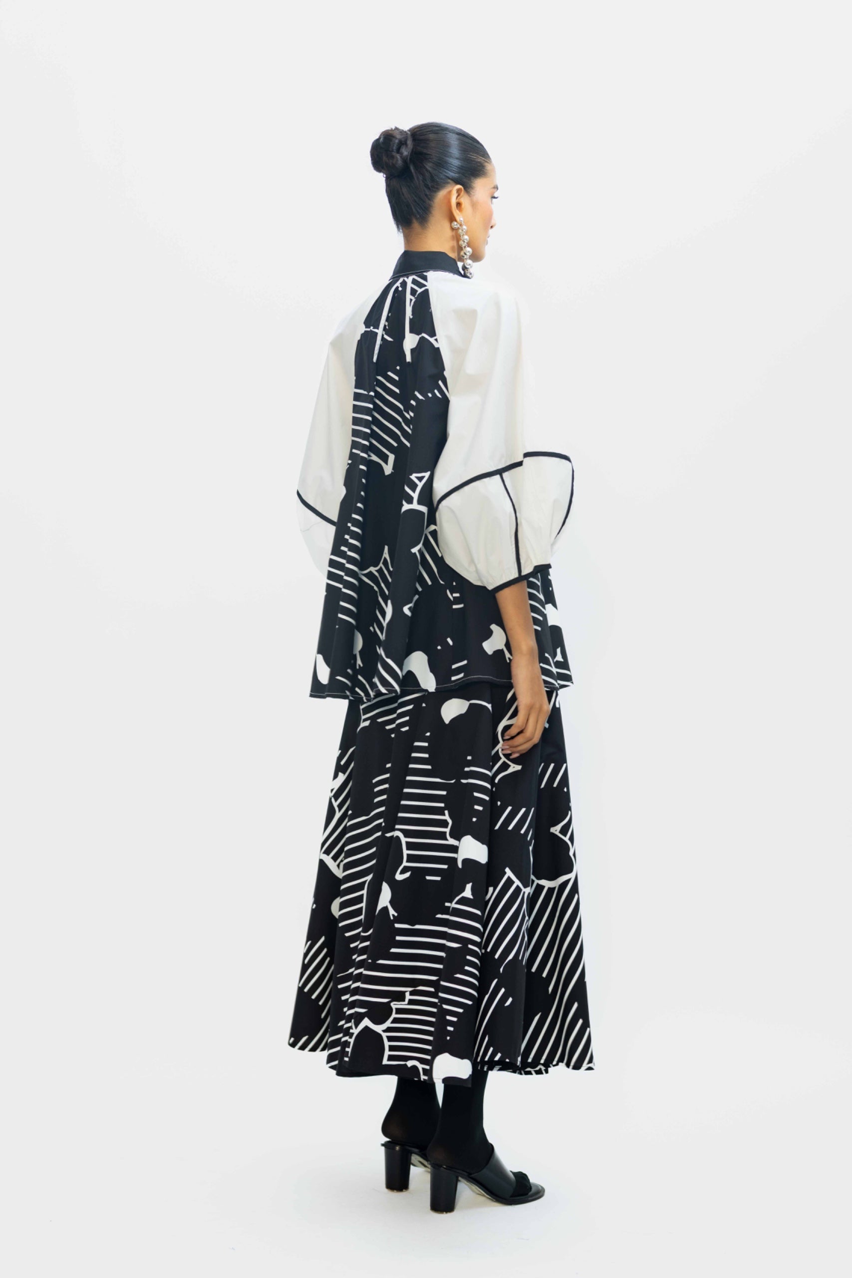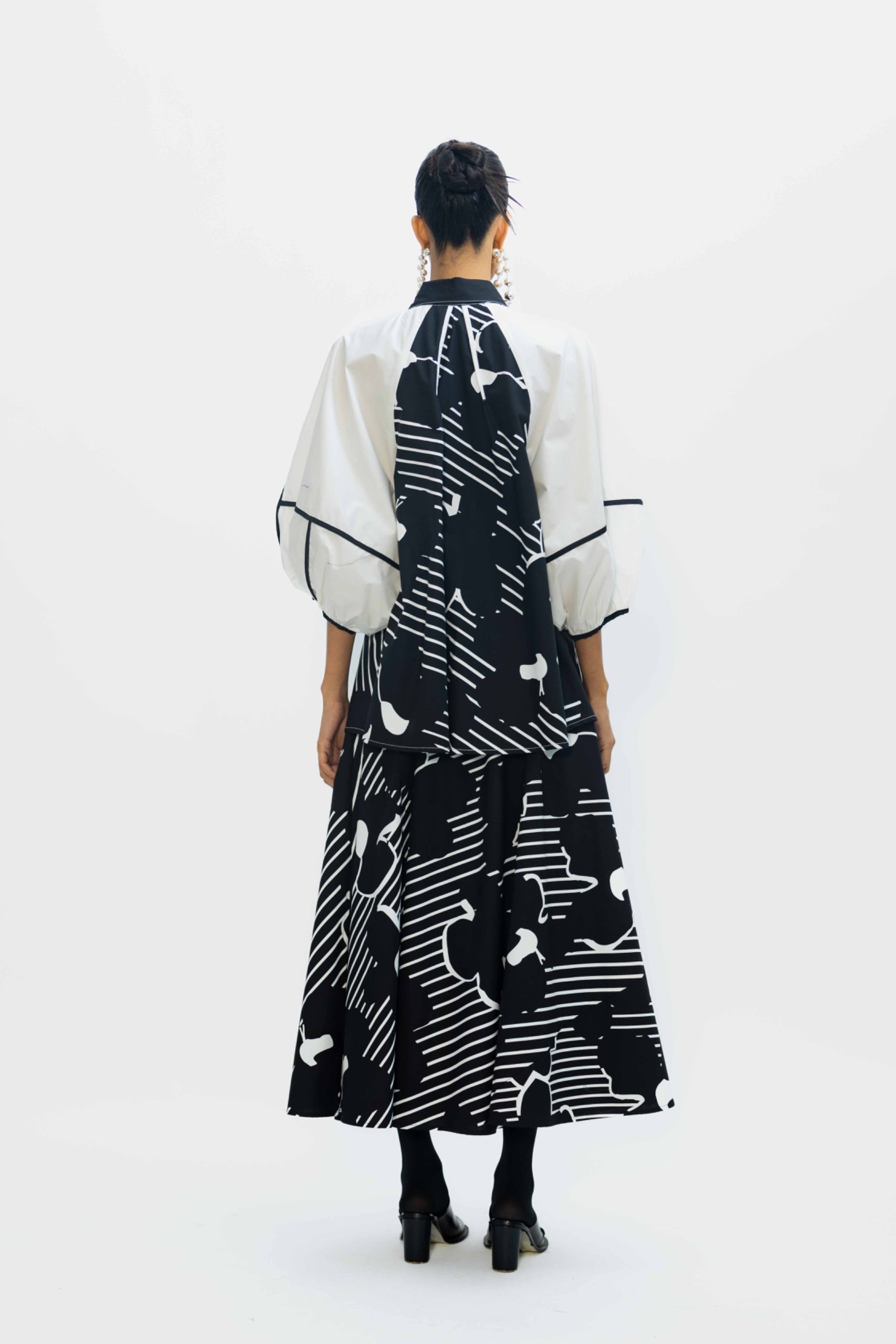 Make a statement with this Leg o’ Mutton sleeved Shirt, featuring contrasting slot details for a bold, modern touch. The structured sleeves add a dramatic flair, while the refined tailoring ensures a sophisticated, standout look.