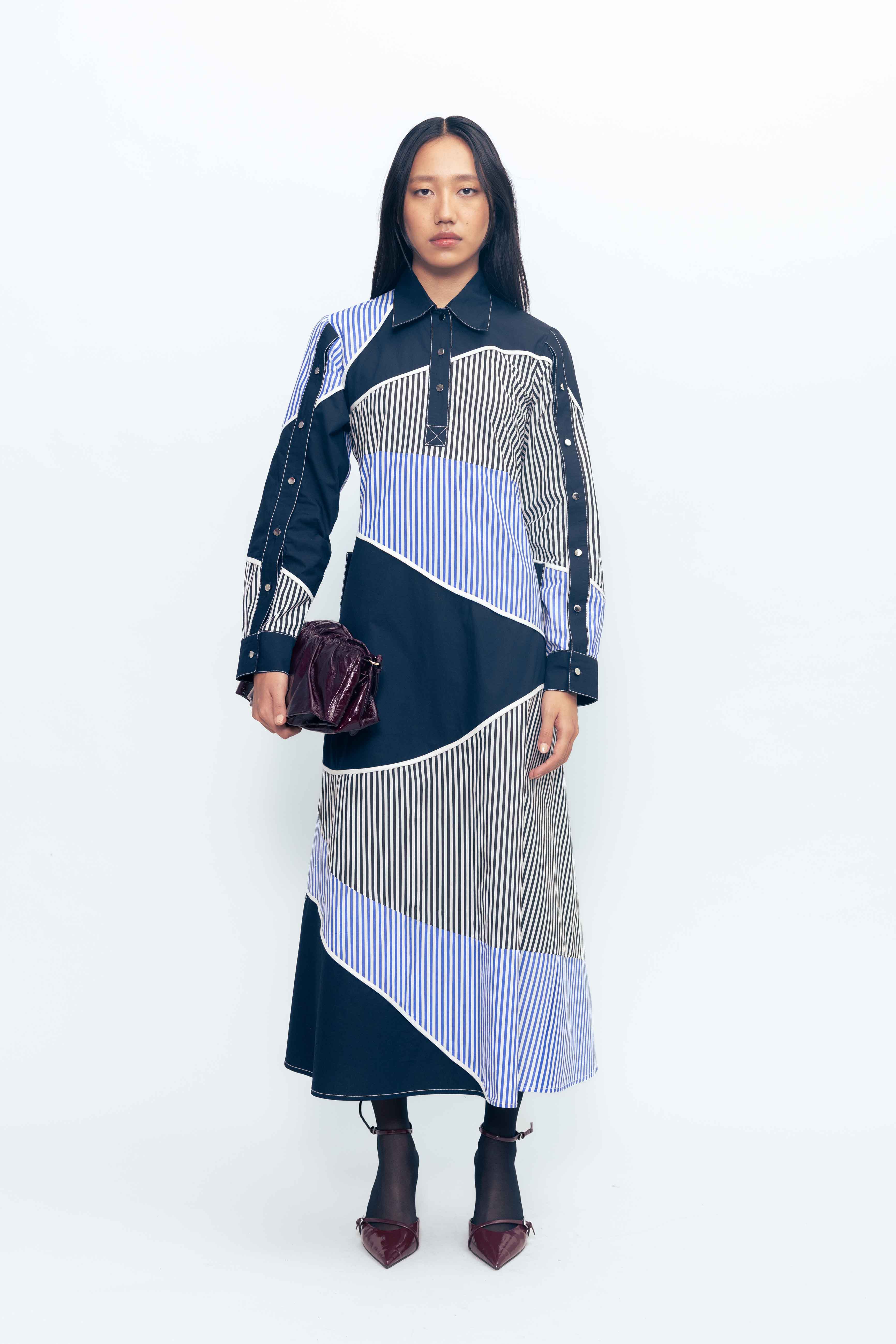 The Classic Curve Colour-Blocked Dress blends timeless elegance with a modern graphic edge. Featuring smooth, curved color-block panels that contour the body, it enhances and flatters the silhouette with subtle definition.