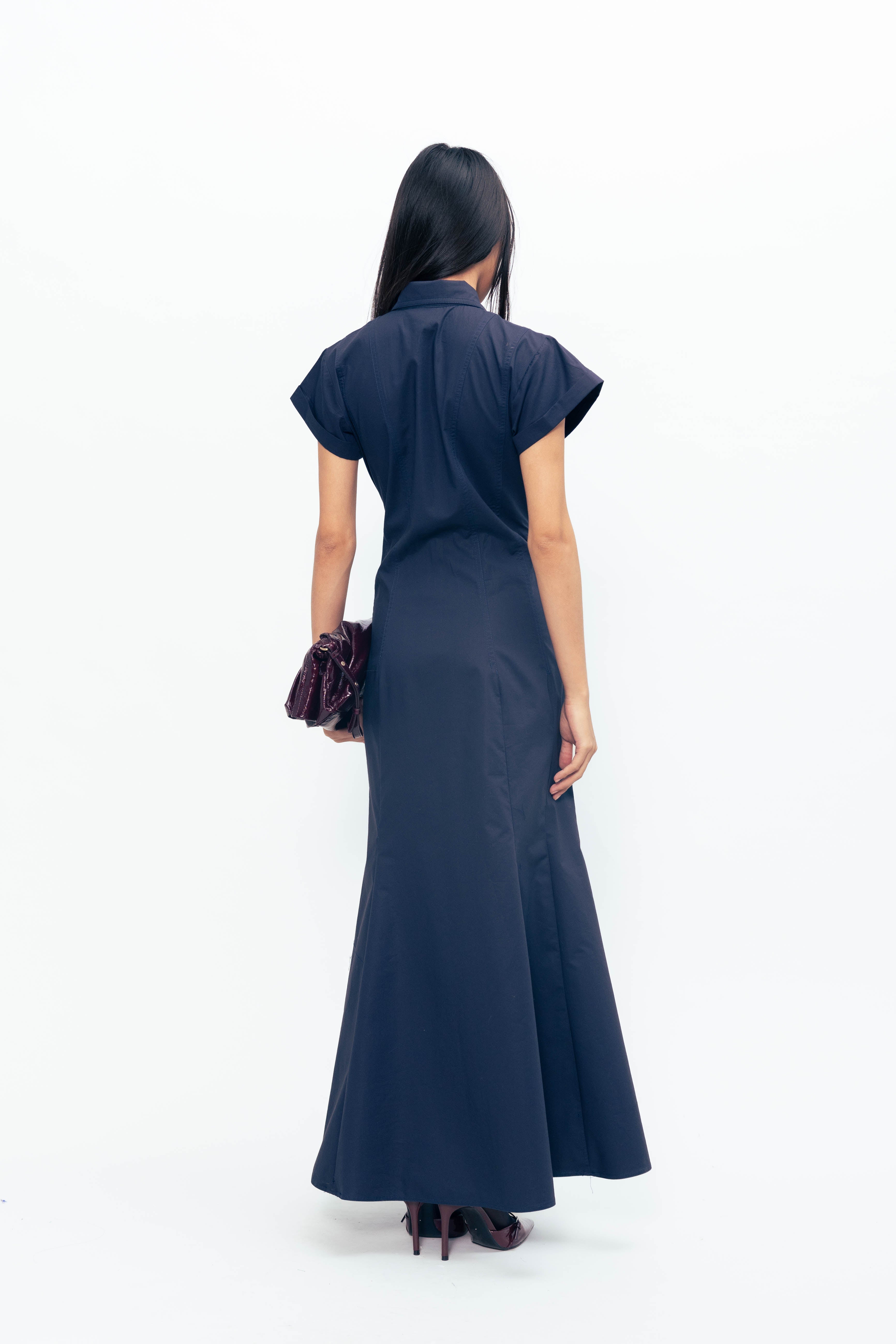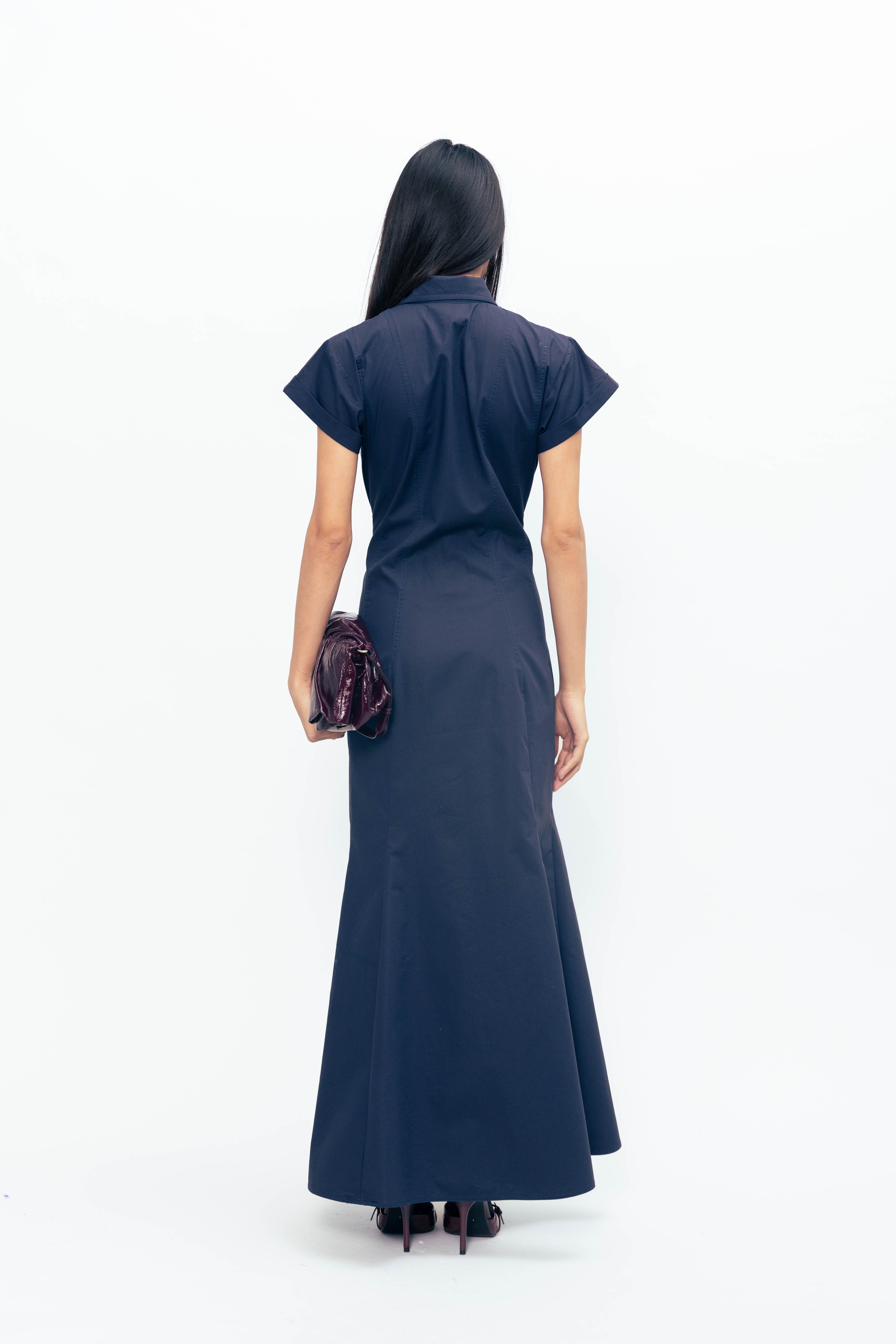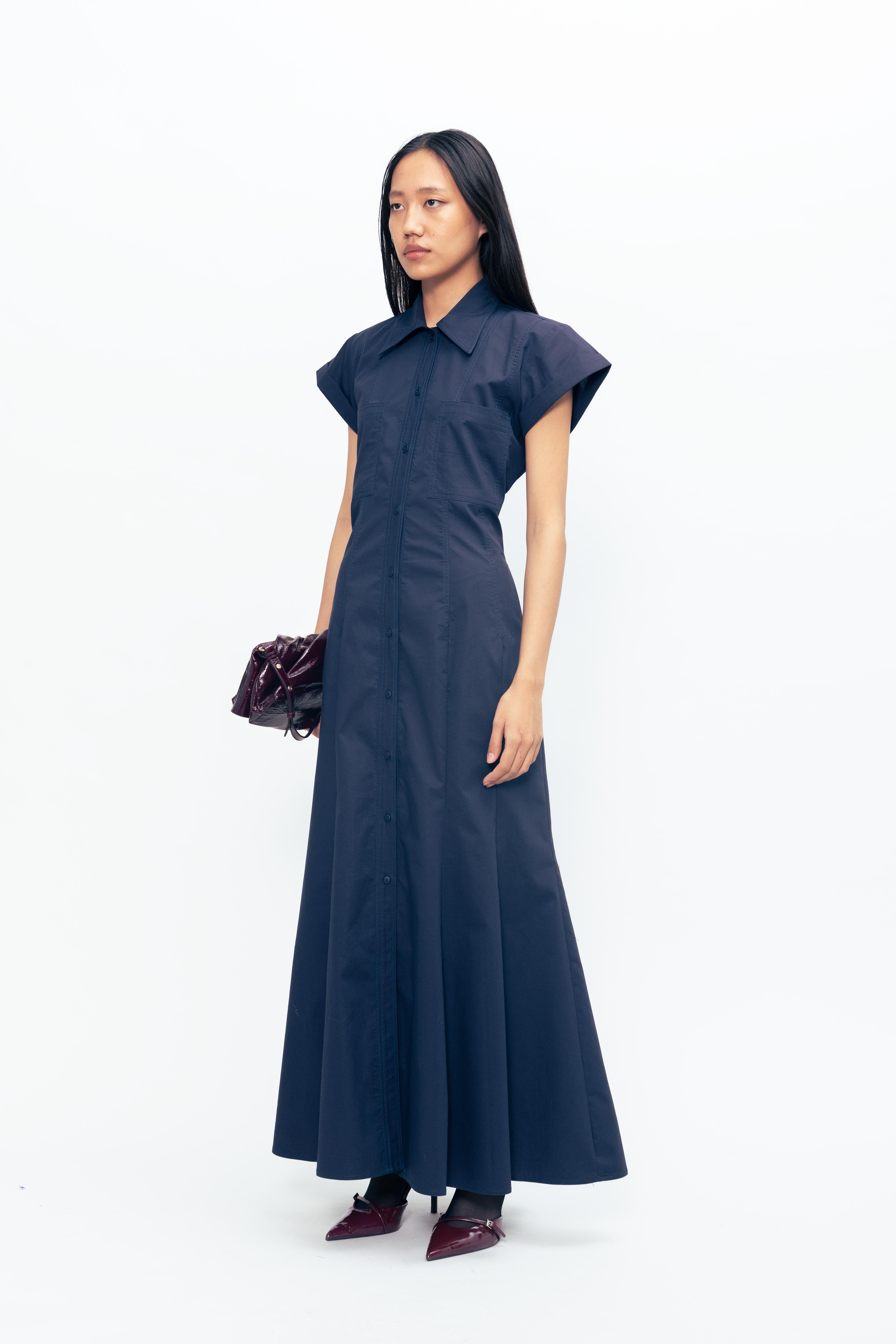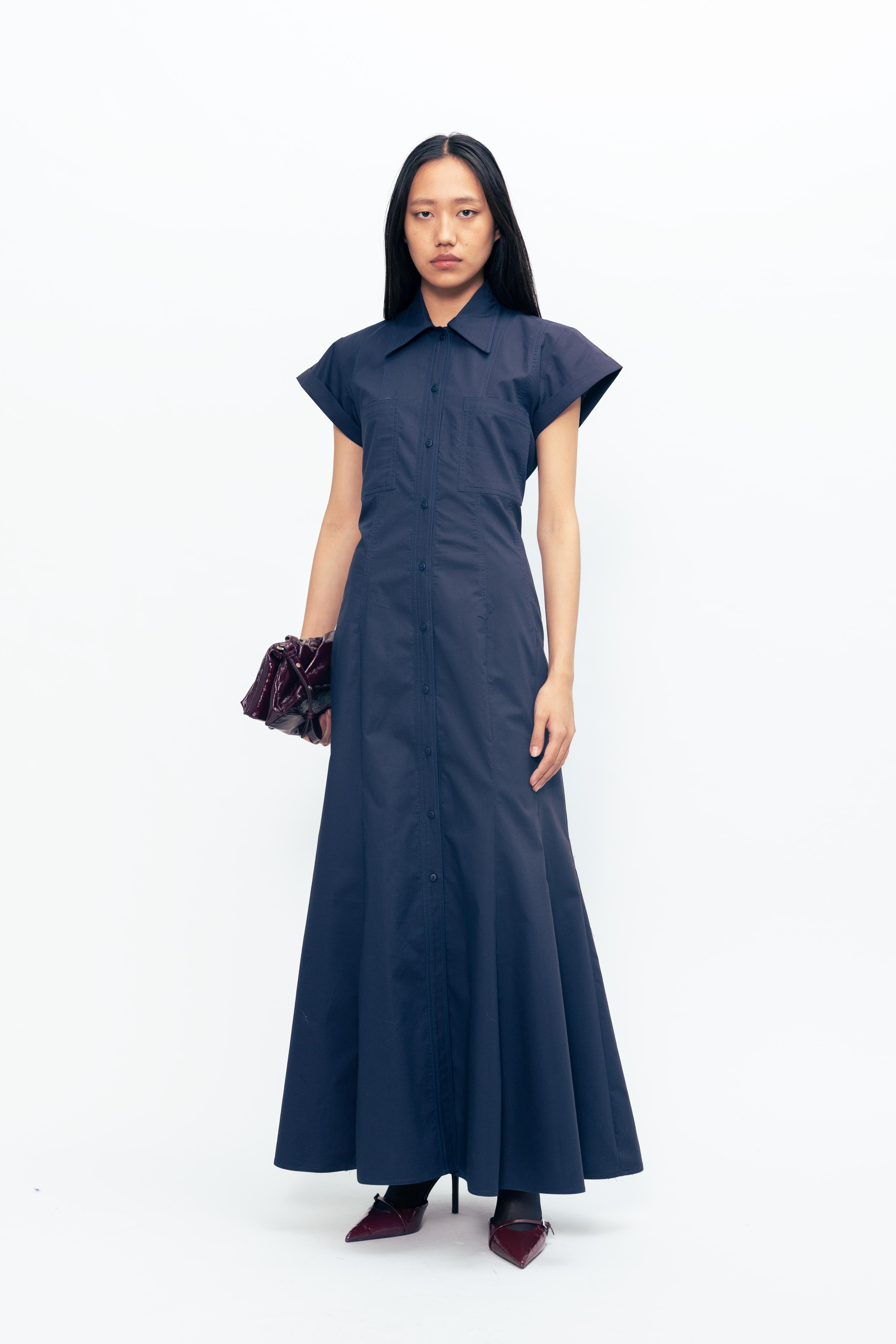 This button-down shirt dress offers a clean, structured silhouette softened by the ease of cap sleeves. Tailored for a relaxed yet polished fit, it balances classic detailing with everyday versatility. Whether styled for work or off-duty moments, it’s a timeless piece designed for effortless, understated elegance