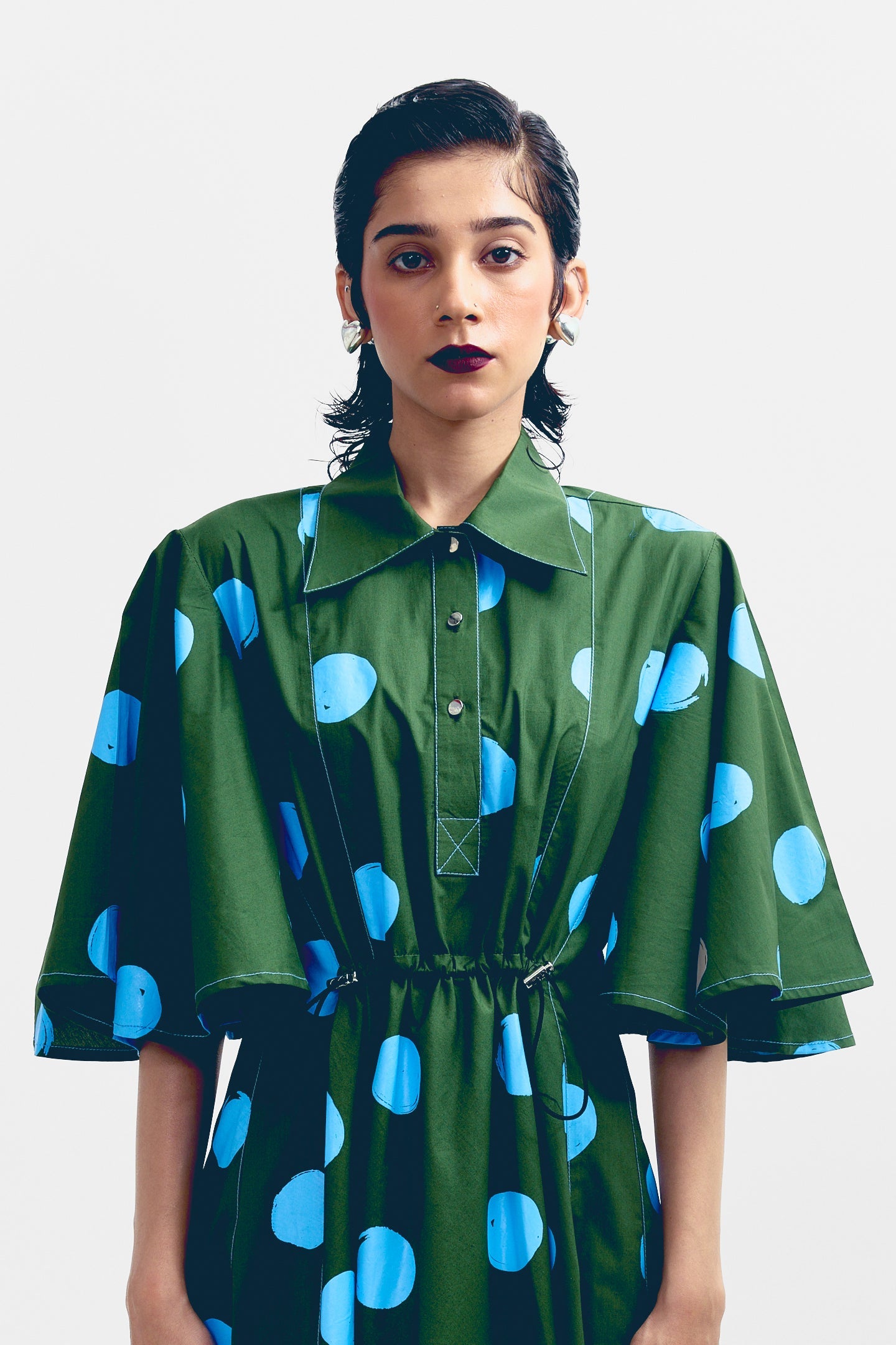 A comfortable and stylish dress with flared sleeves and an adjustable drawstring waist. Made from soft, breathable fabric, it’s easy to wear all day. The relaxed fit and flowy design make it perfect for casual outings or dressed-up occasions.
