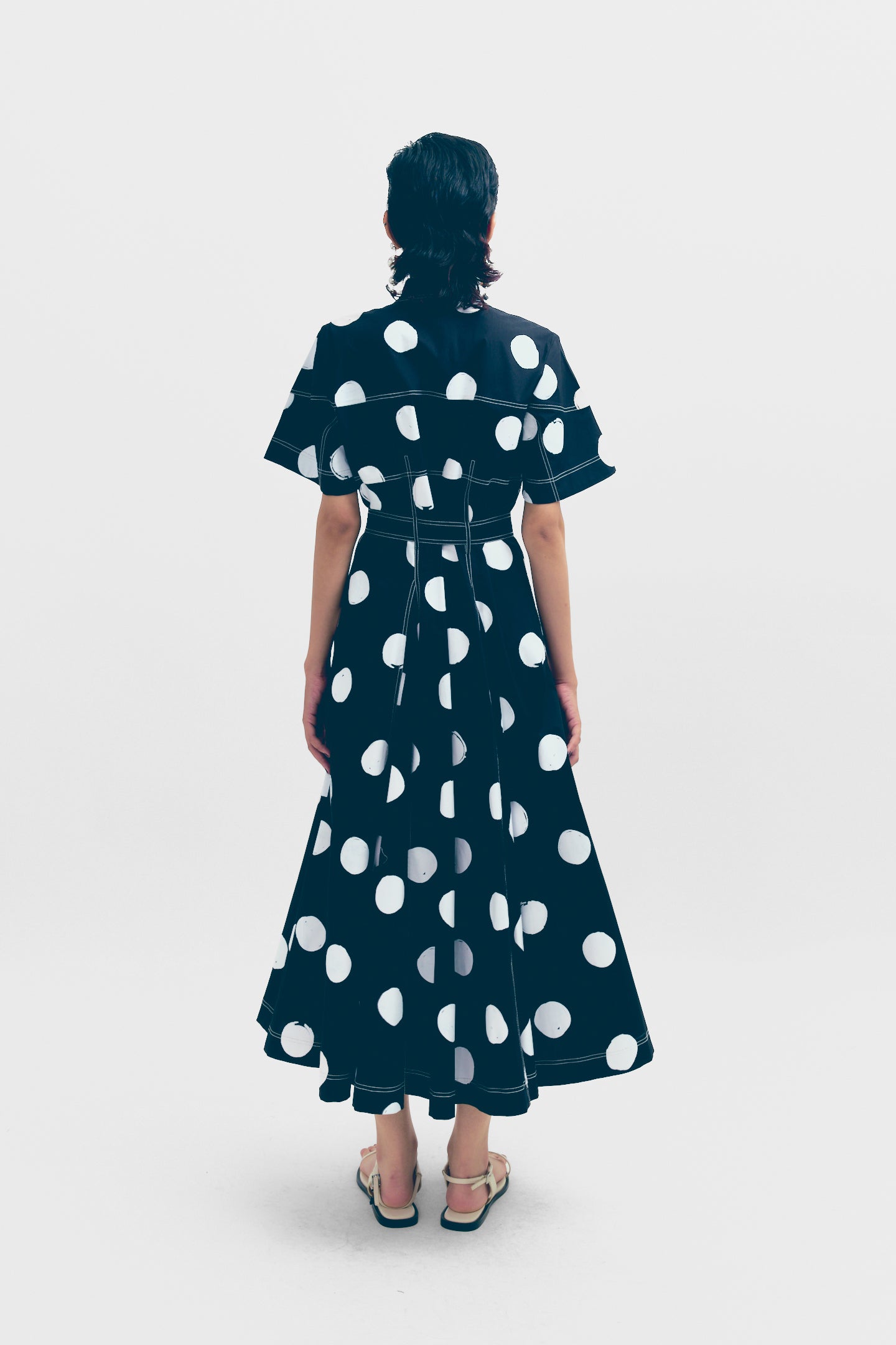 Shirt dress with contrast top stitch detailing and a detached belt.