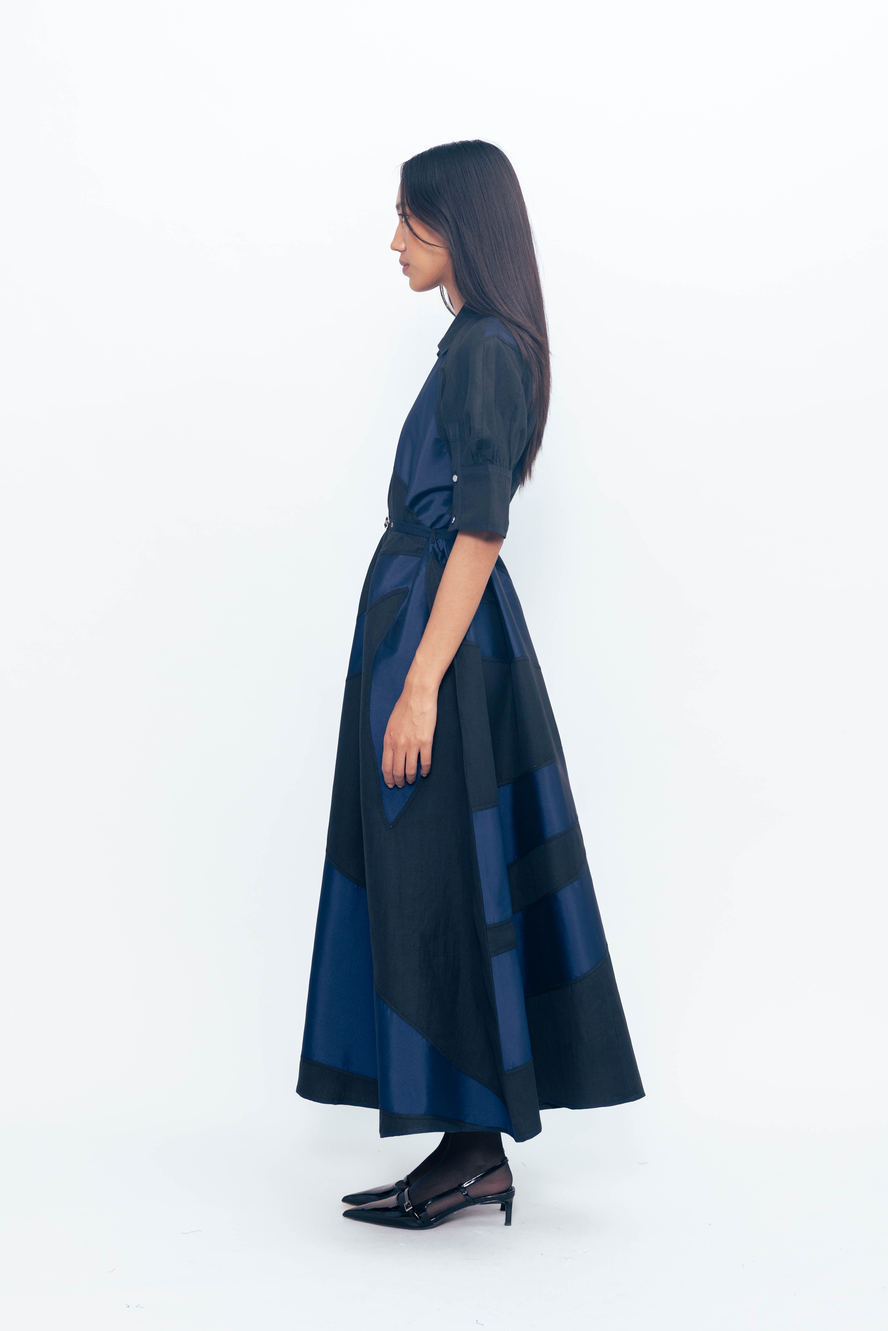 The Contrast Patchwork Midi Dress with Belt is a modern blend of structure and style. Featuring bold patchwork panels in contrasting tones, it creates a visually striking look with clean lines and subtle texture.