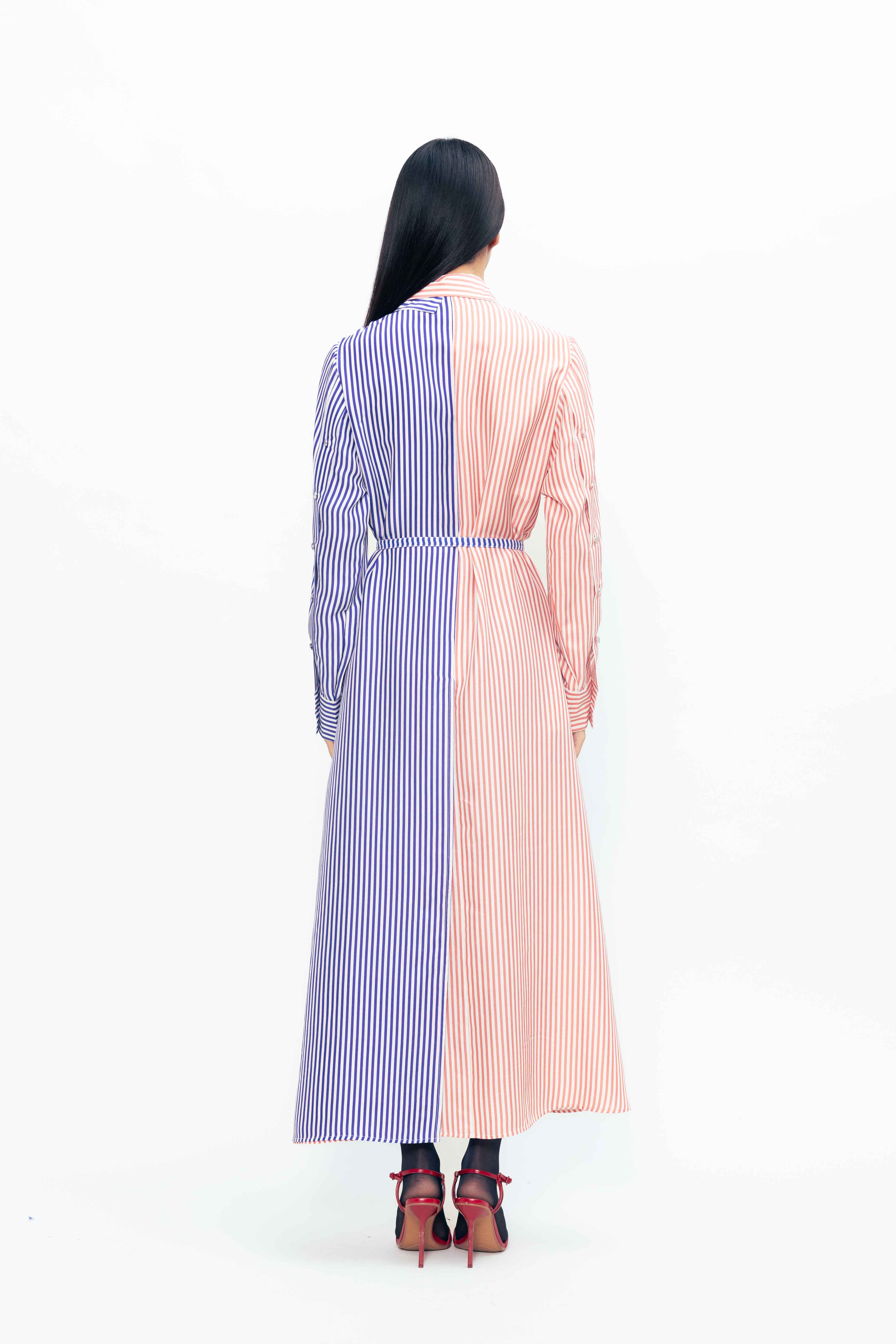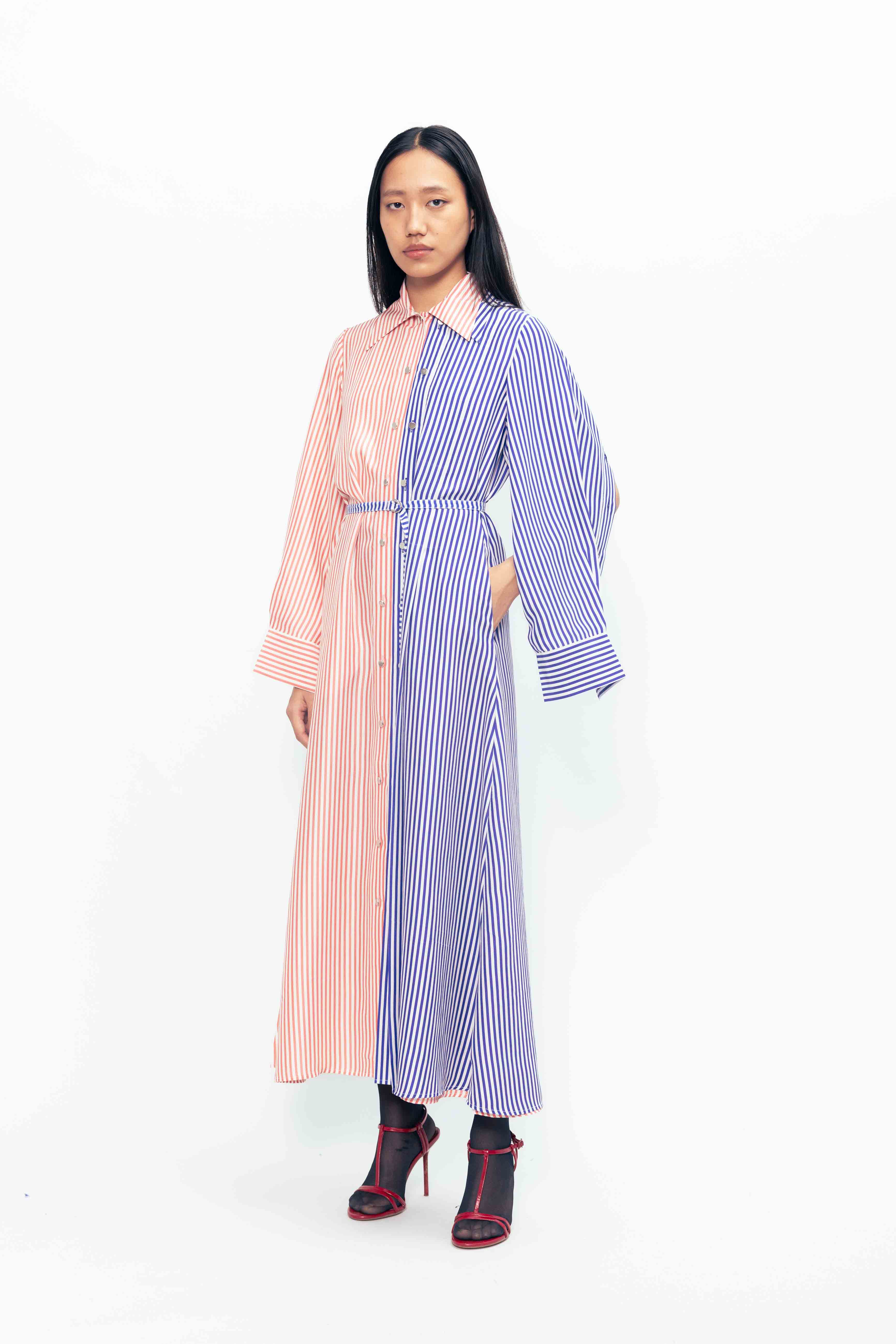 The button-down front and classic collar offer timeless appeal, while the lightweight fabric ensures graceful movement. Perfect for elegant daywear or understated evening style.