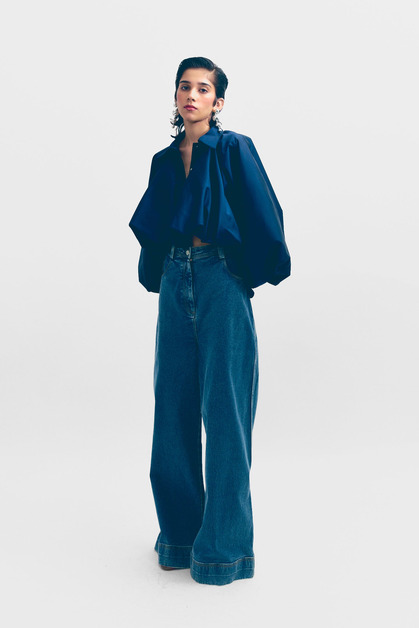 This balloon jacket adorned with tying detail at the hem offers a whimsical and feminine touch to outerwear. The balloon silhouette adds volume and drama and romantic aesthetic. The tying detail at the hem allows for customizable styling options, adding versatility to the piece. Perfect for adding a statement layer to any outfit, this jacket exudes both style and personality.