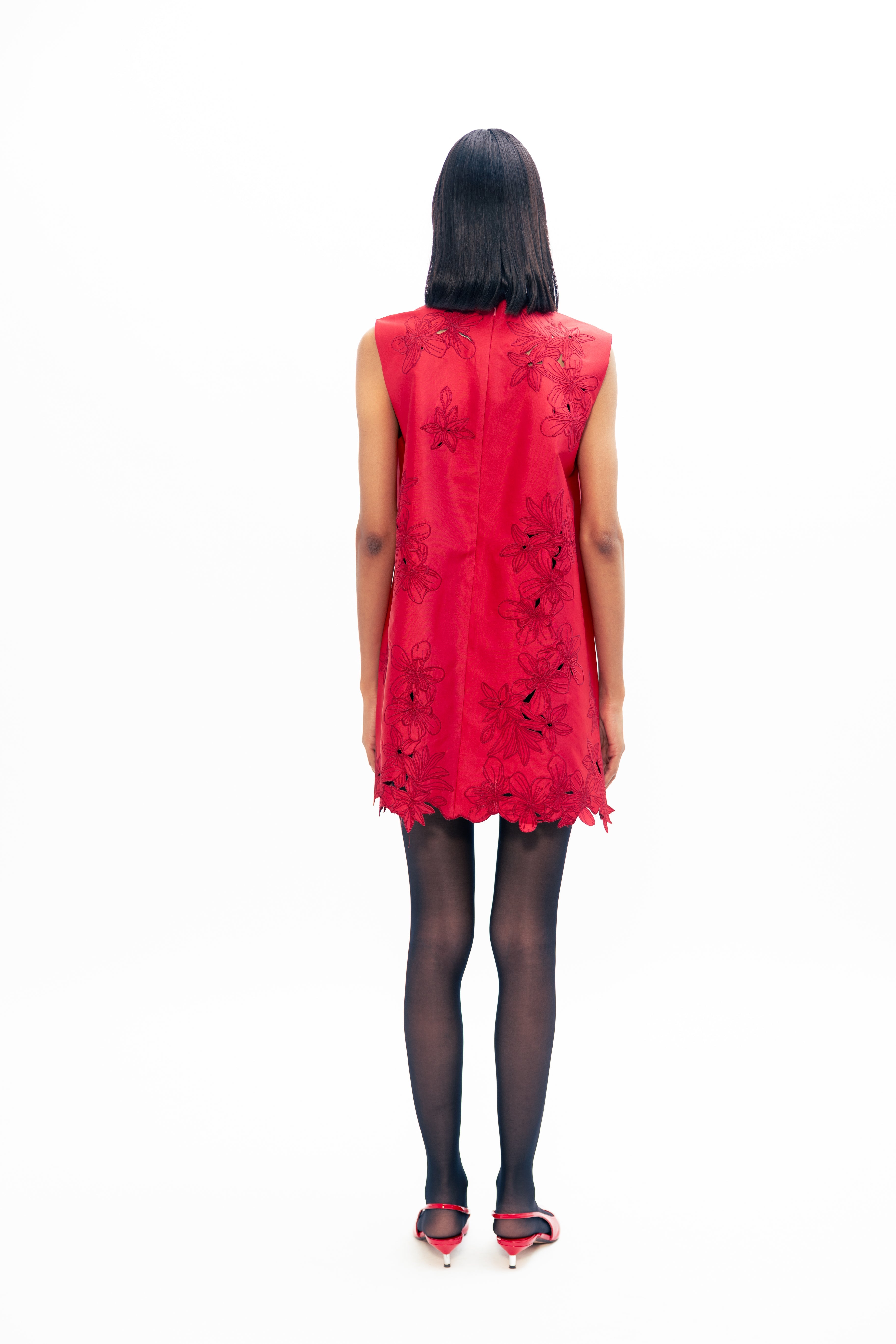 A study in shadow and intricacy, this piece is defined by its openwork surface—delicate yet deliberate. Negative space becomes pattern, with every cut and curve revealing just enough. Its form is fluid, shaped to follow the body with quiet elegance, while the surface shifts between opacity and air. A bold softness runs through it, offering both strength and lightness in one considered gesture.