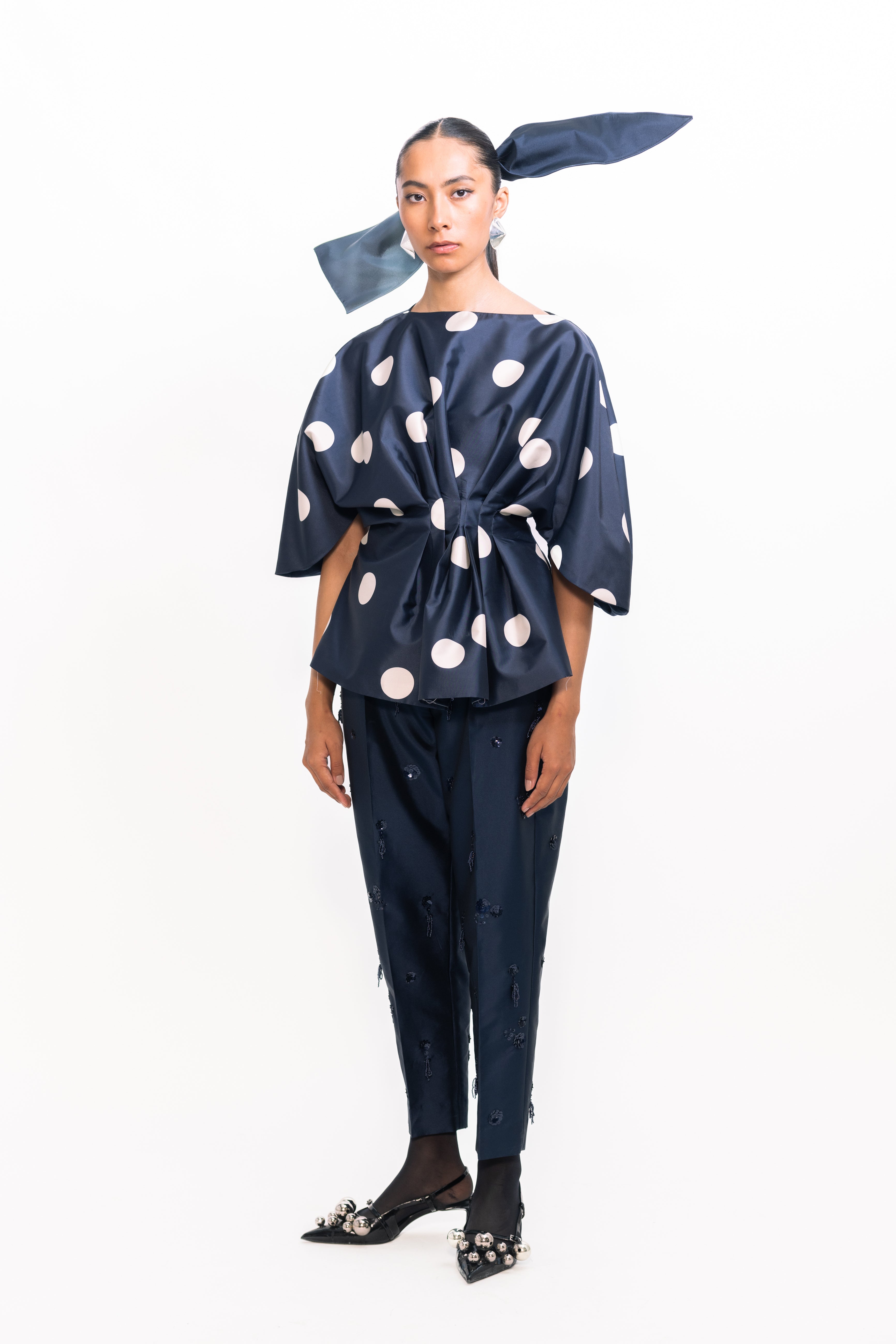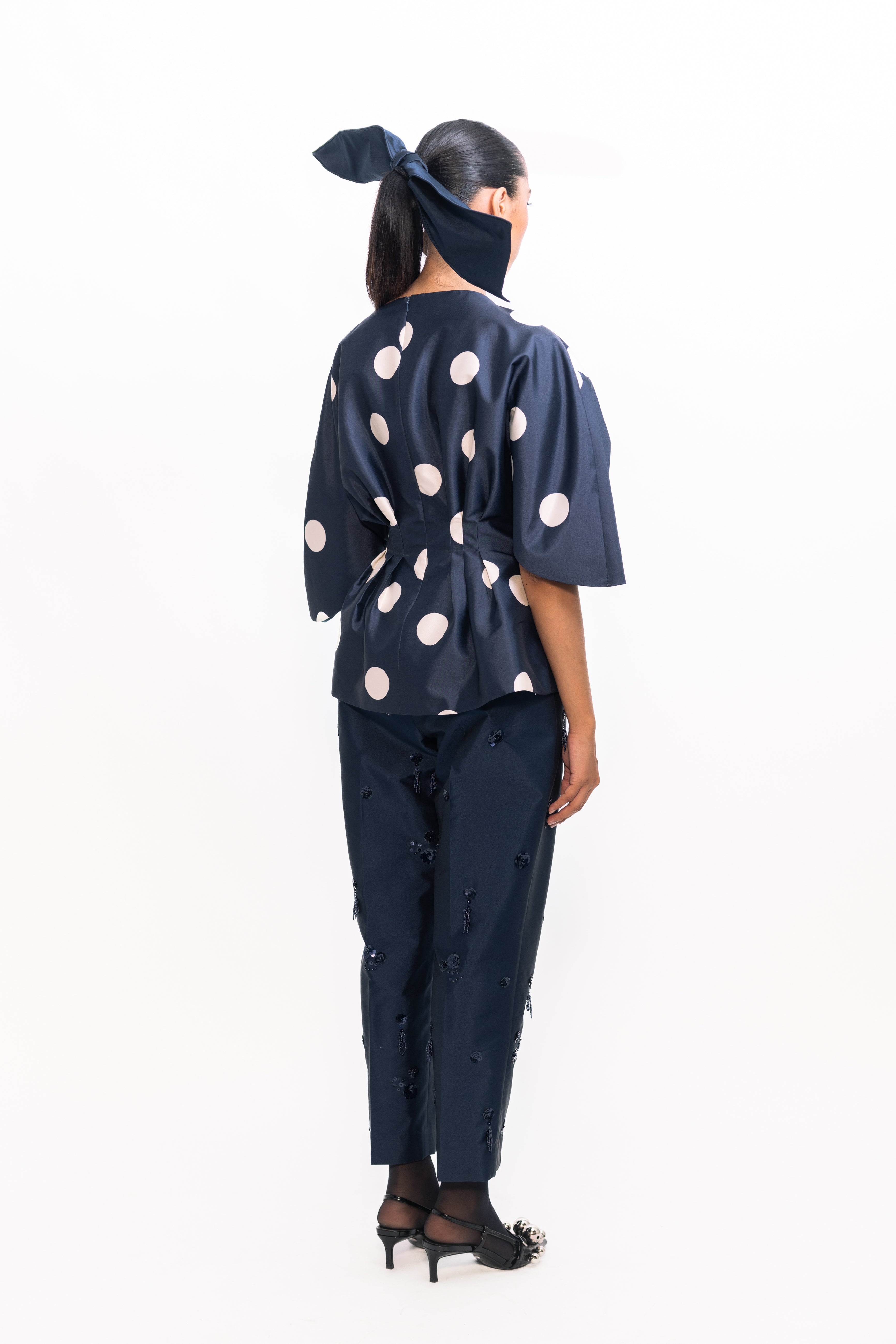 These high-waisted cigarette trousers offer a sleek, tailored silhouette that hugs the body from waist to ankle. Embellished with shimmering floral dangler sequins, they bring a striking, textural sparkle to the classic slim fit. Perfect for evening events or standout styling, this versatile piece pairs effortlessly with everything from minimalist tops to coordinated statement pieces.