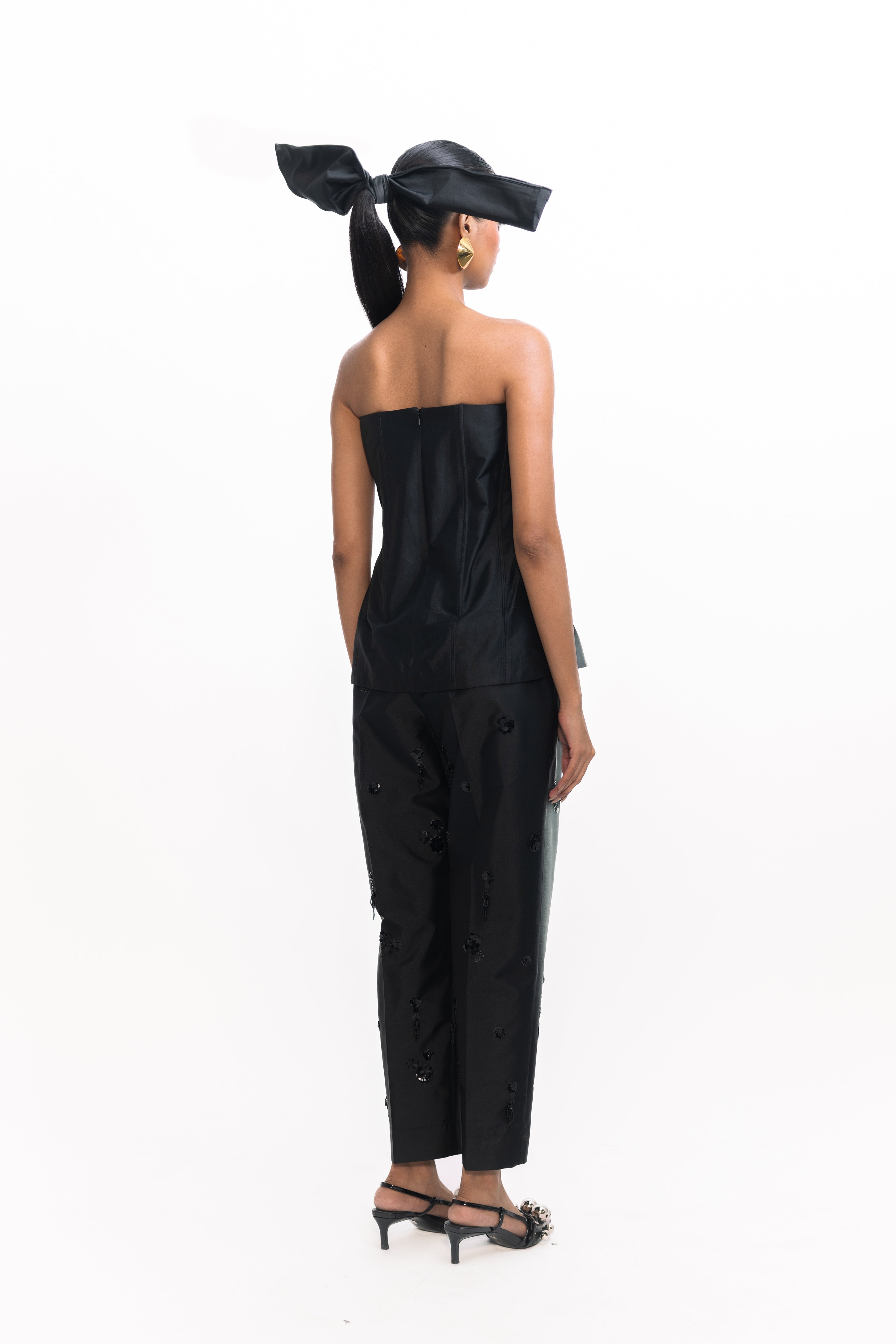 Material : Silk Taffeta Color : Black with beaded embroidery