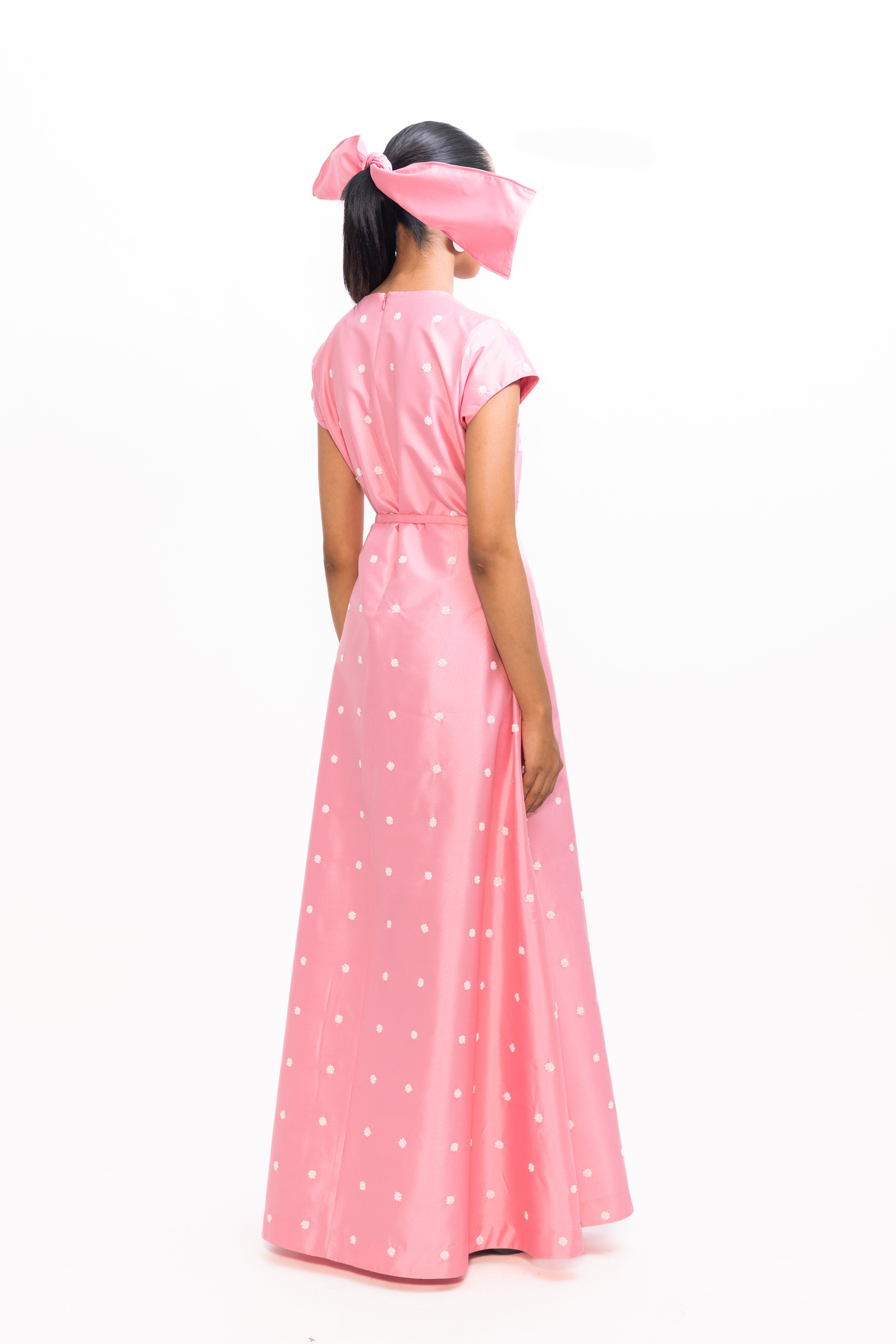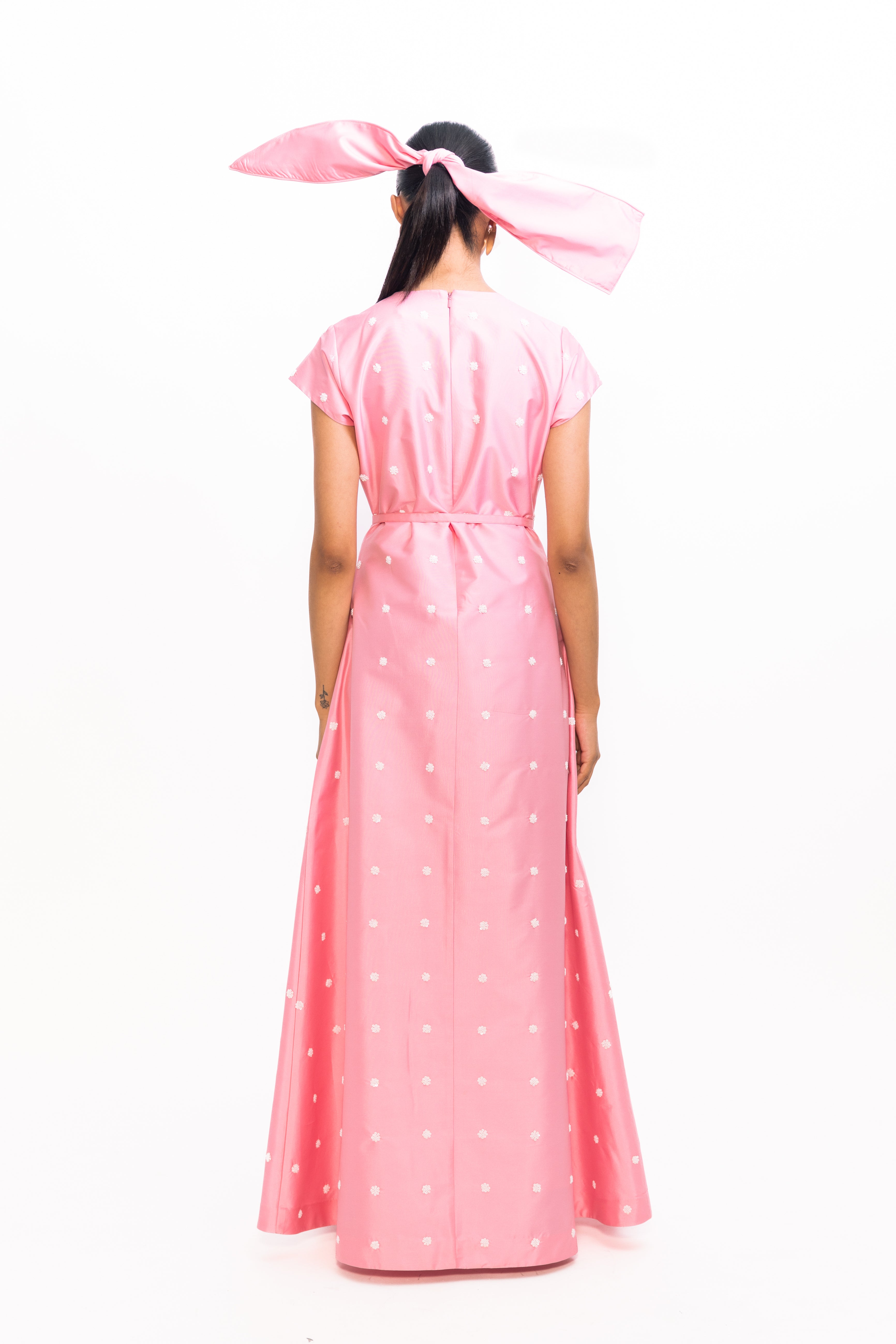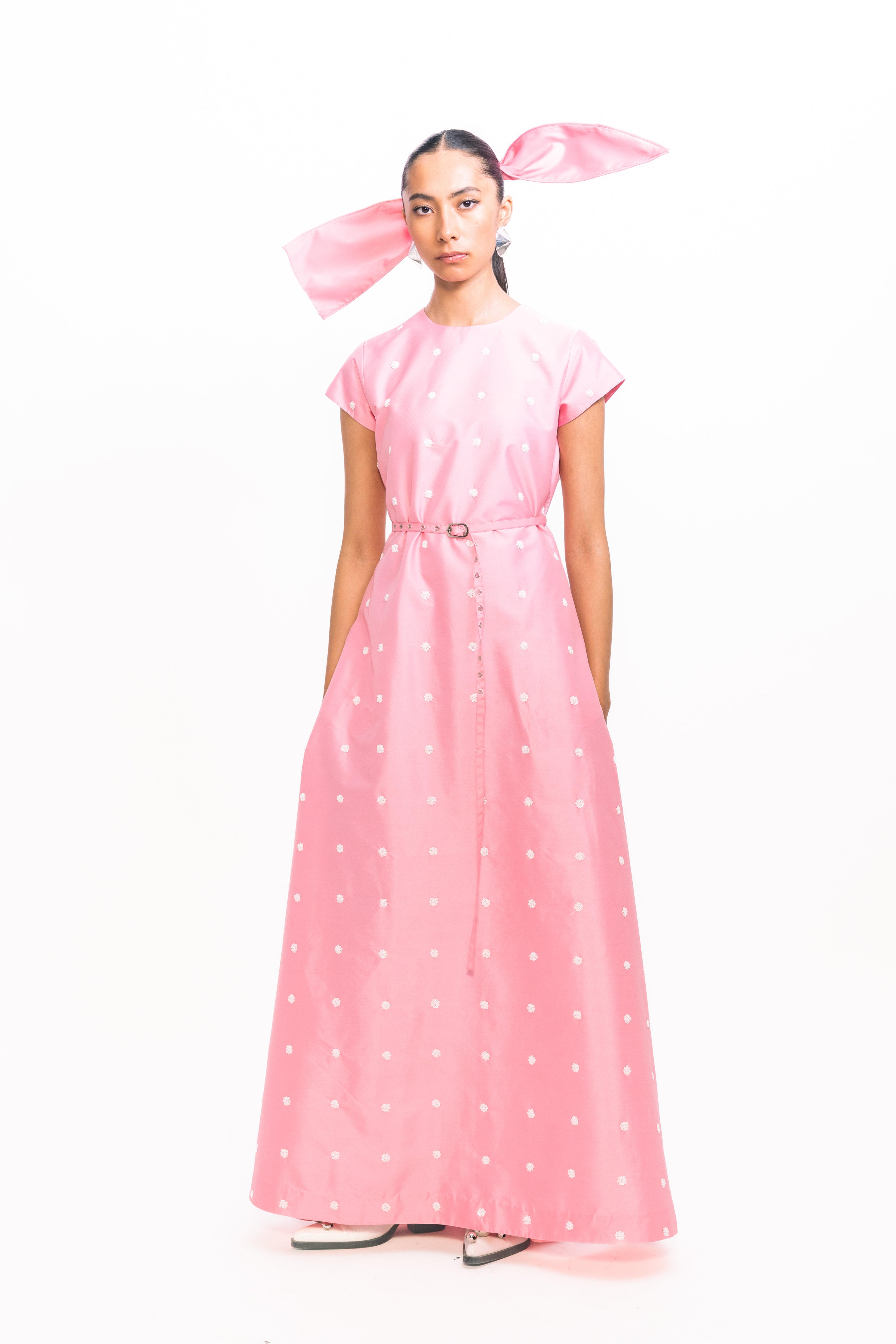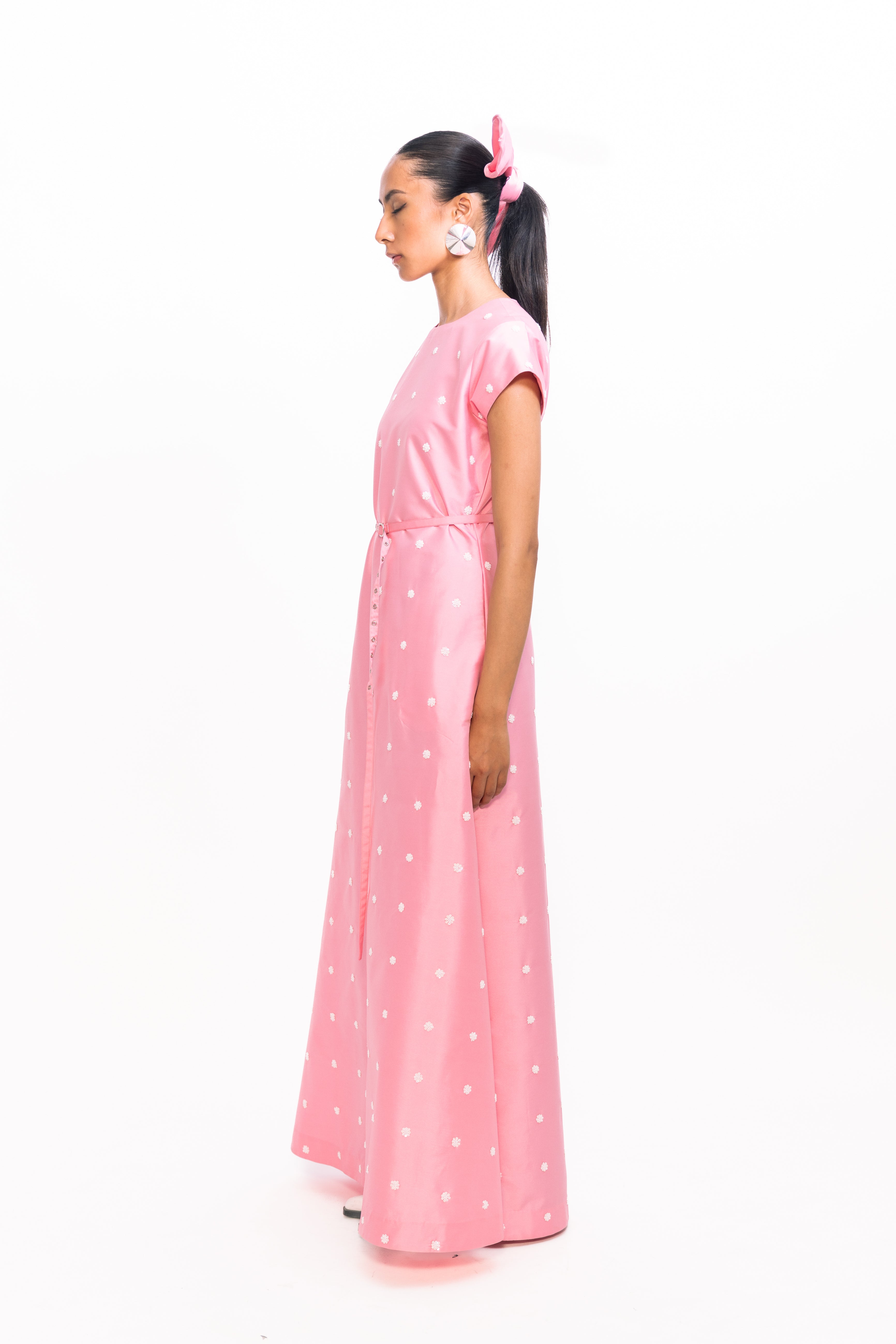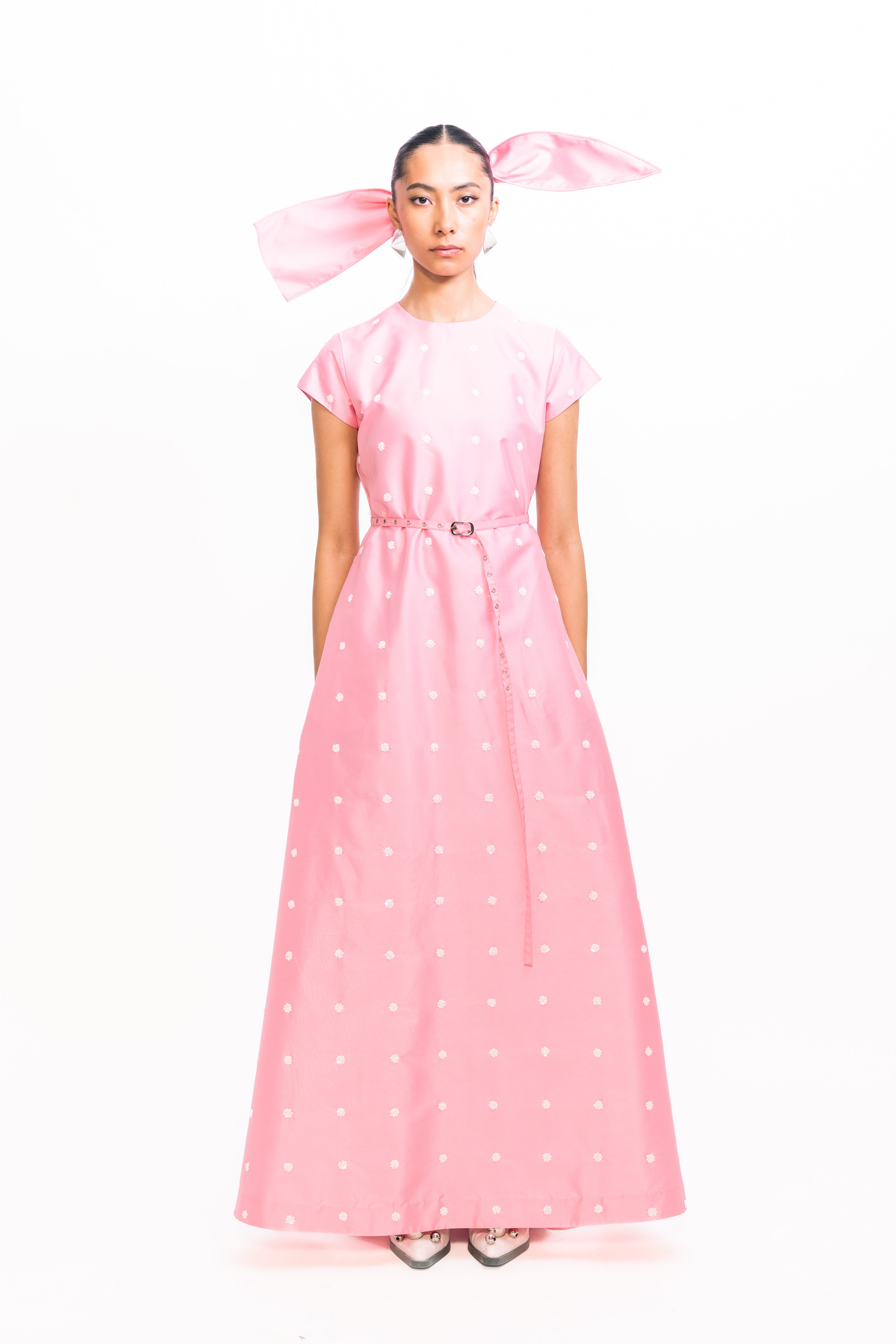 Shimmering with all-over flower-dot sequins, this belted fit-and-flare dress offers playful sparkle with timeless elegance. A matching belt defines the waist, complementing the softly structured bodice and gentle flare of the skirt. Finished with delicate cap sleeves, it’s perfect for parties, evening events, or festive celebrations.