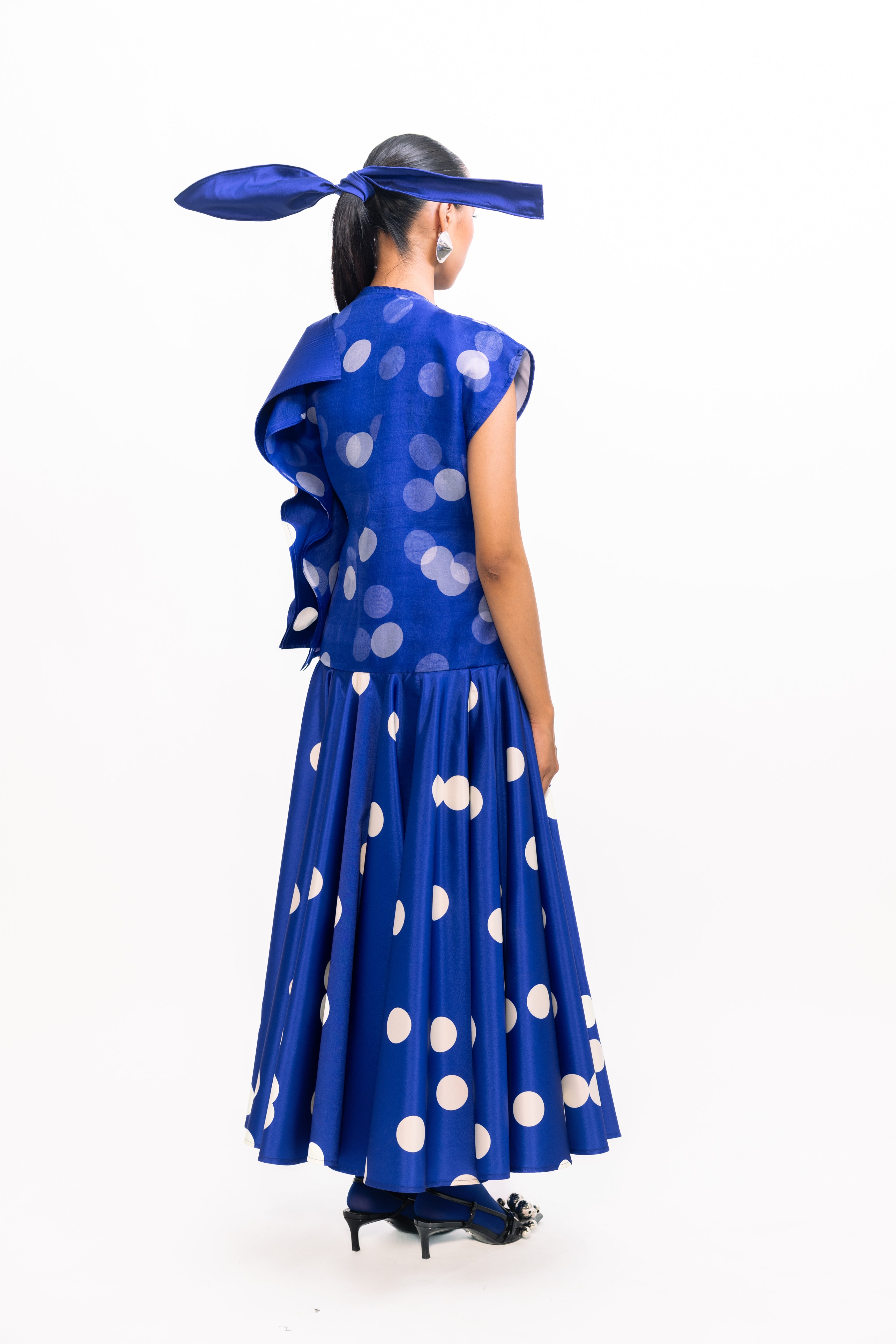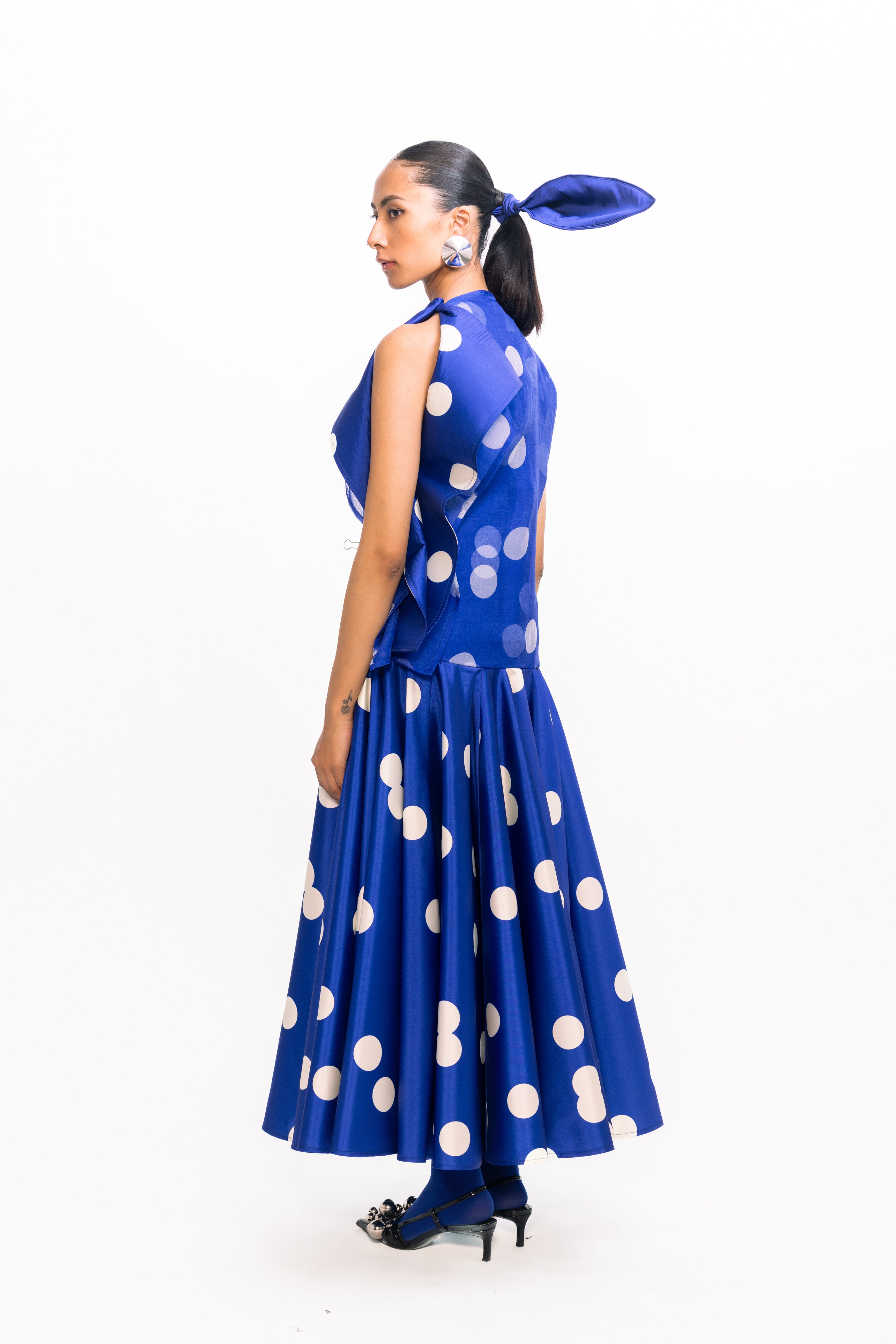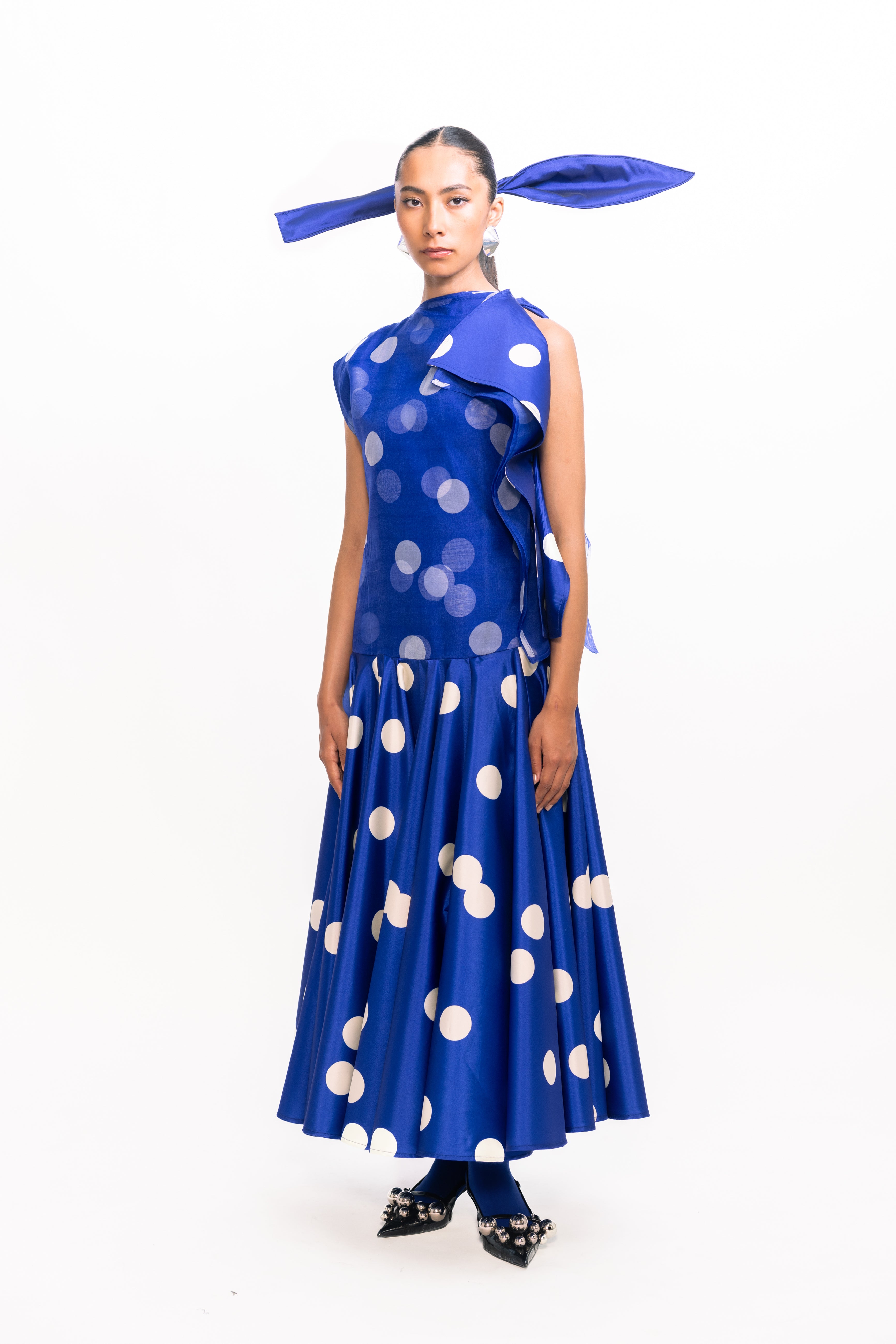 This draped, layered organza and taffeta dress exudes ethereal elegance. Sheer, weightless layers create soft movement and dimension, while the fluid drape adds a romantic, modern touch. Perfect for evening occasions or as a statement piece over sleek separates