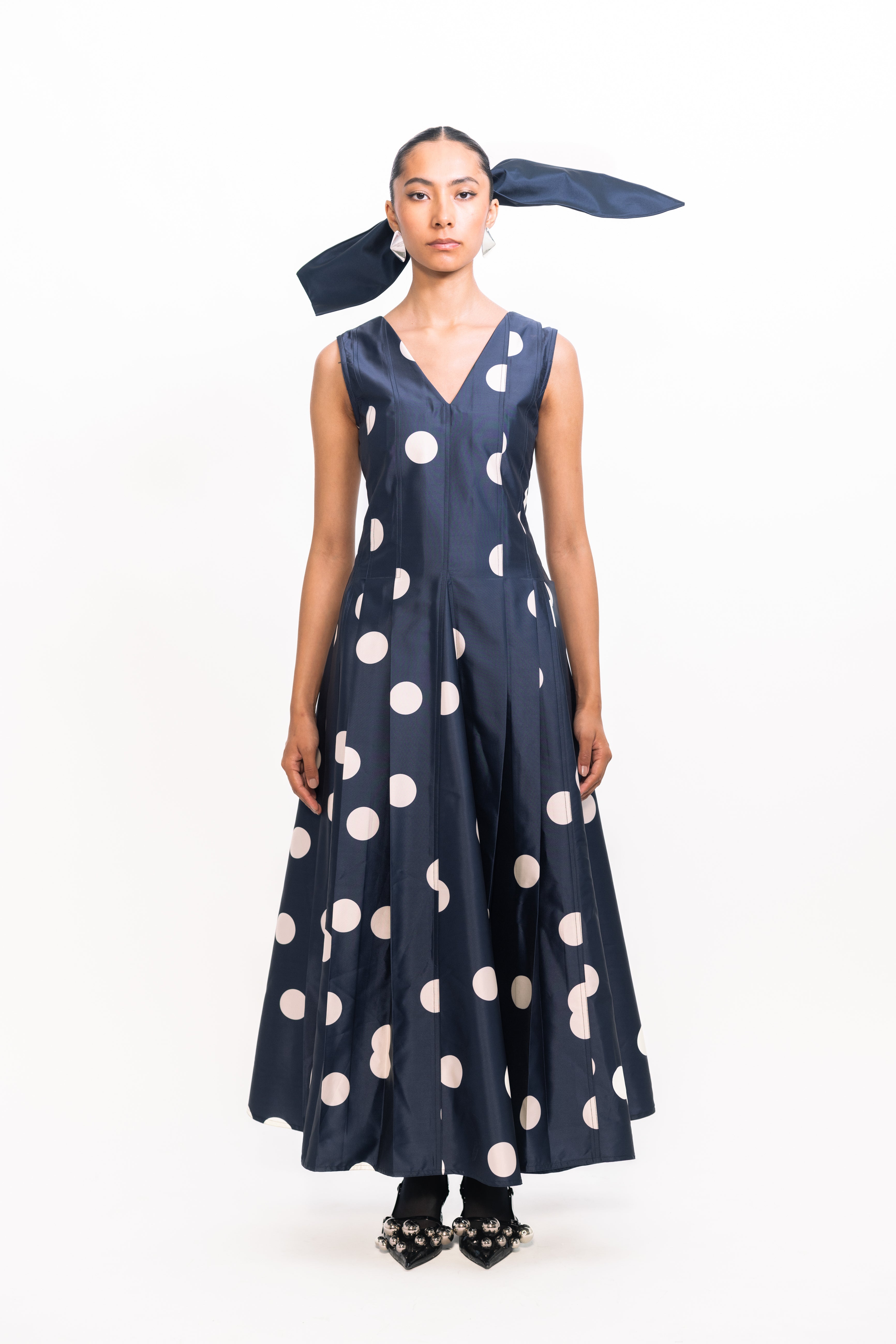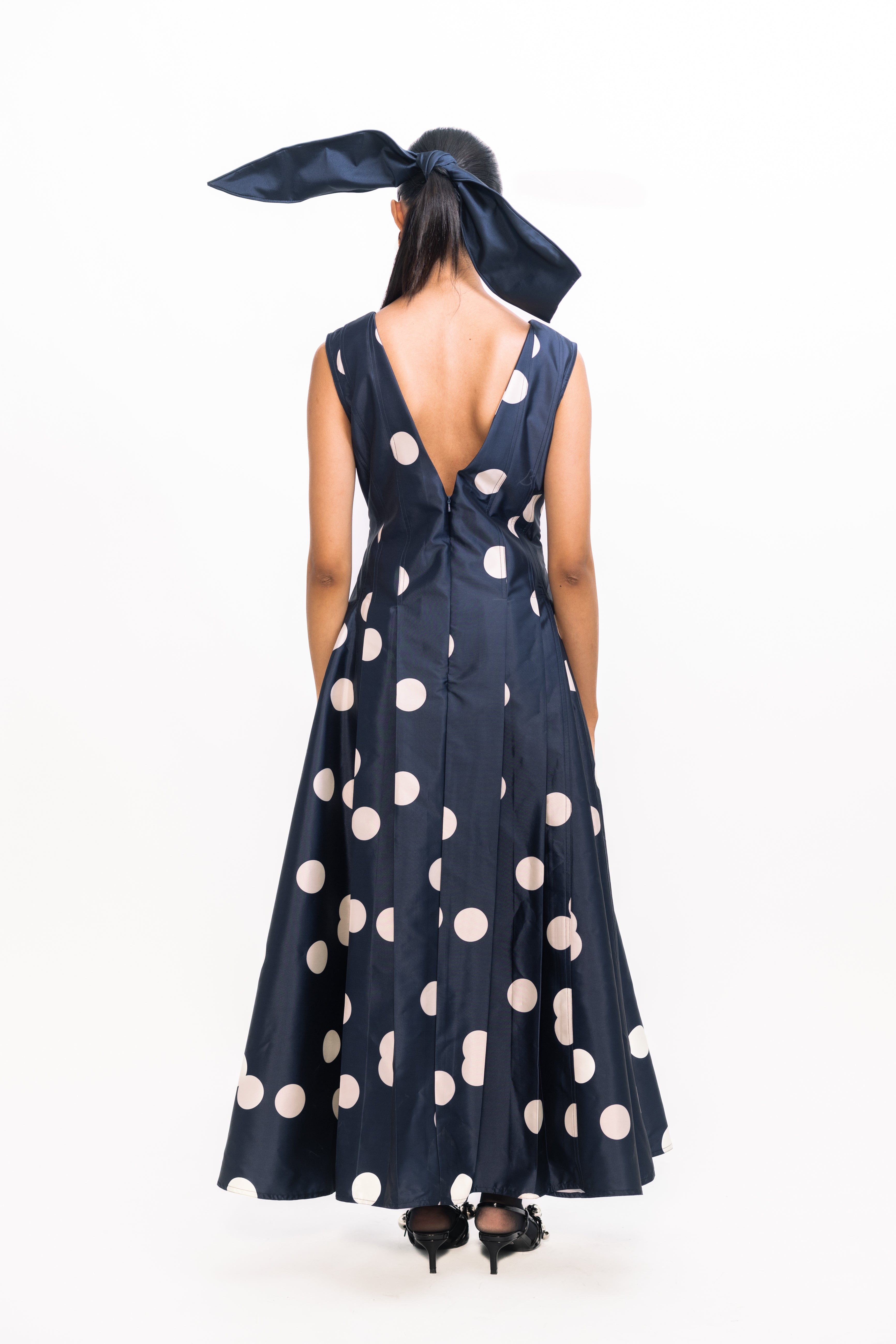 This elegant gown showcases a structured, corset-style bodice that fits flawlessly to the upper body, accentuating the natural shape. From the waist down, crisp box pleats create dramatic volume and graceful movement, offering a timeless silhouette ideal for formal occasions and special evenings.