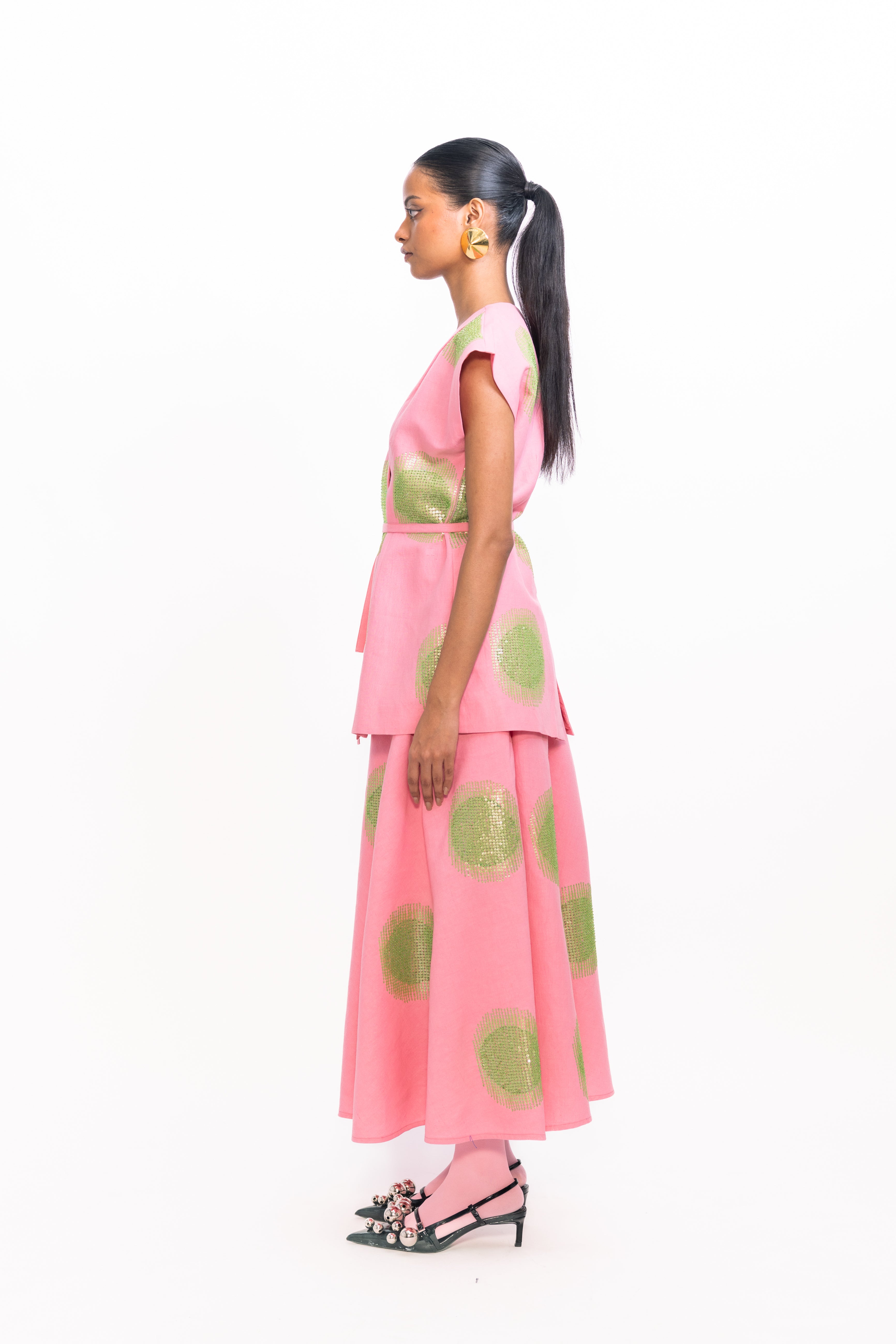 Color : Pink with Green Sequins