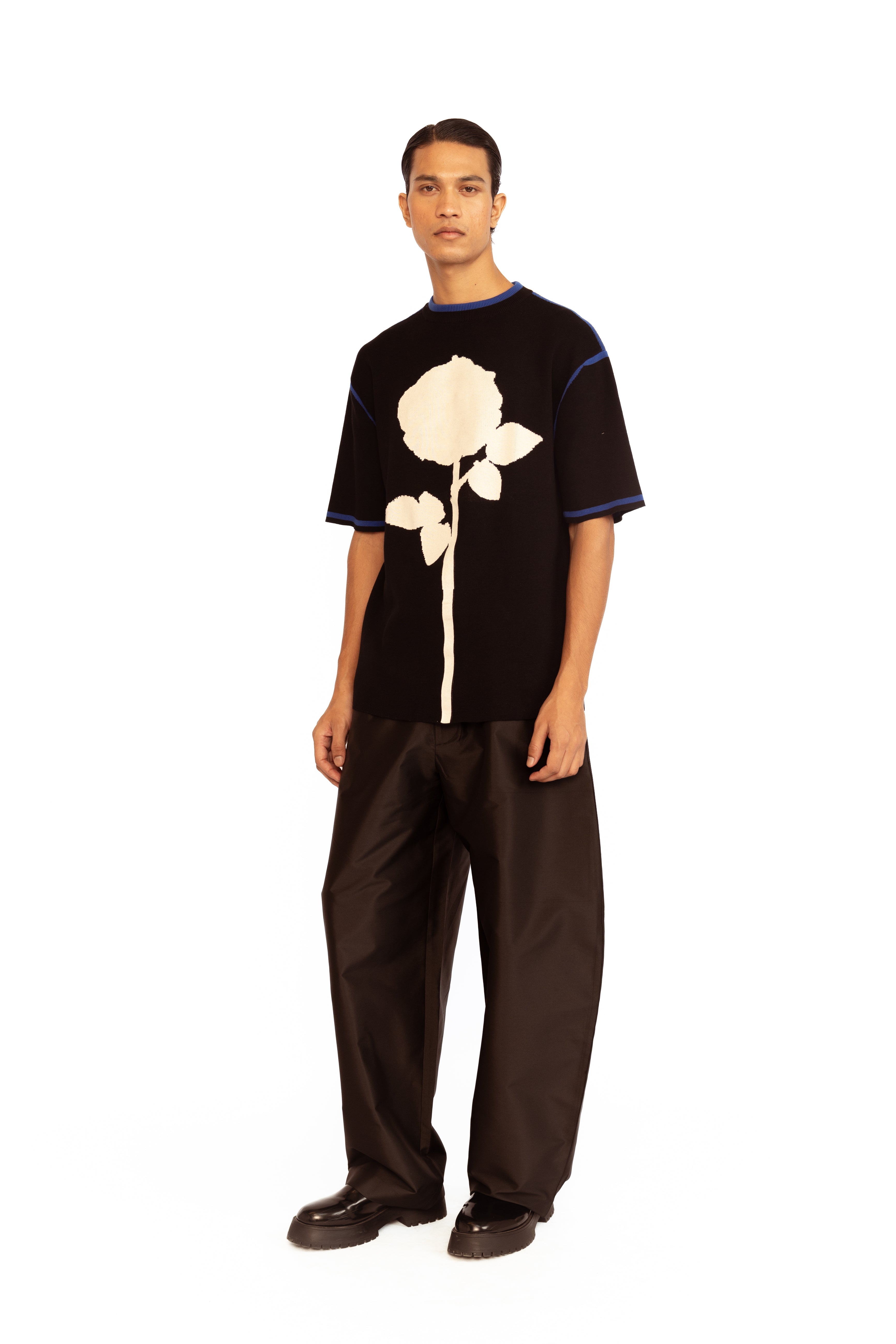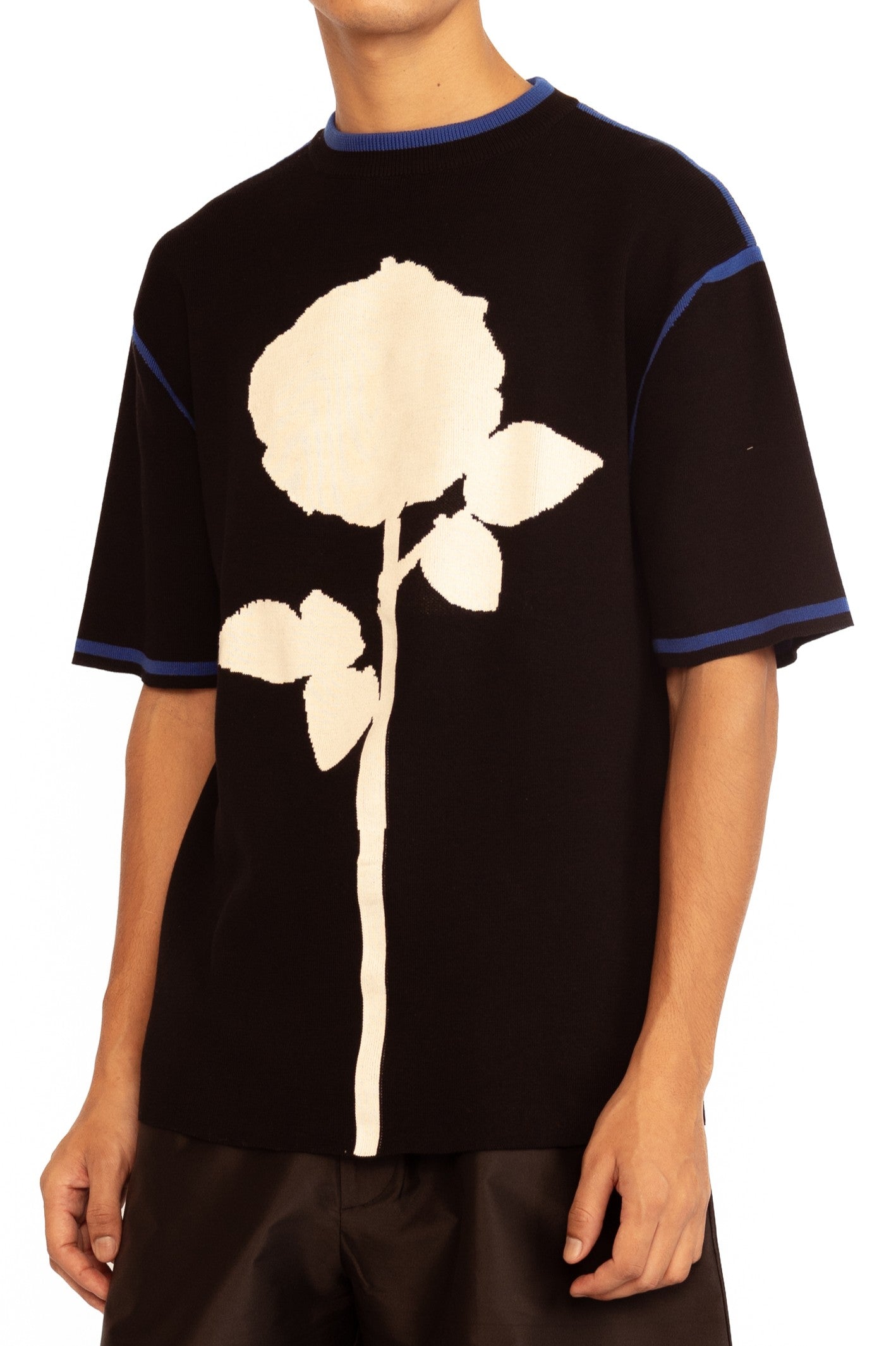 A casual staple with artistic flair. This knit tee features a striking floral artwork that adds a touch of creativity and personality to a classic silhouette. Soft, breathable fabric ensures all-day comfort, making it perfect for effortless, everyday style.