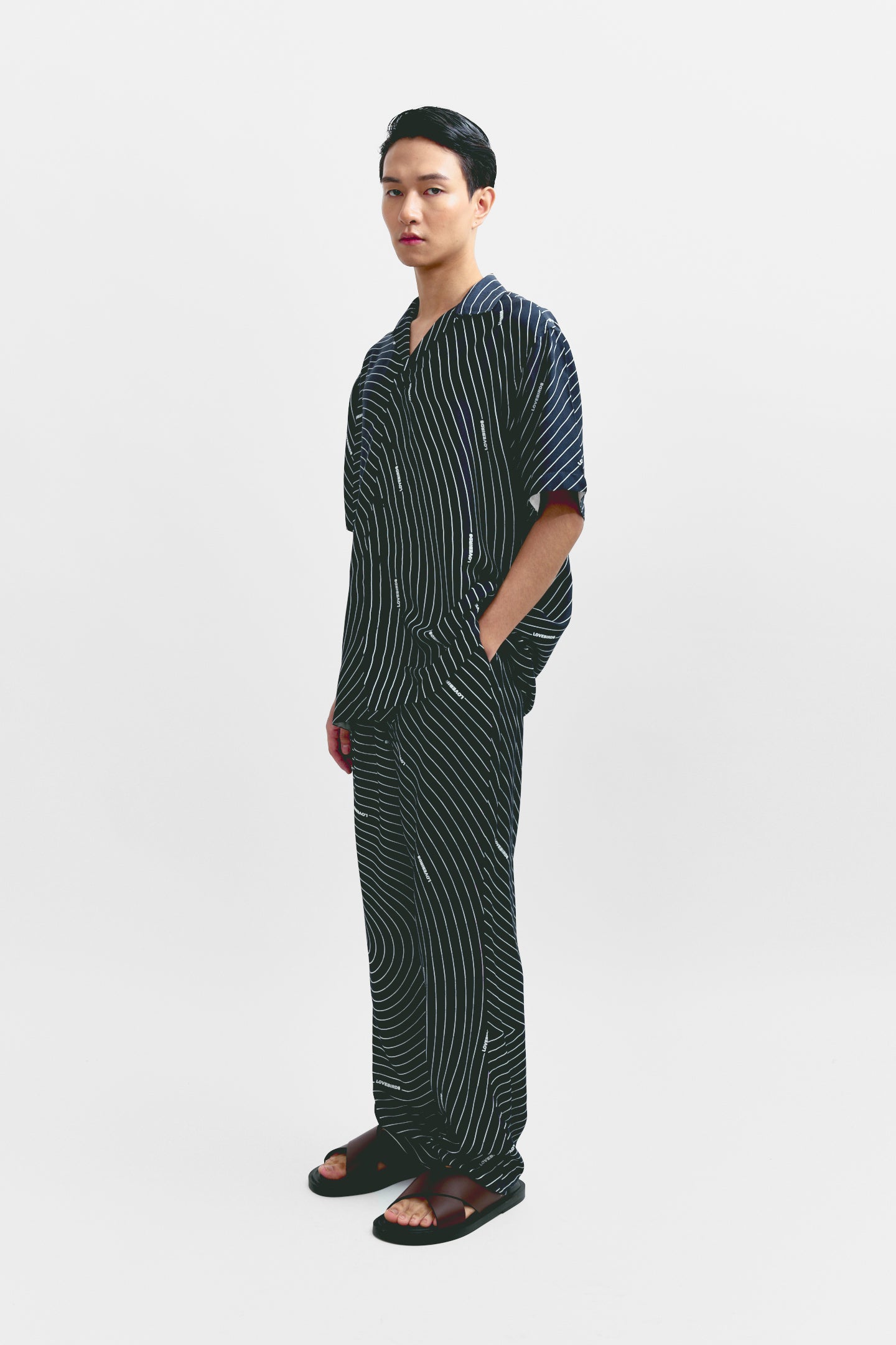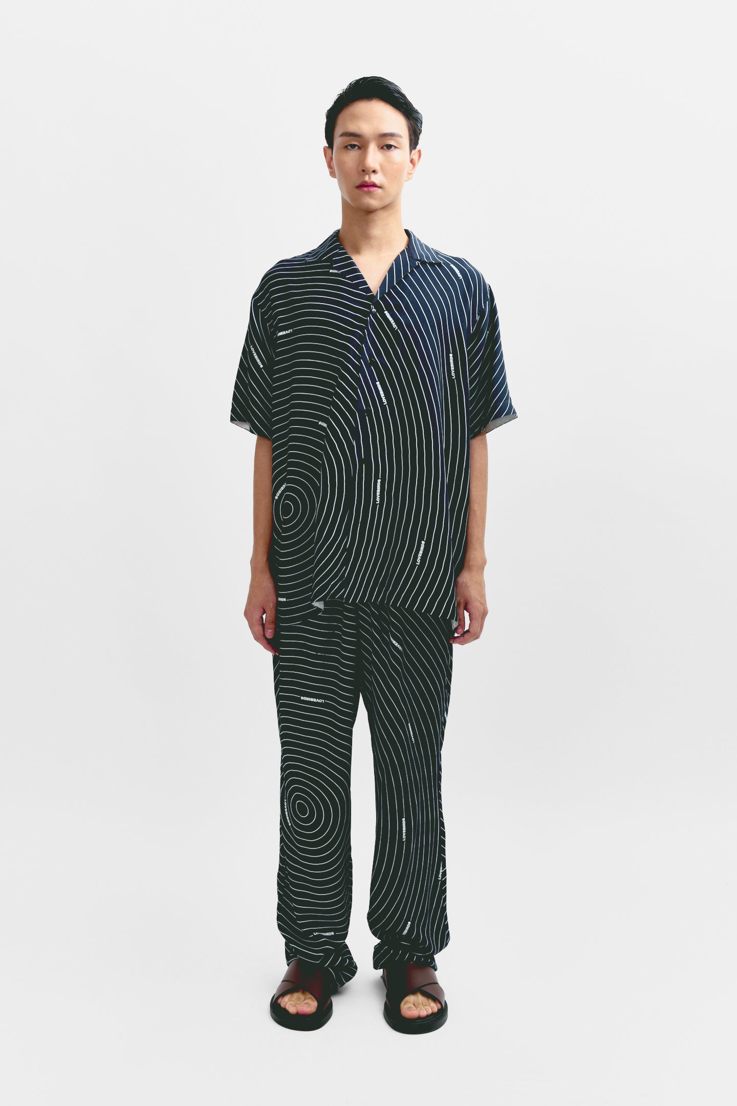These full-length tapered trousers feature a striking circular print that brings a modern edge to a clean silhouette. Designed for a comfortable fit with a tailored finish, they blend bold style with everyday ease. Pair them with a solid shirt or matching print for a standout look.