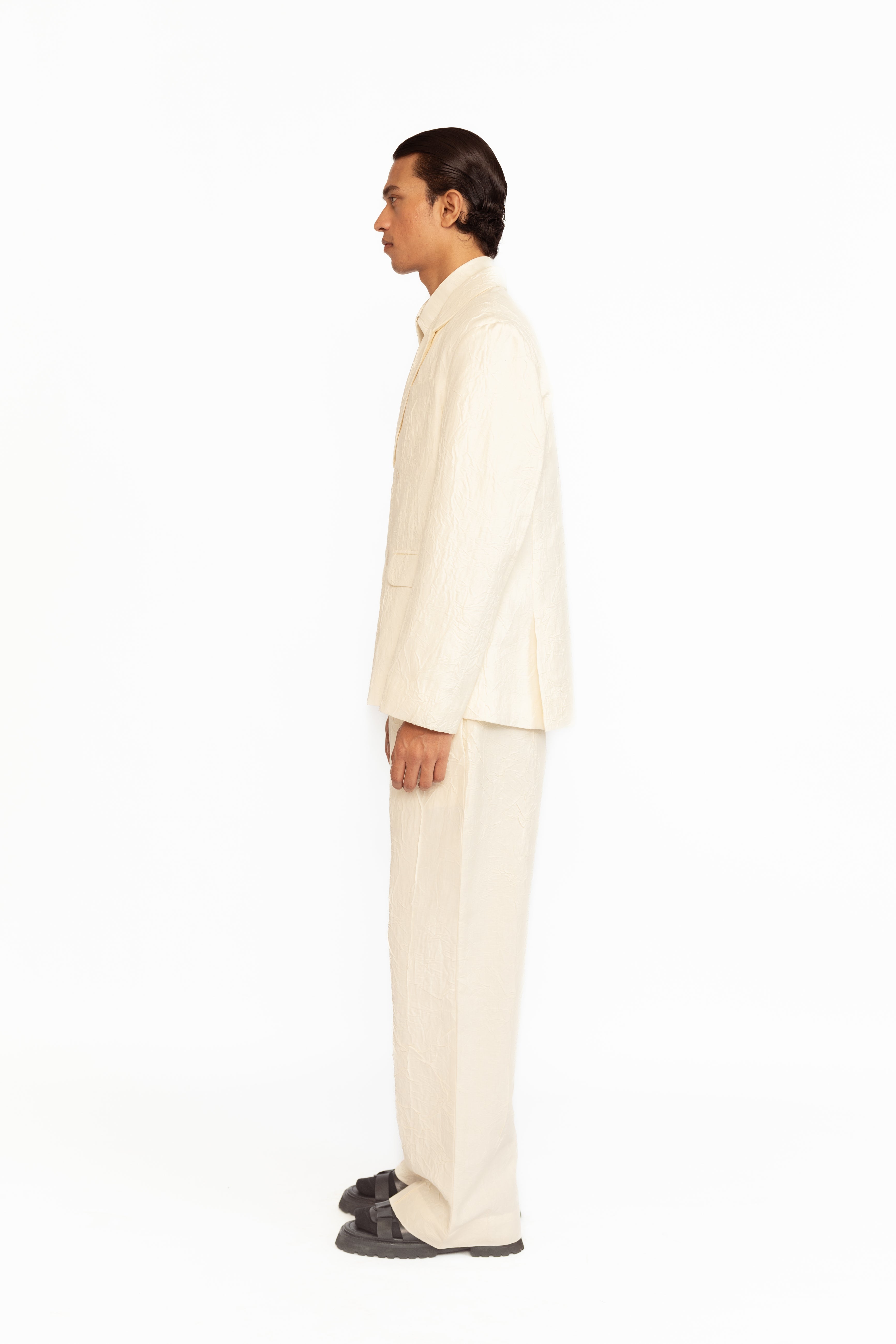Effortlessly refined and versatile. These straight trousers are crafted from wrinkled linen, offering a relaxed yet tailored look. Designed with practical side pockets and a single back pocket, they combine everyday functionality with a contemporary, textured finish — perfect for both casual and elevated styling.