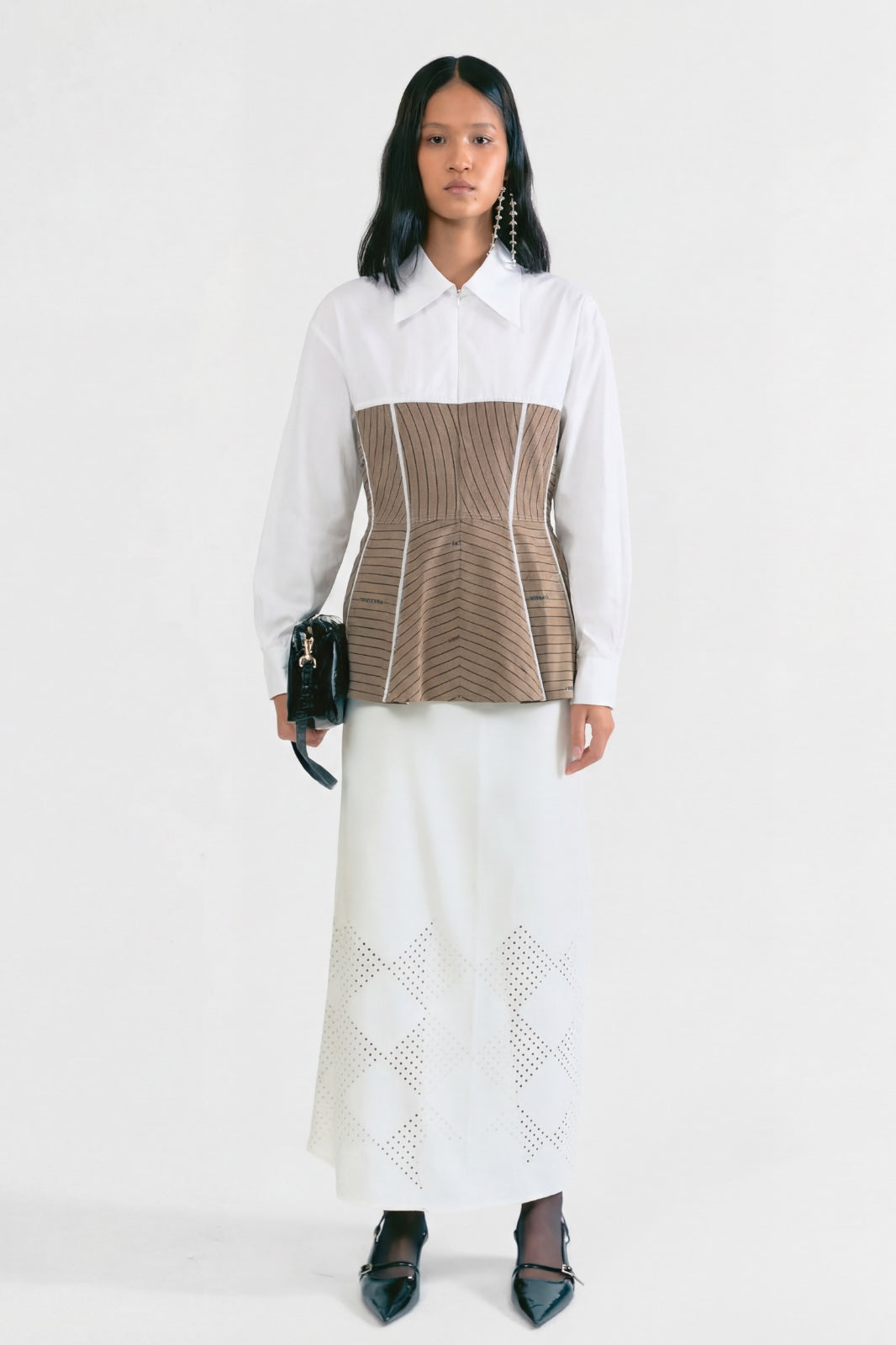 A fresh take on a classic shirt silhouette, this piece features a flattering peplum waist and modern fit with ripple print design. The structured upper body contrasts with the soft flare of the peplum, creating a balanced, feminine look. Ideal for pairing with trousers or skirts for a smart, polished outfit.
