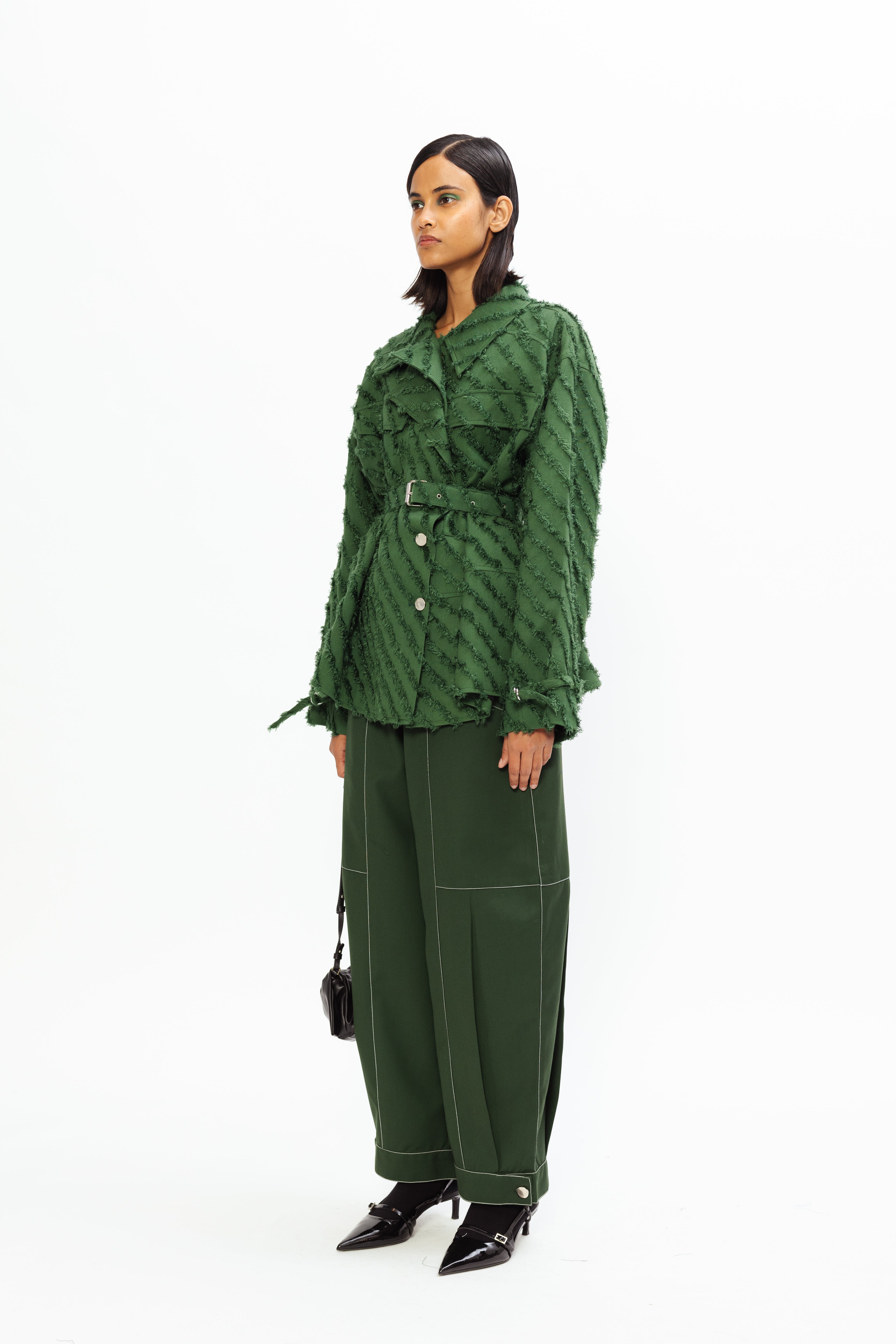 A classic overshirt crafted from extra yarn wool in a rich hunter green hue. The structured yet relaxed design offers warmth and ease, while the premium wool texture adds depth and sophistication, making it a versatile layer for cooler days.