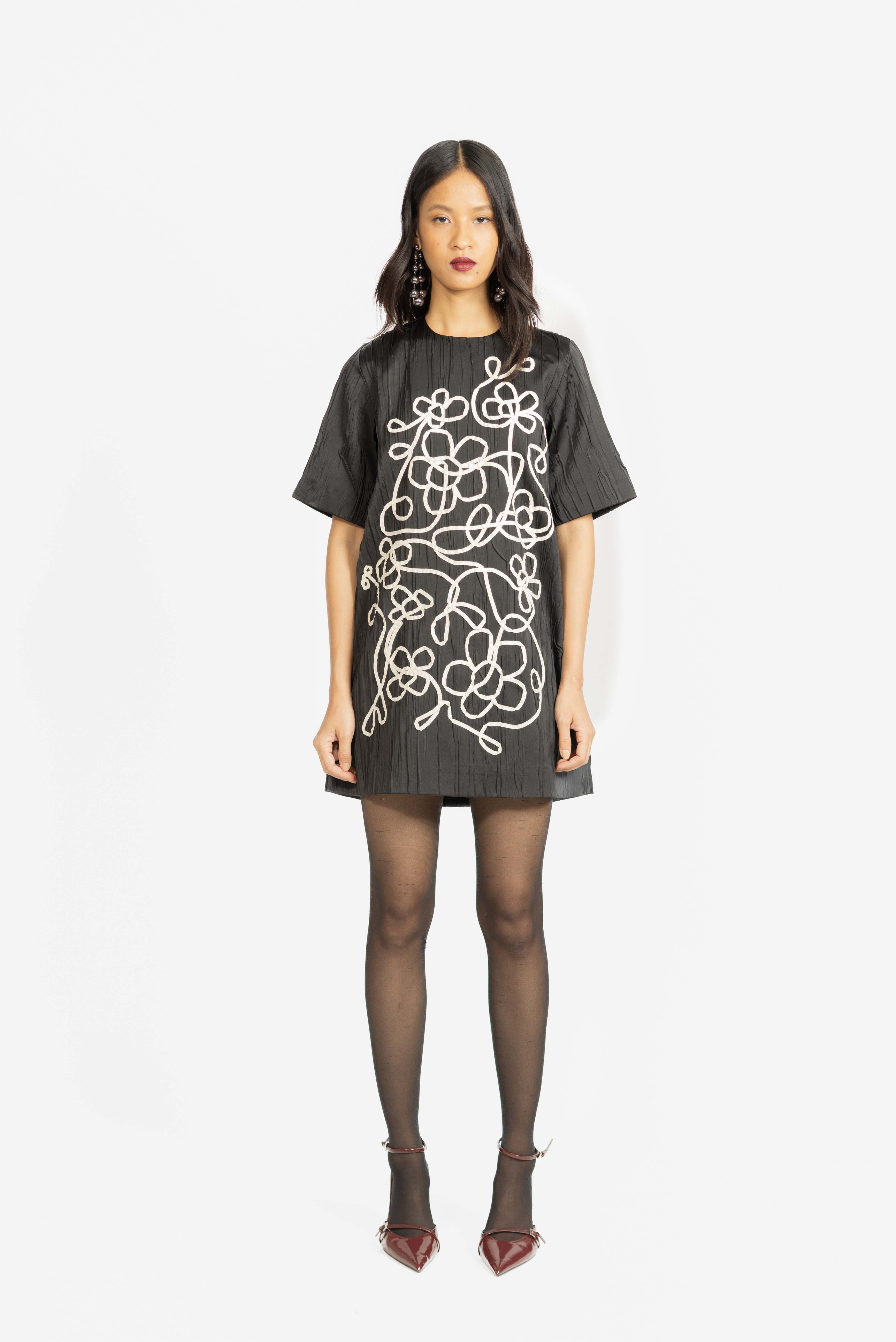 Kara Embroidered Dress - Black