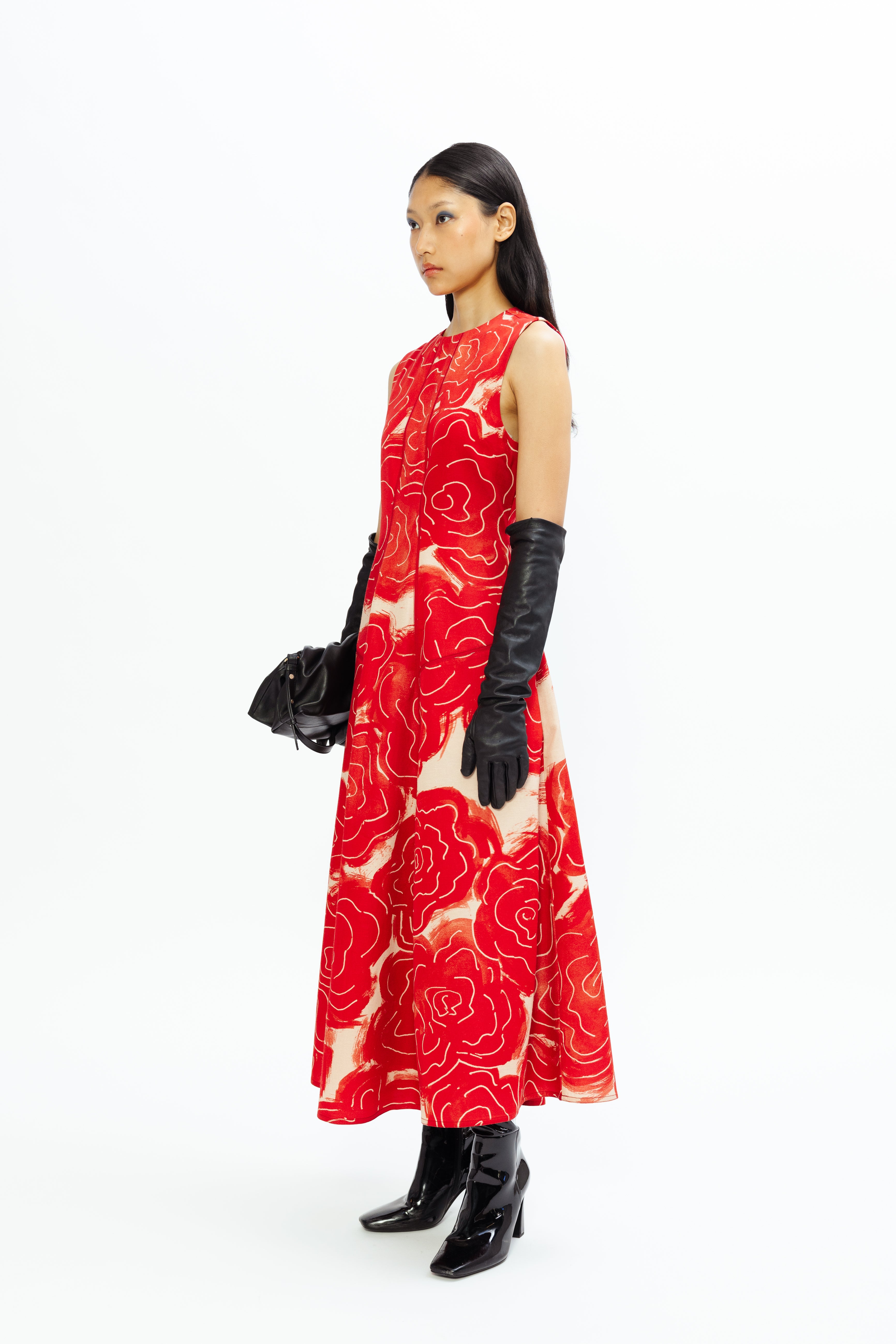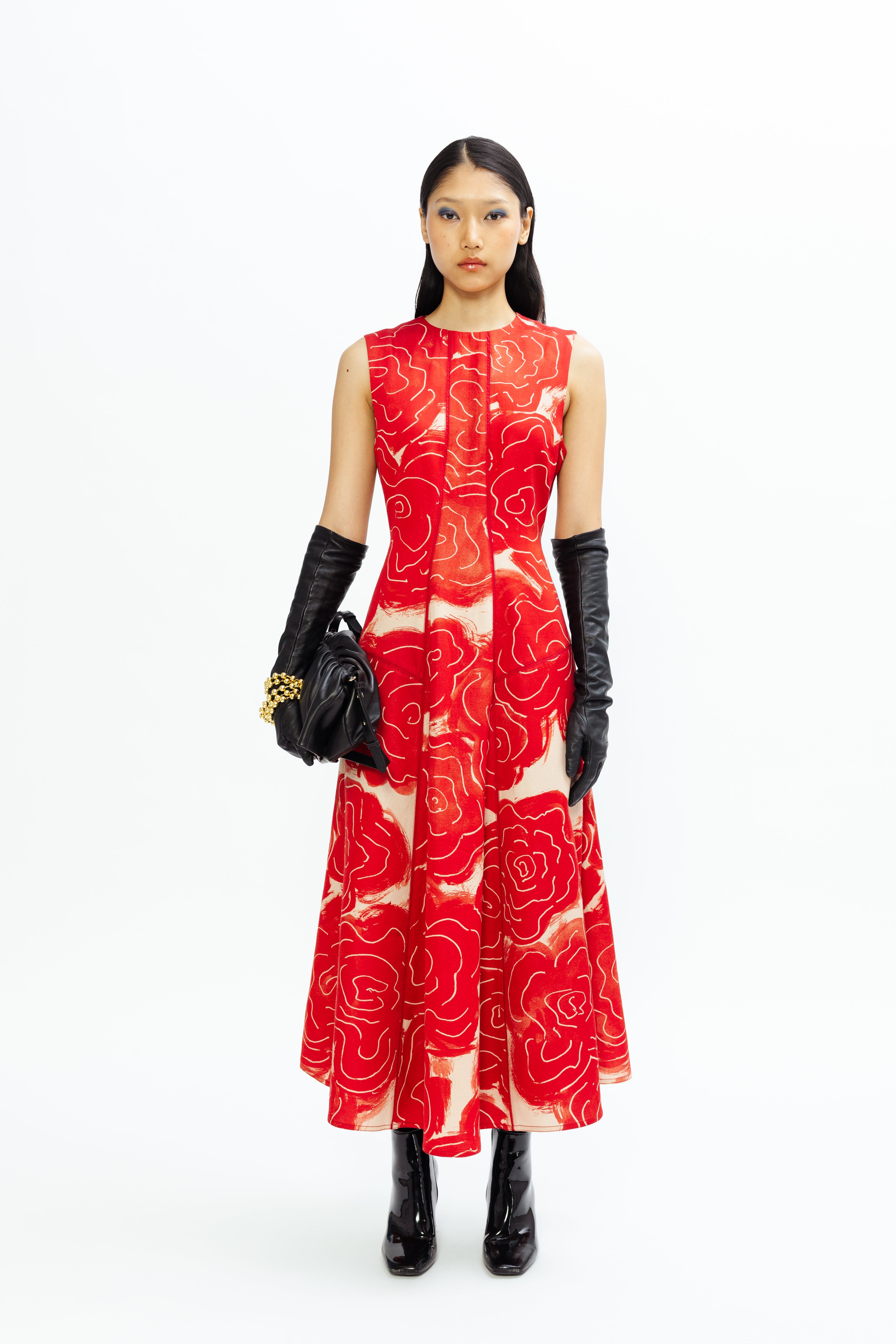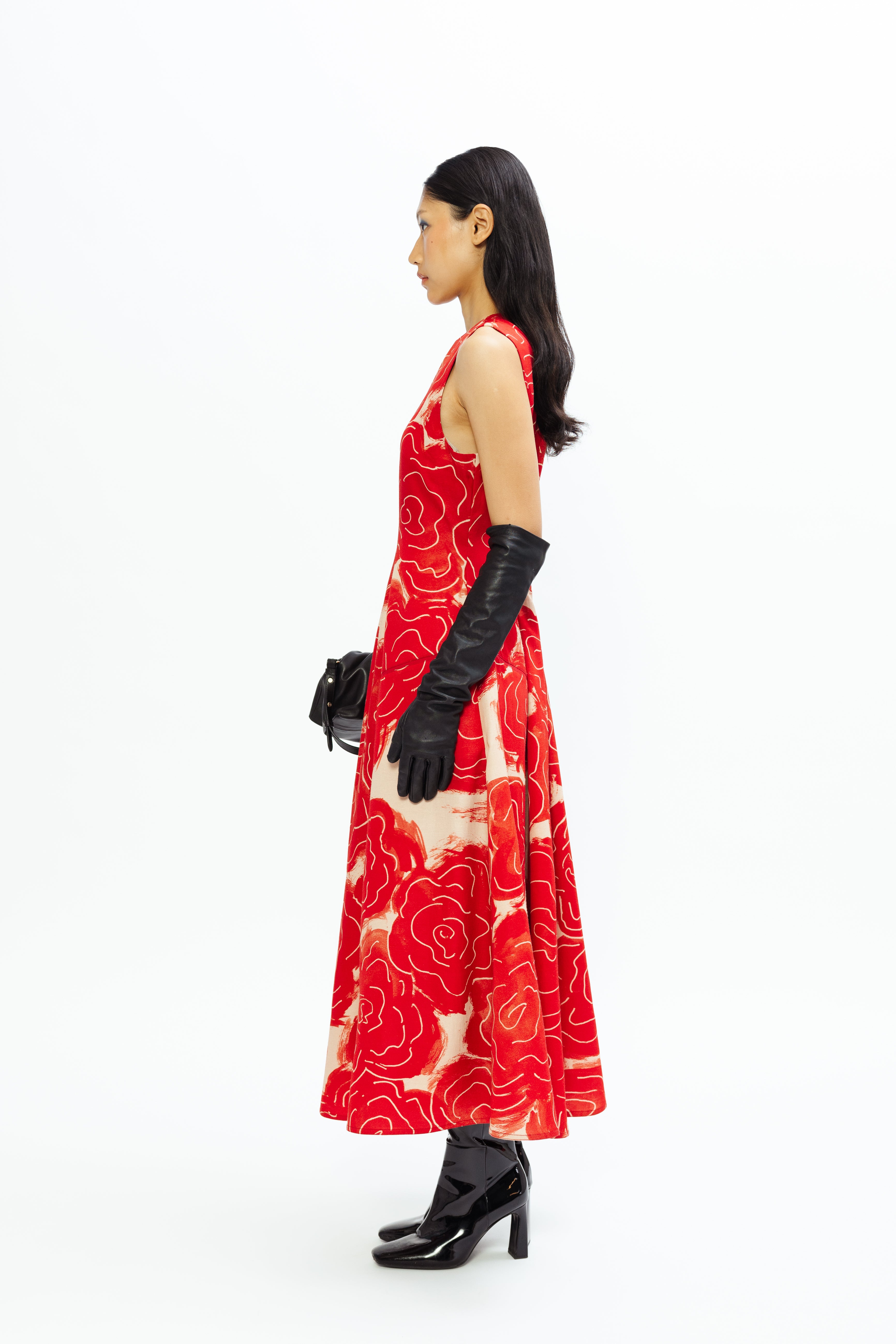 This A-line dress features a fitted bodice that accentuates the waist before flowing into a graceful flare, creating a refined yet feminine silhouette. Perfect for black-tie events, weddings, or sophisticated soirées, it blends timeless elegance with a subtle touch of print for a polished, modern appeal.