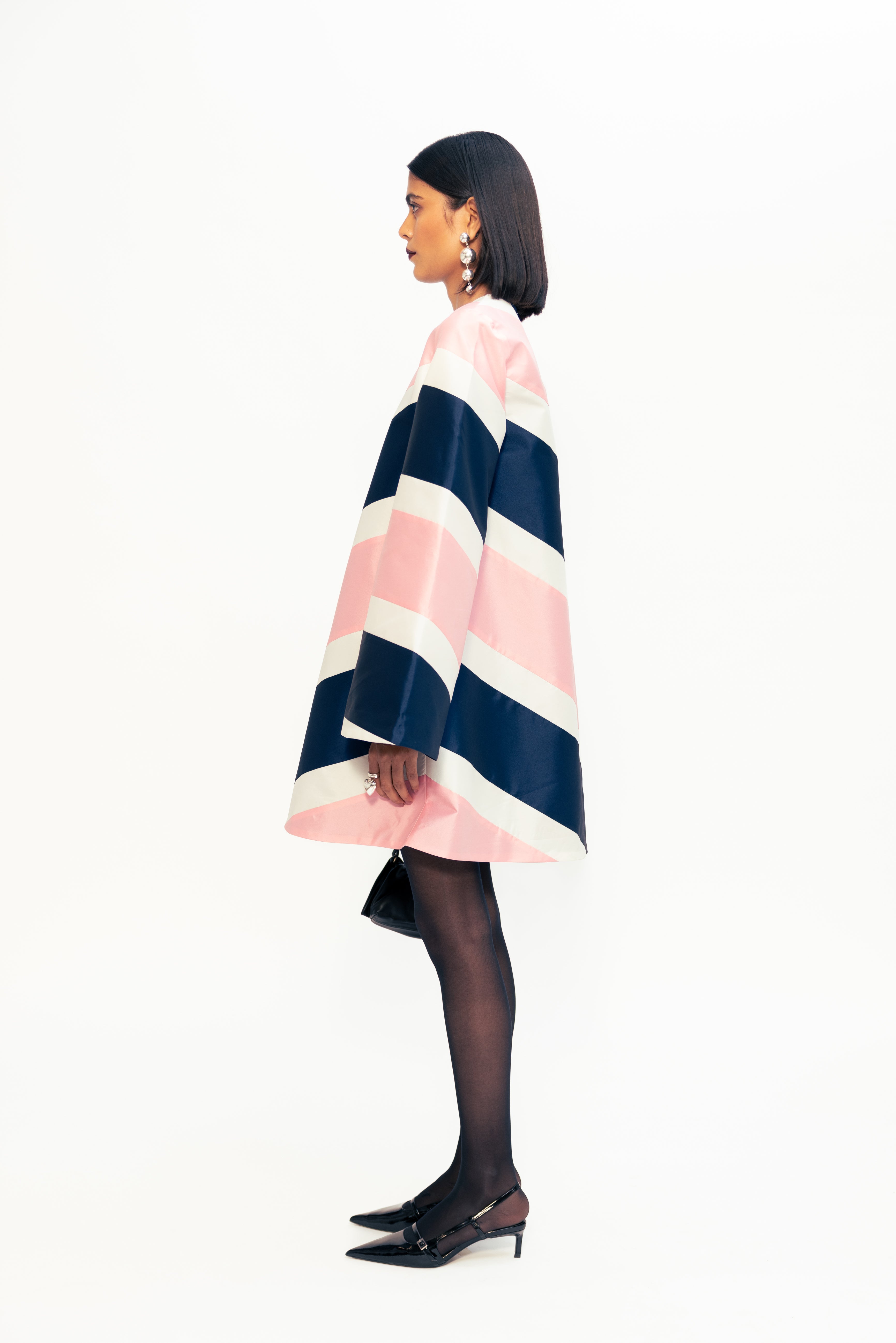 Make a statement with this chic flared sleeve color-blocked mini dress. Designed with a flattering silhouette and lined with soft viscose for all-day comfort. Perfect for day-to-night styling.