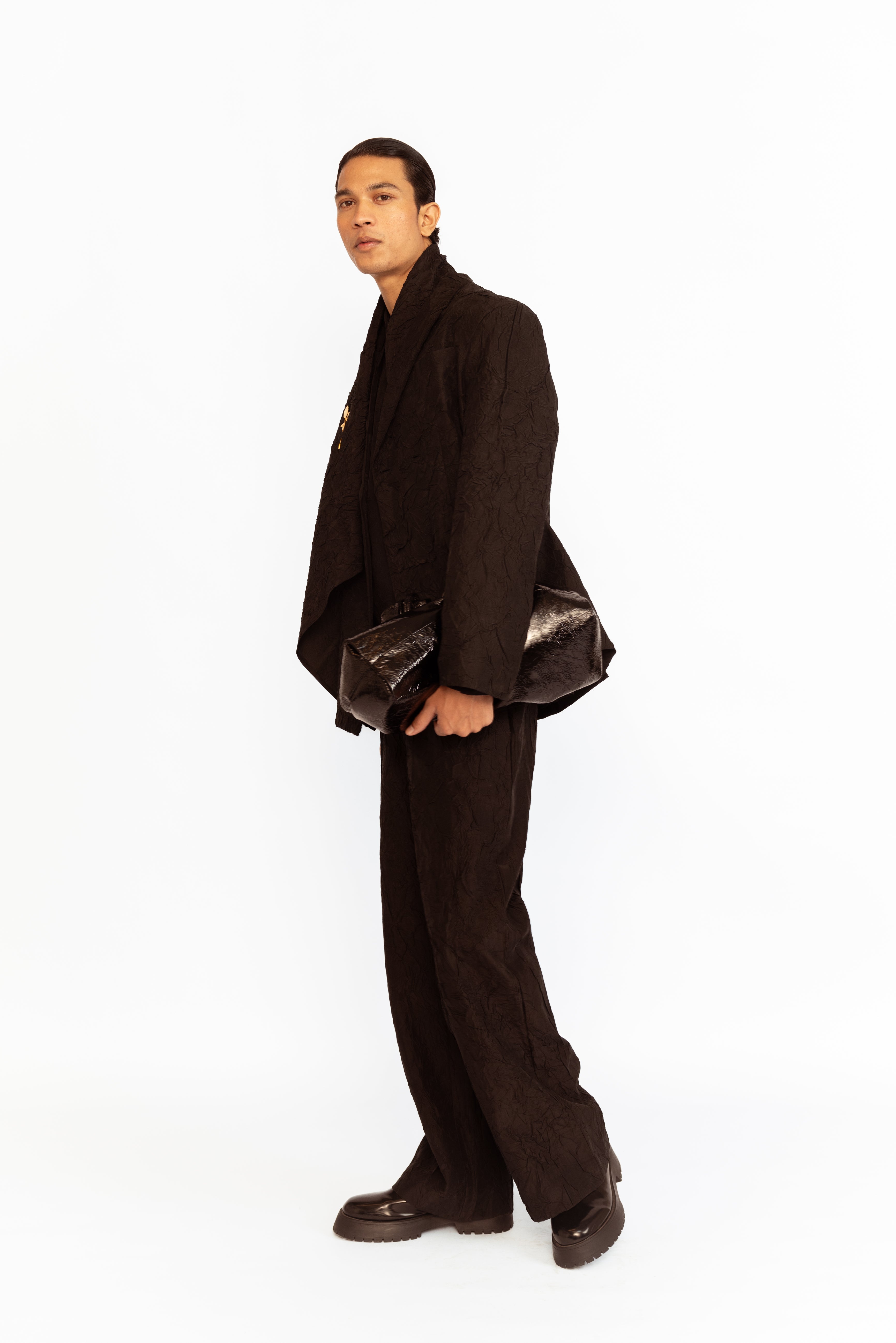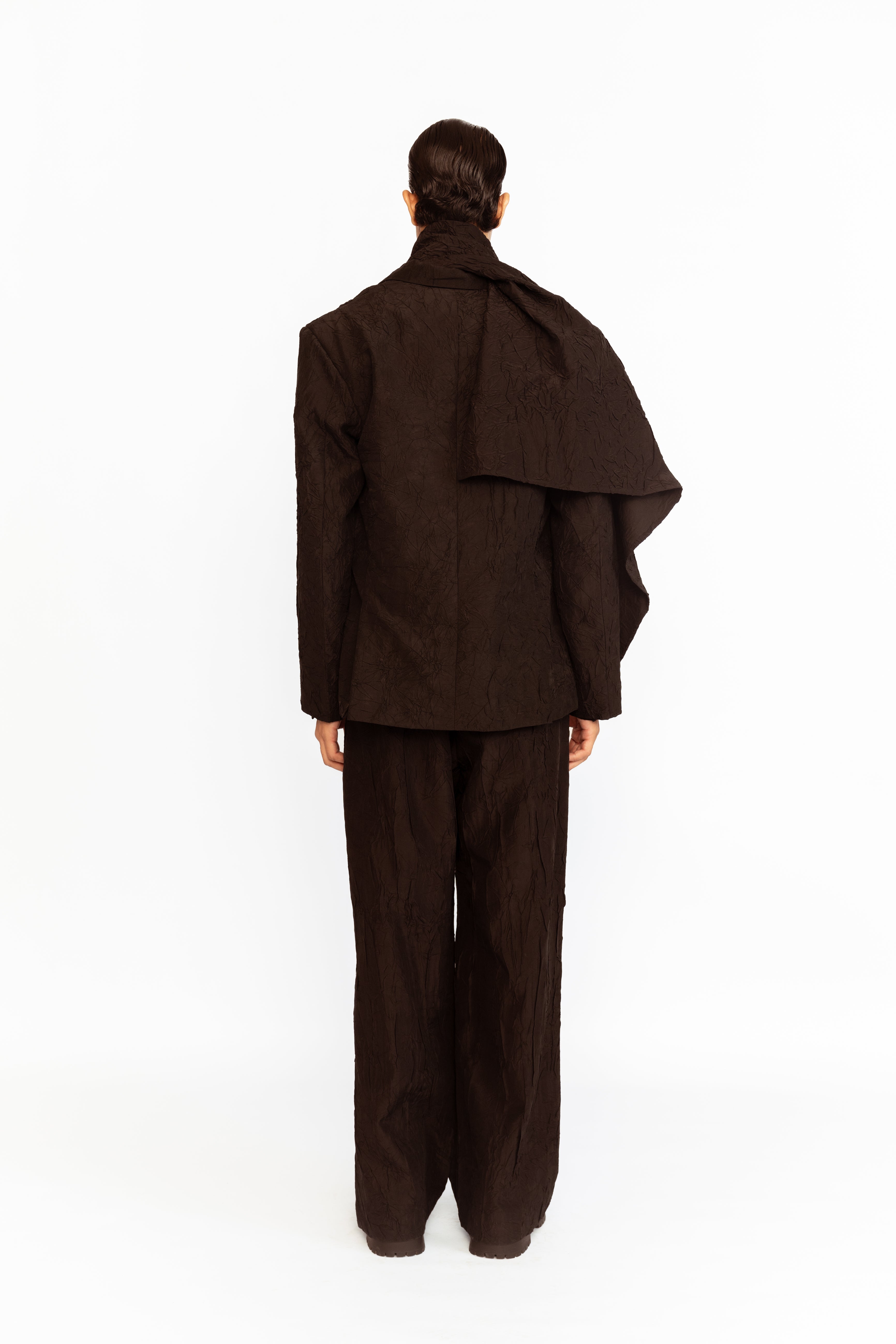 Crafted from luxurious wrinkled silk, these straight-fit trousers feature a clean silhouette with practical side pockets and a single back pocket. Effortlessly balancing comfort and sophistication, they’re a versatile essential for both refined and relaxed looks.