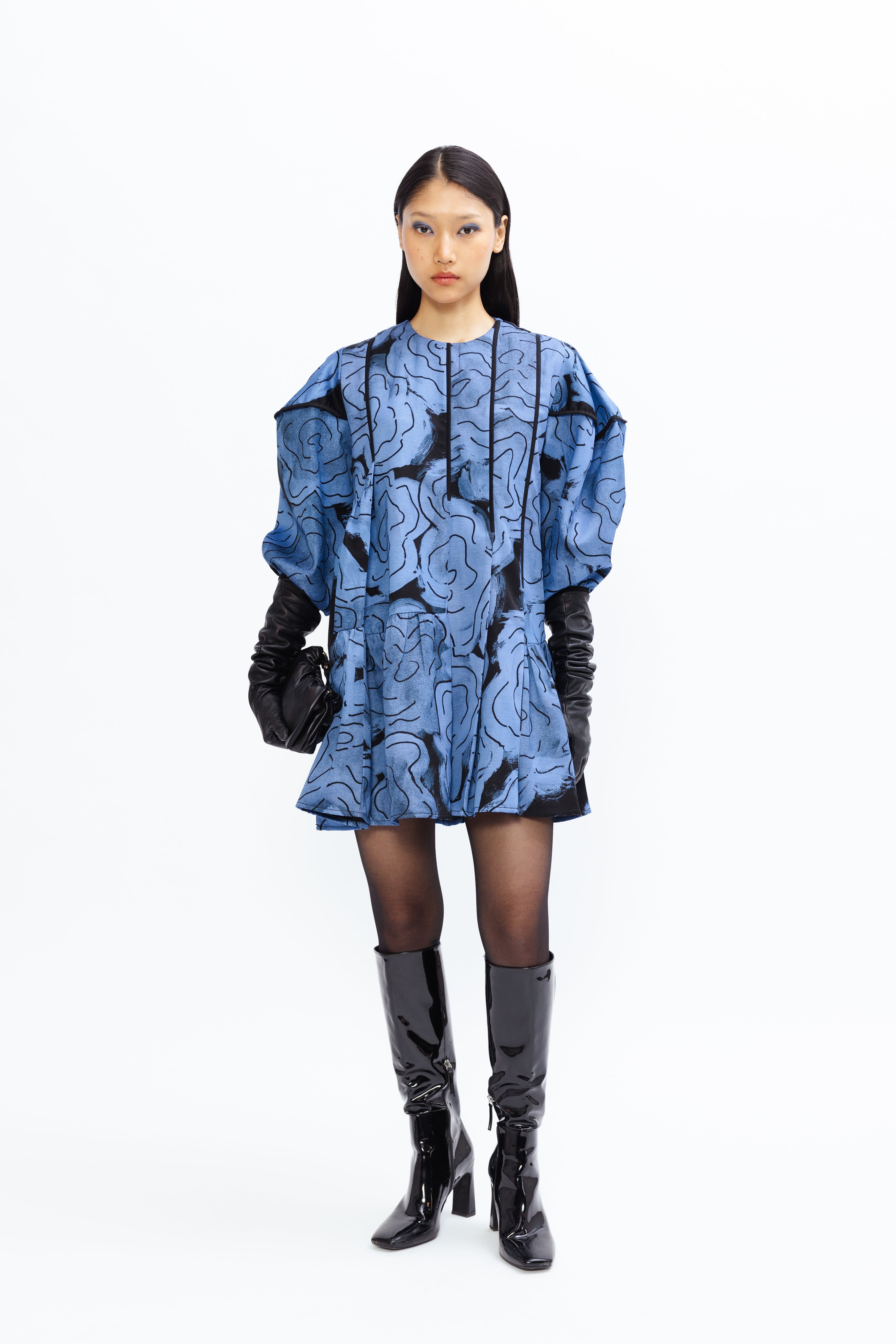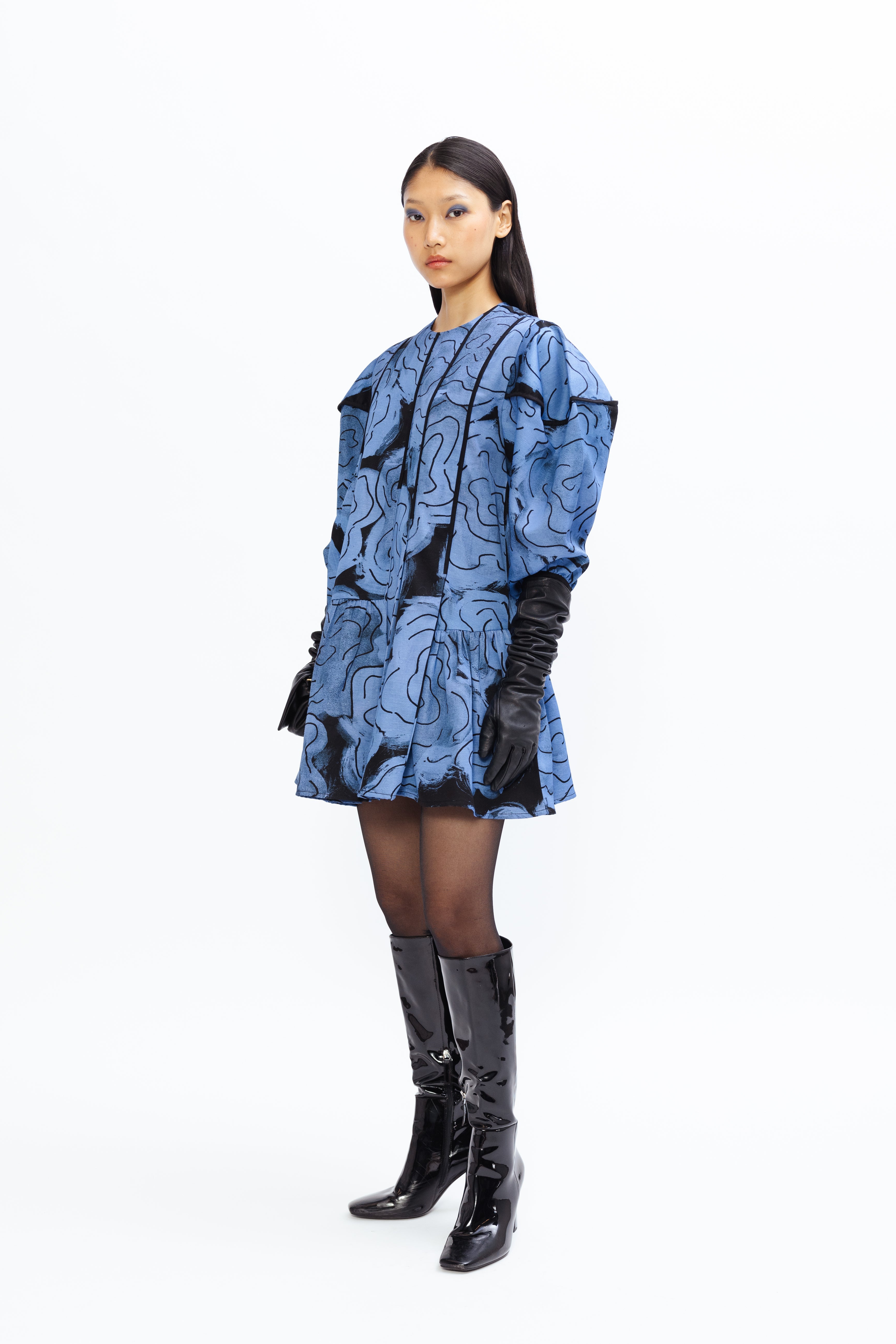 This paneled short dress features gathered detailing that enhances its tailored fit while maintaining a feminine charm. The puff sleeves add a touch of drama and volume, balancing structure with softness. Crafted from breathable linen, it’s a versatile and stylish choice suitable for both casual and refined occasions.