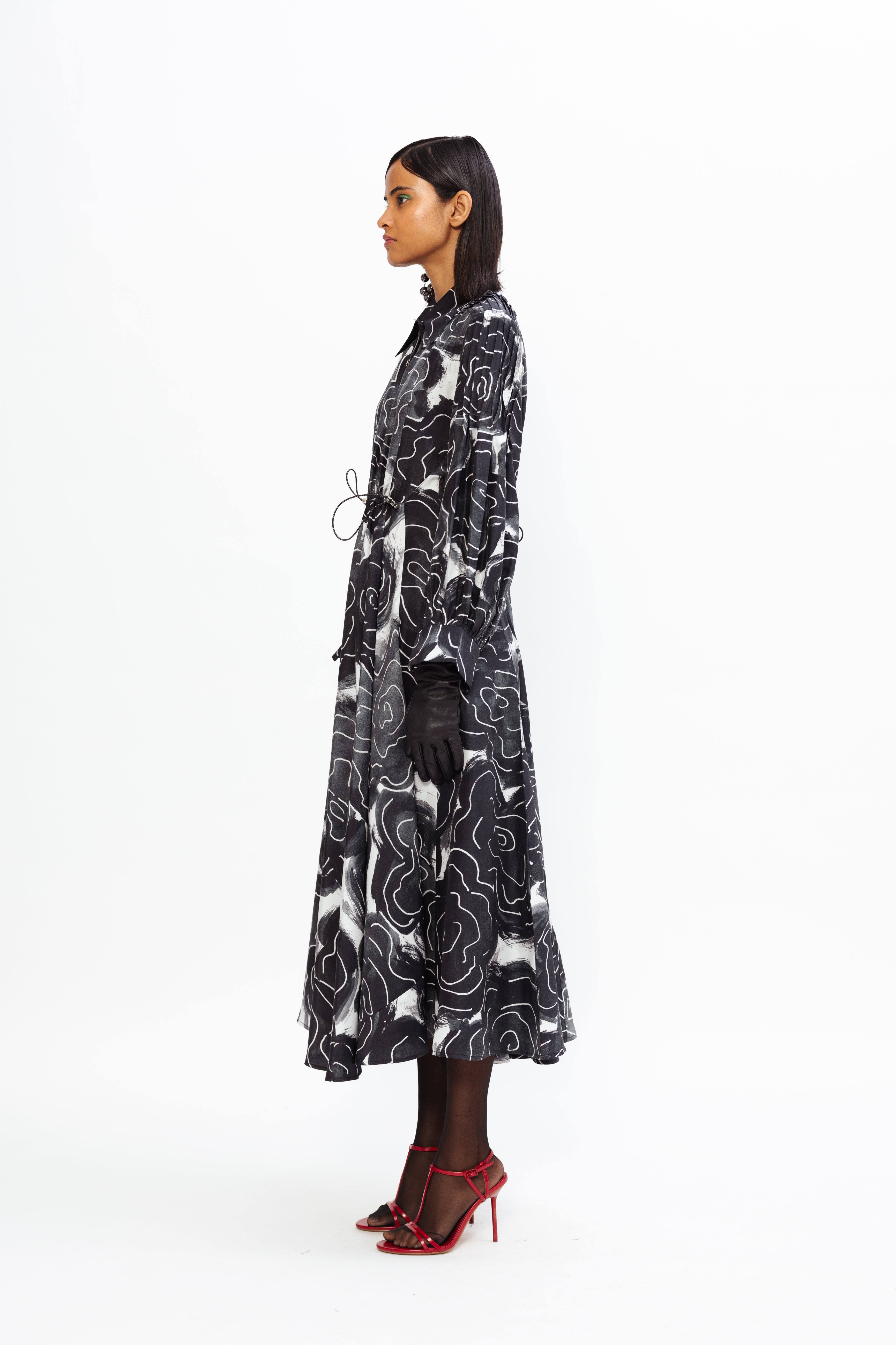 A quintessential winter staple, this luxurious silk dress combines comfort with understated elegance. Featuring adjustable drawstrings at the waist for a customizable fit, it flatters every silhouette. Perfect for night outs and dinners, it effortlessly blends sophistication with modern versatility.