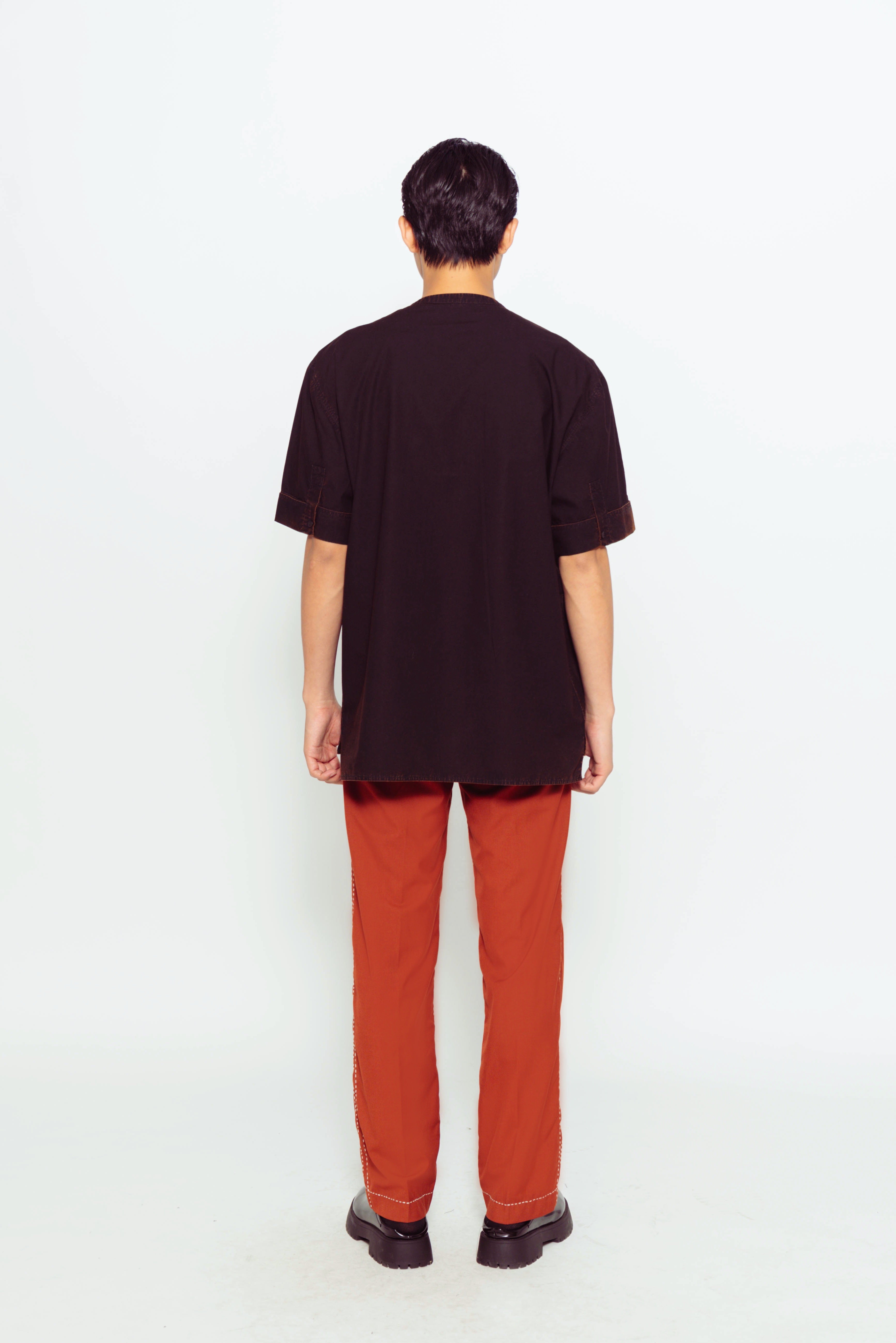 This over-washed half-sleeve shirt in a soft cotton, has chest patch pockets, a round neck, and a half placket, combining comfort with a stylish, cozy look ideal for casual wear.