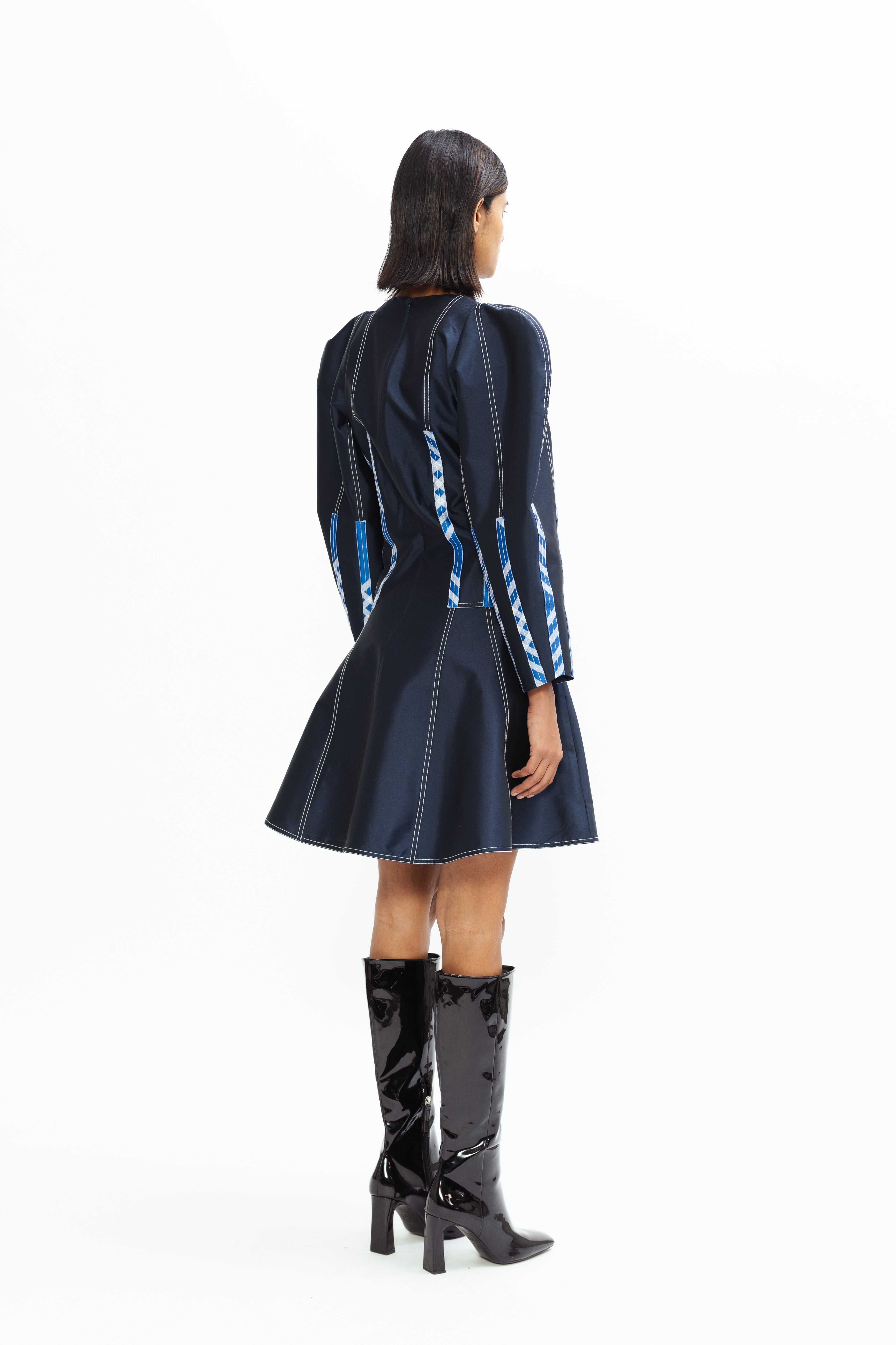Color: Midnight Blue + Tartan Print