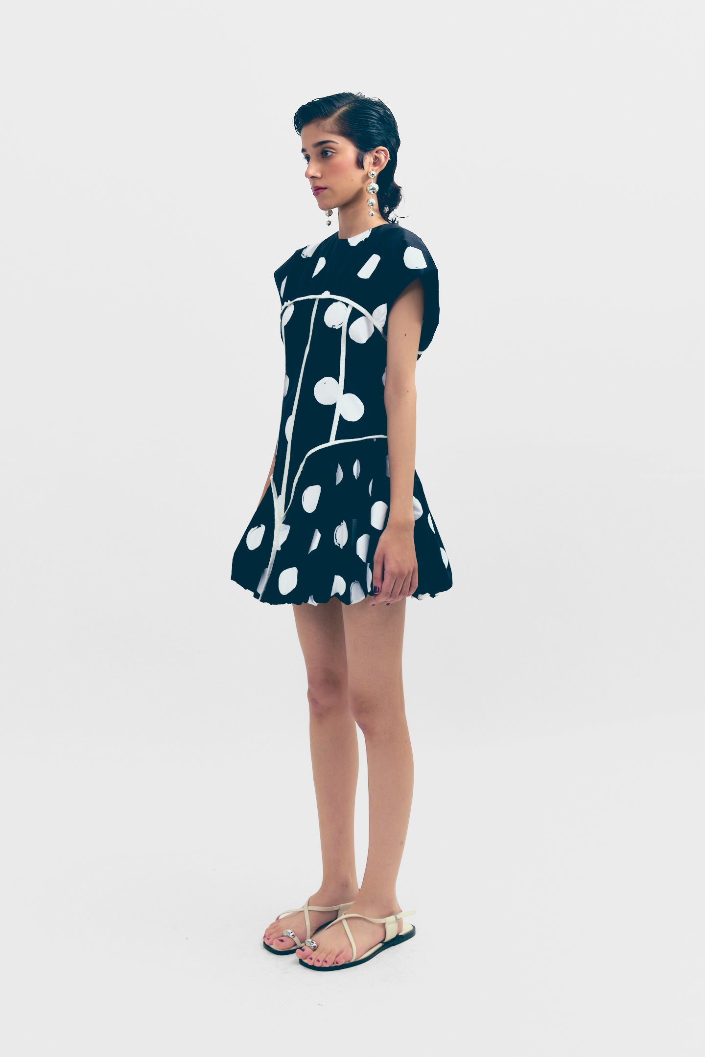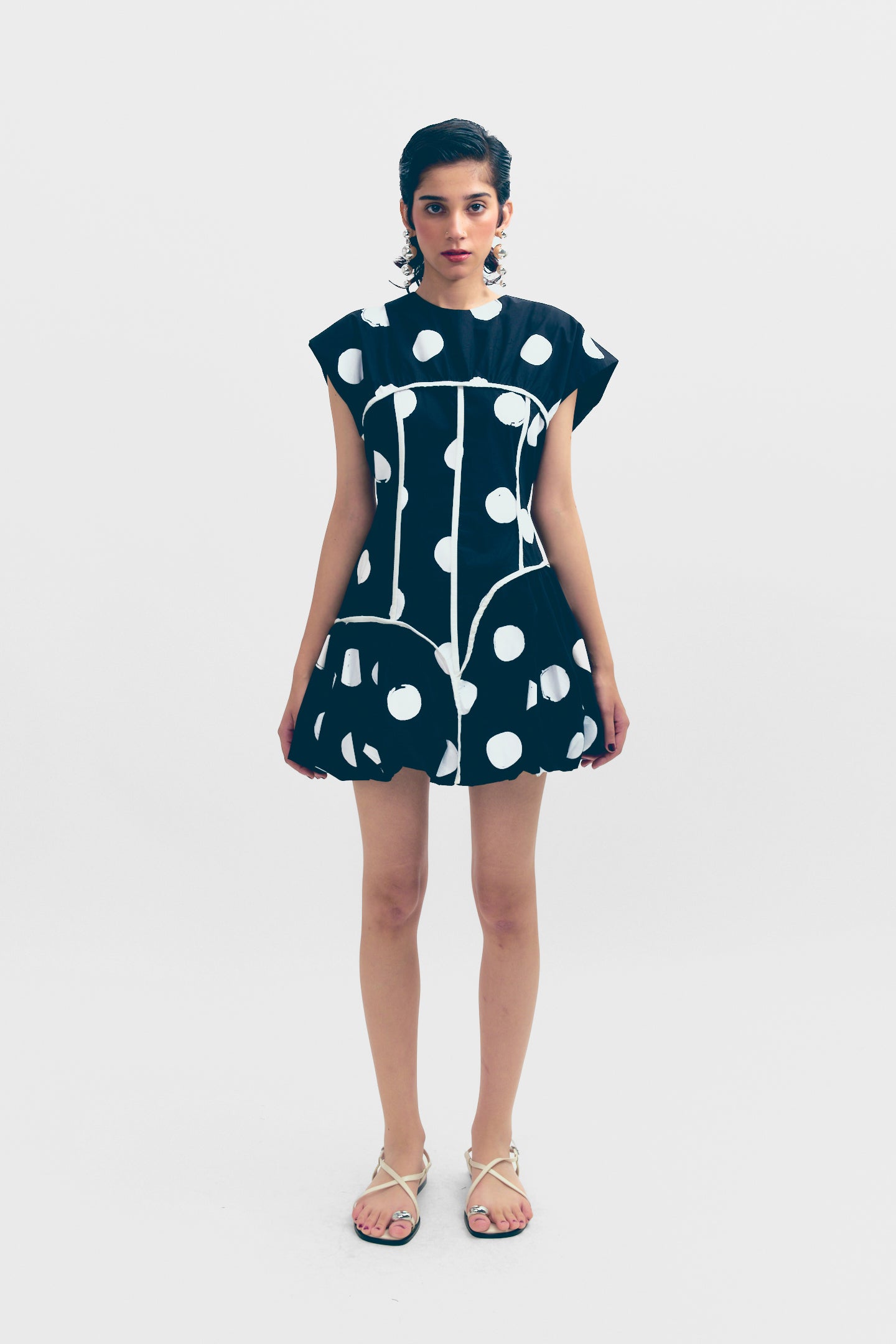 Turn heads in this Short Dress, featuring a structured corseted torso for a flattering fit and a voluminous balloon hem for a bold, modern silhouette. Perfect for making a statement, this design blends elegance with contemporary edge.