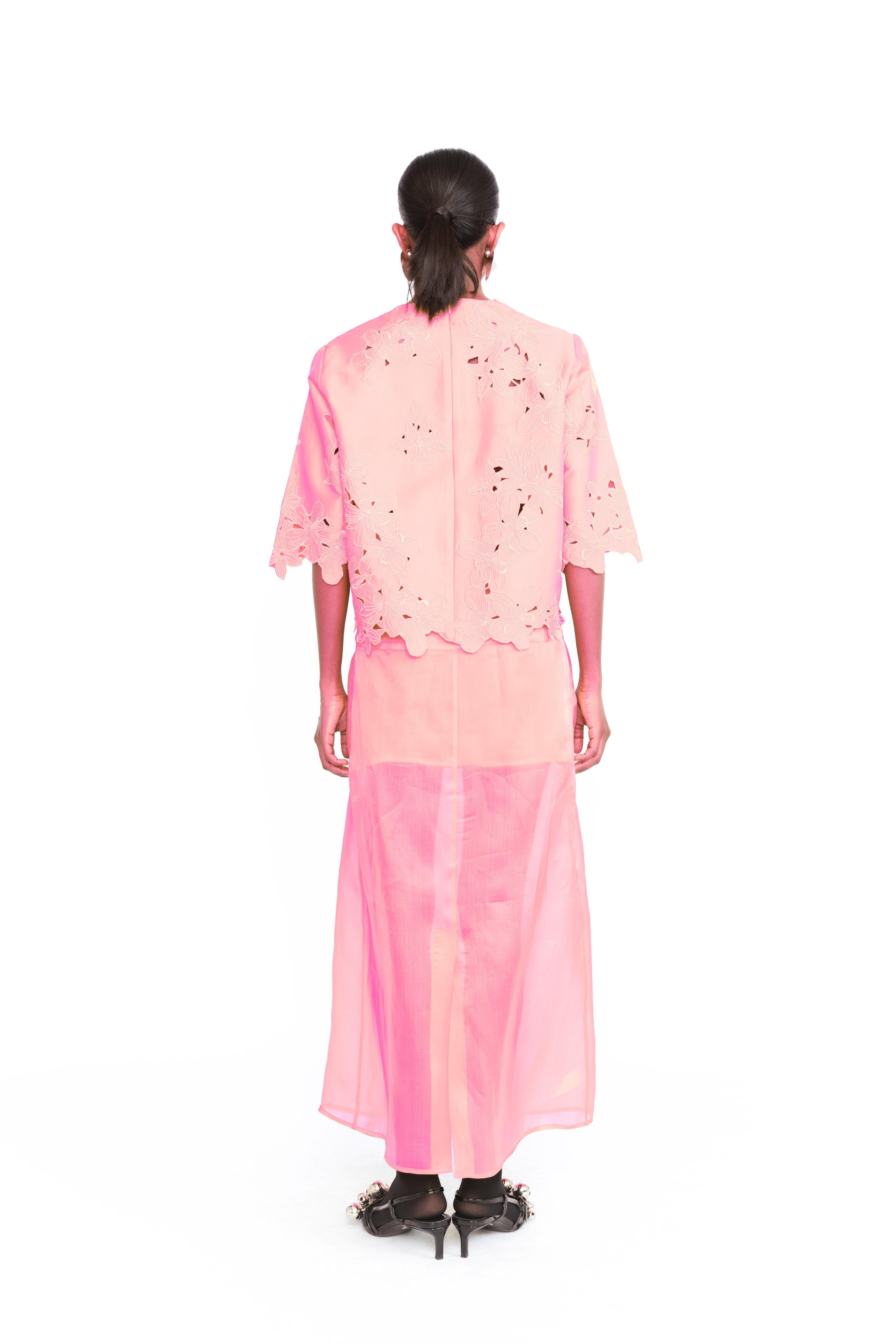 A study in shadow and intricacy, this cropped top is defined by its openwork surface—delicate yet deliberate. Negative space becomes pattern, with every cut and curve revealing just enough. Its form is fluid, shaped to follow the body with quiet elegance, while the surface shifts between opacity and air. A bold softness runs through it, offering both strength and lightness in one considered gesture.