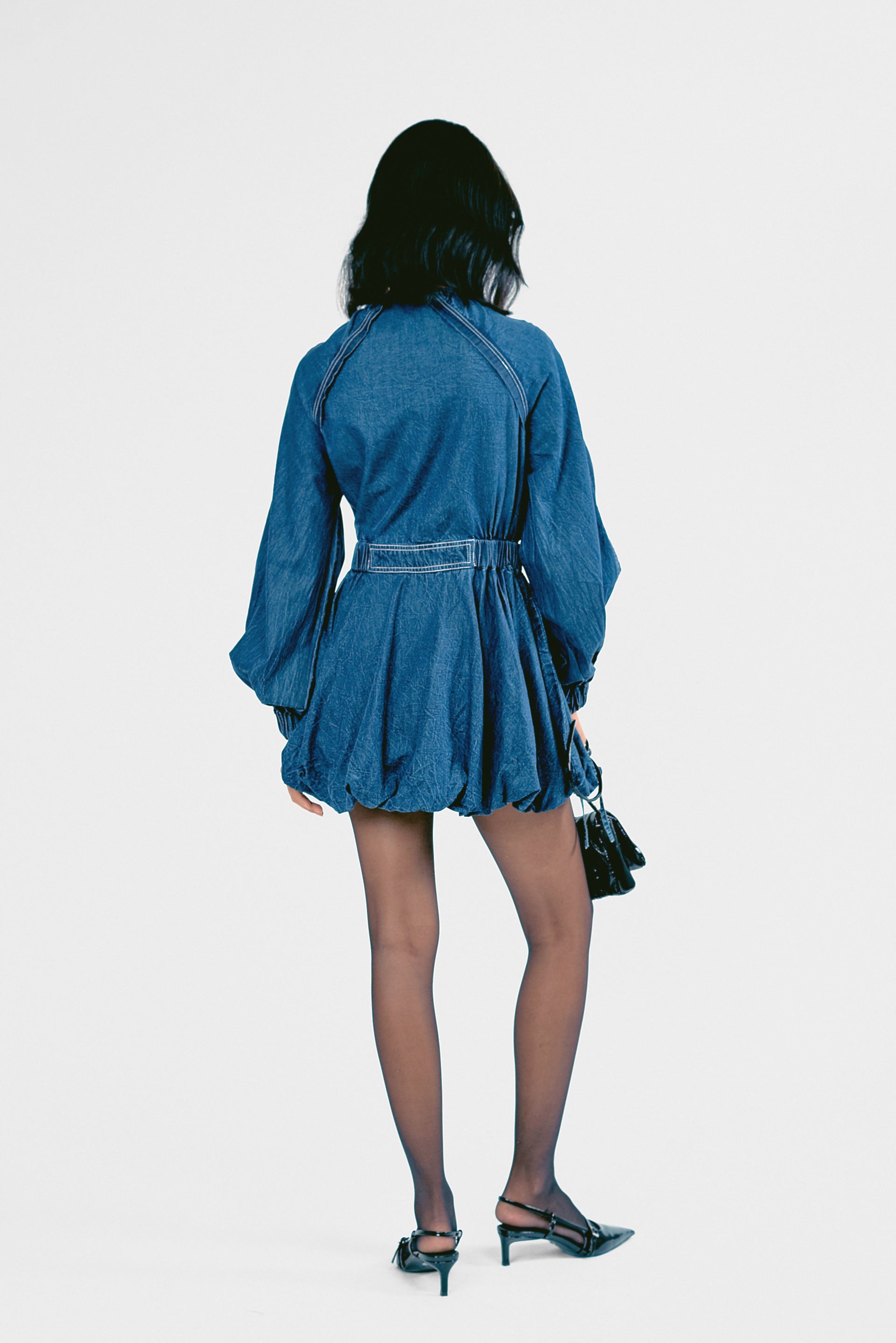 Step out in style with this Mini Denim Bounce Dress, designed for a playful yet structured look. Featuring a string belt for a cinched waist and a voluminous silhouette, it offers effortless movement and charm. Perfect for casual outings or dressed-up moments.