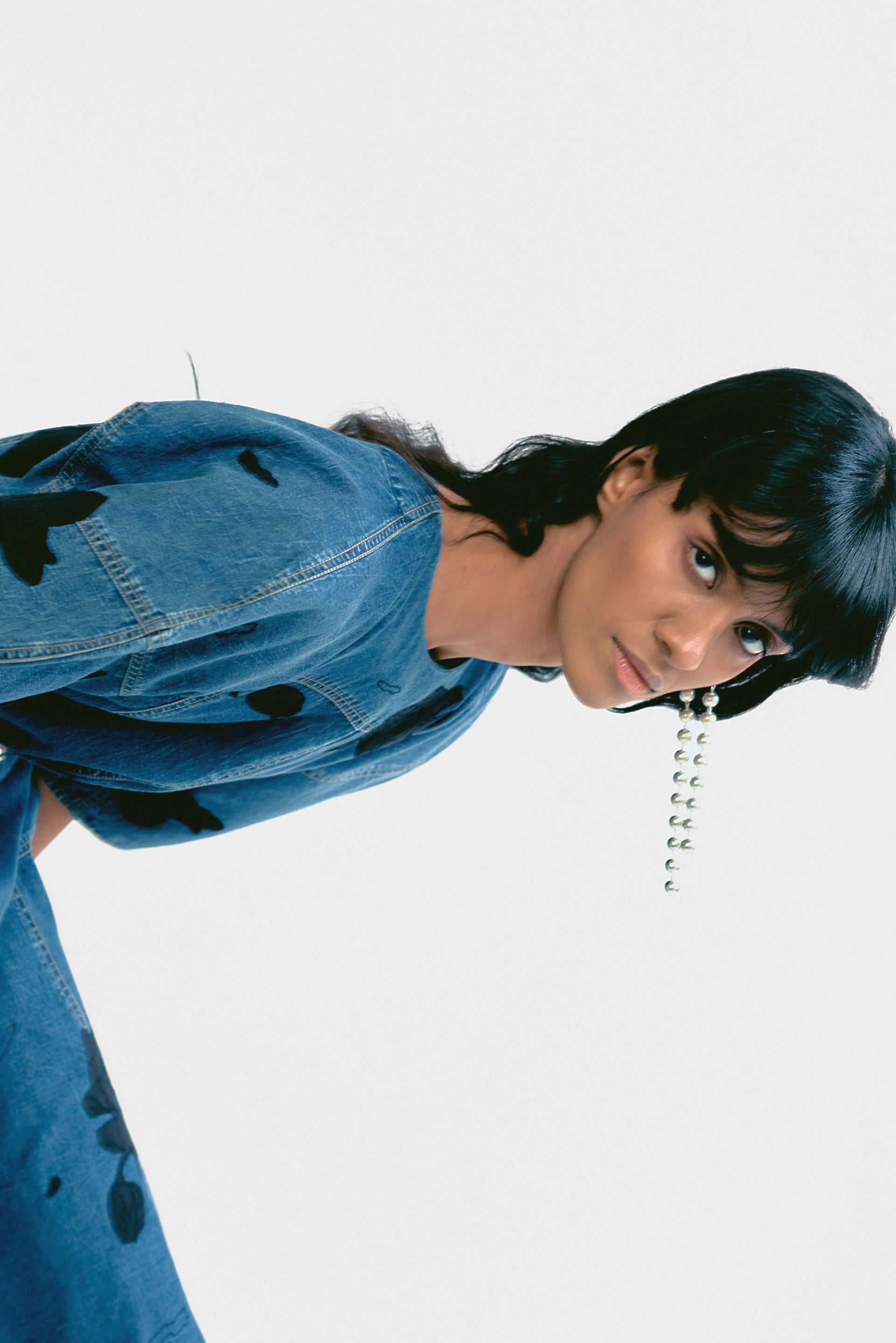 Turn heads in this Flora Freesia Patched Denim Fit & Flare Dress, featuring delicate Freesia appliqué patches for a feminine touch. The structured bodice flows into a flared skirt, creating a flattering silhouette with effortless movement. A perfect blend of classic denim and artistic detailing, it's a standout piece for any occasion.
