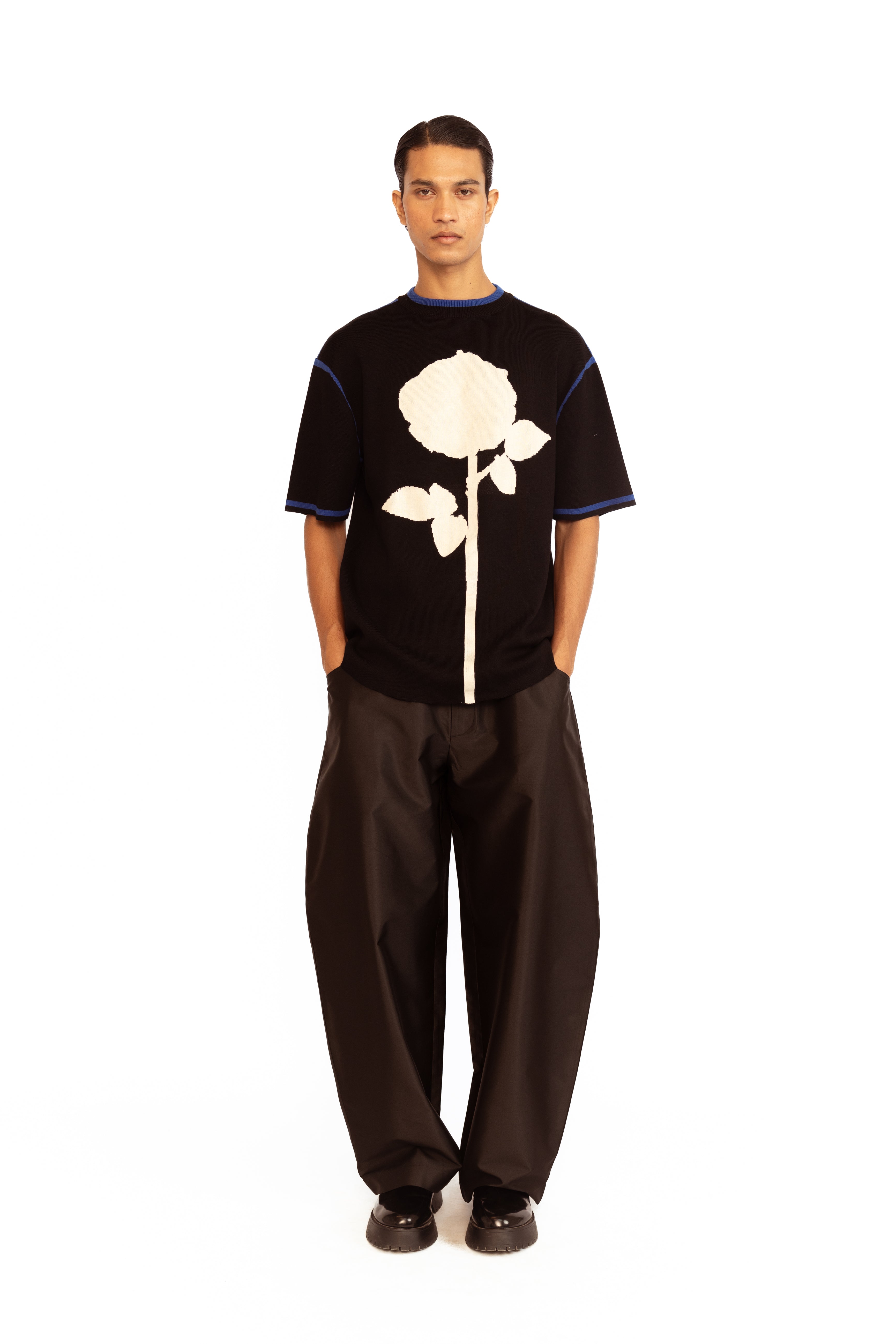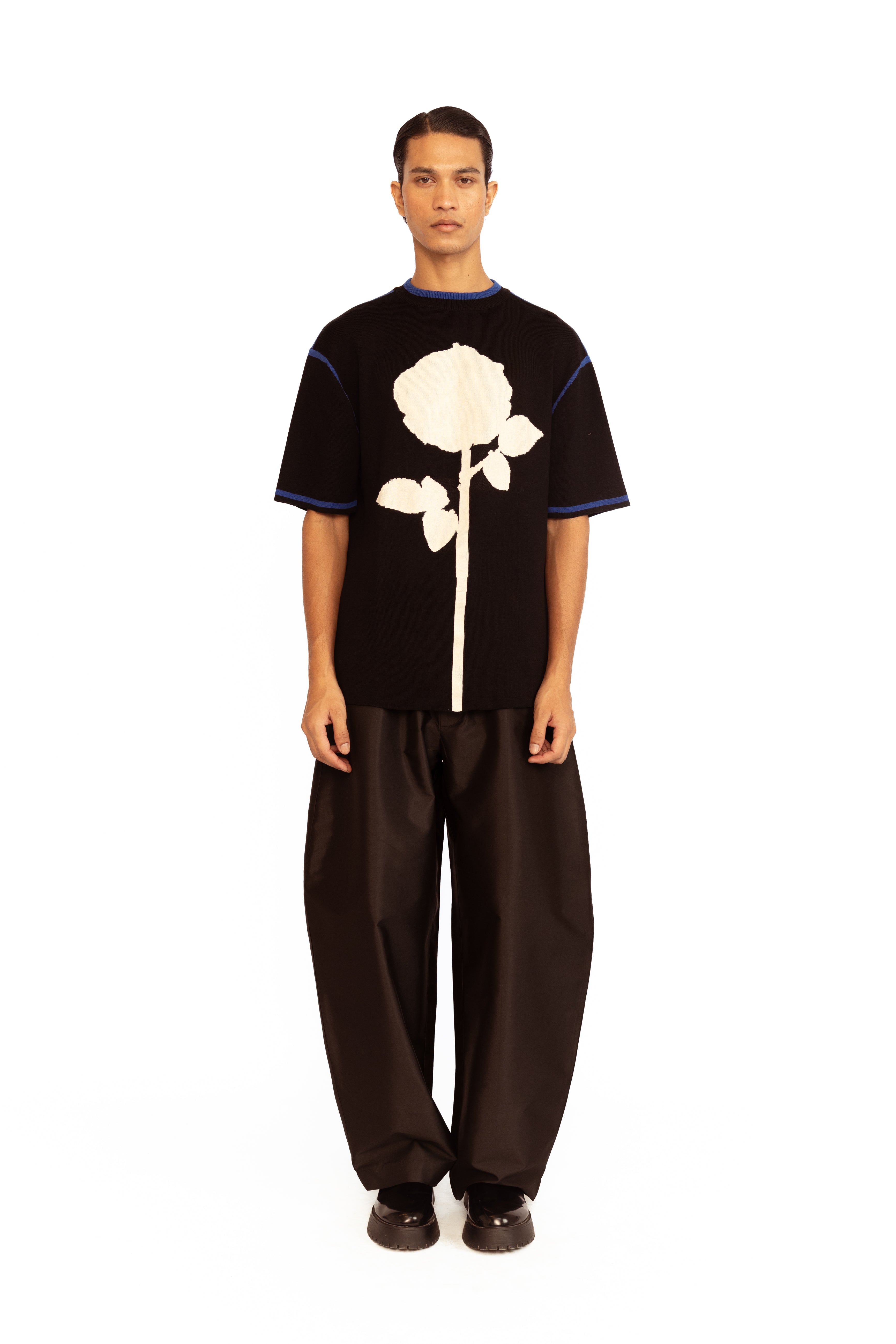 A casual staple with artistic flair. This knit tee features a striking floral artwork that adds a touch of creativity and personality to a classic silhouette. Soft, breathable fabric ensures all-day comfort, making it perfect for effortless, everyday style.