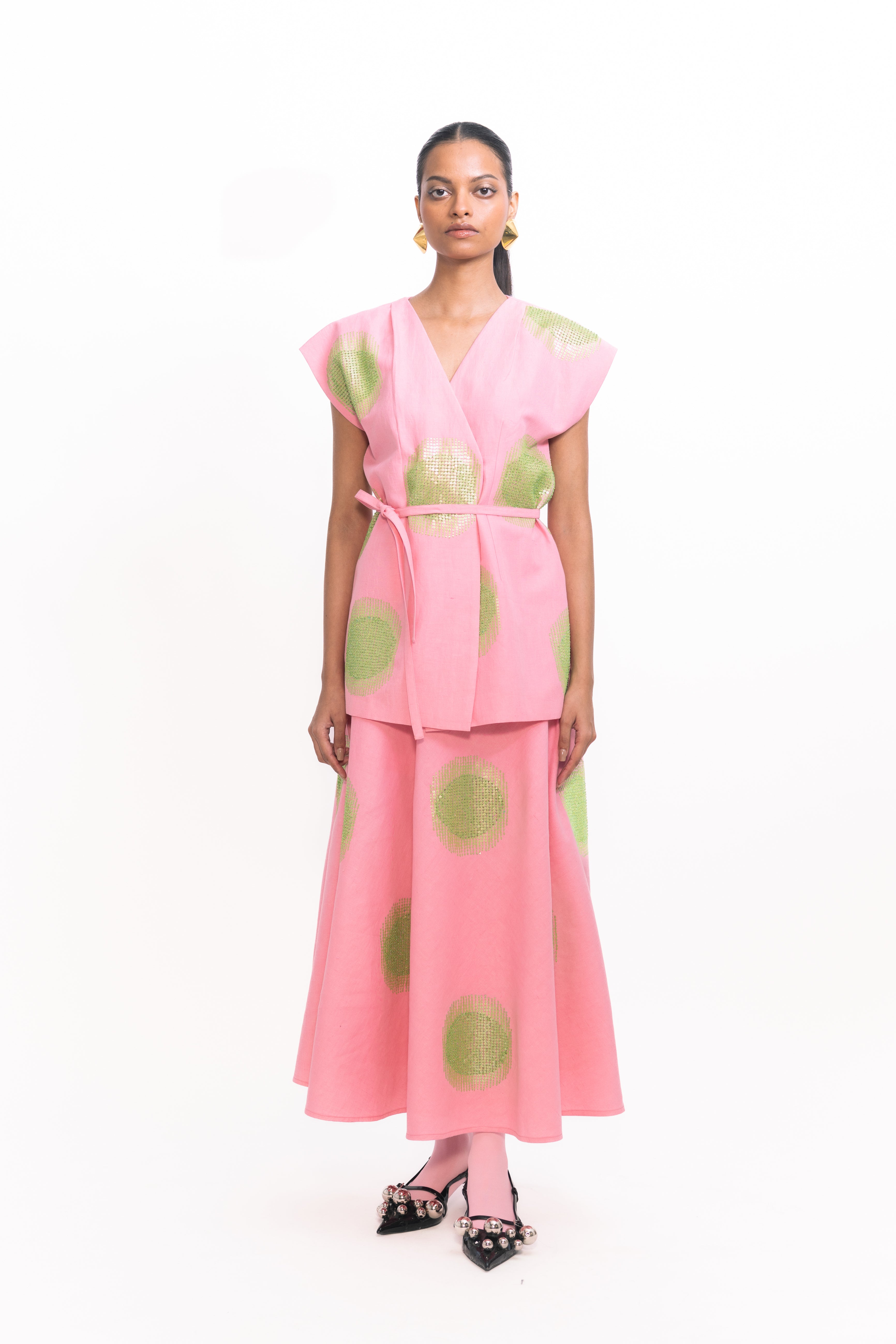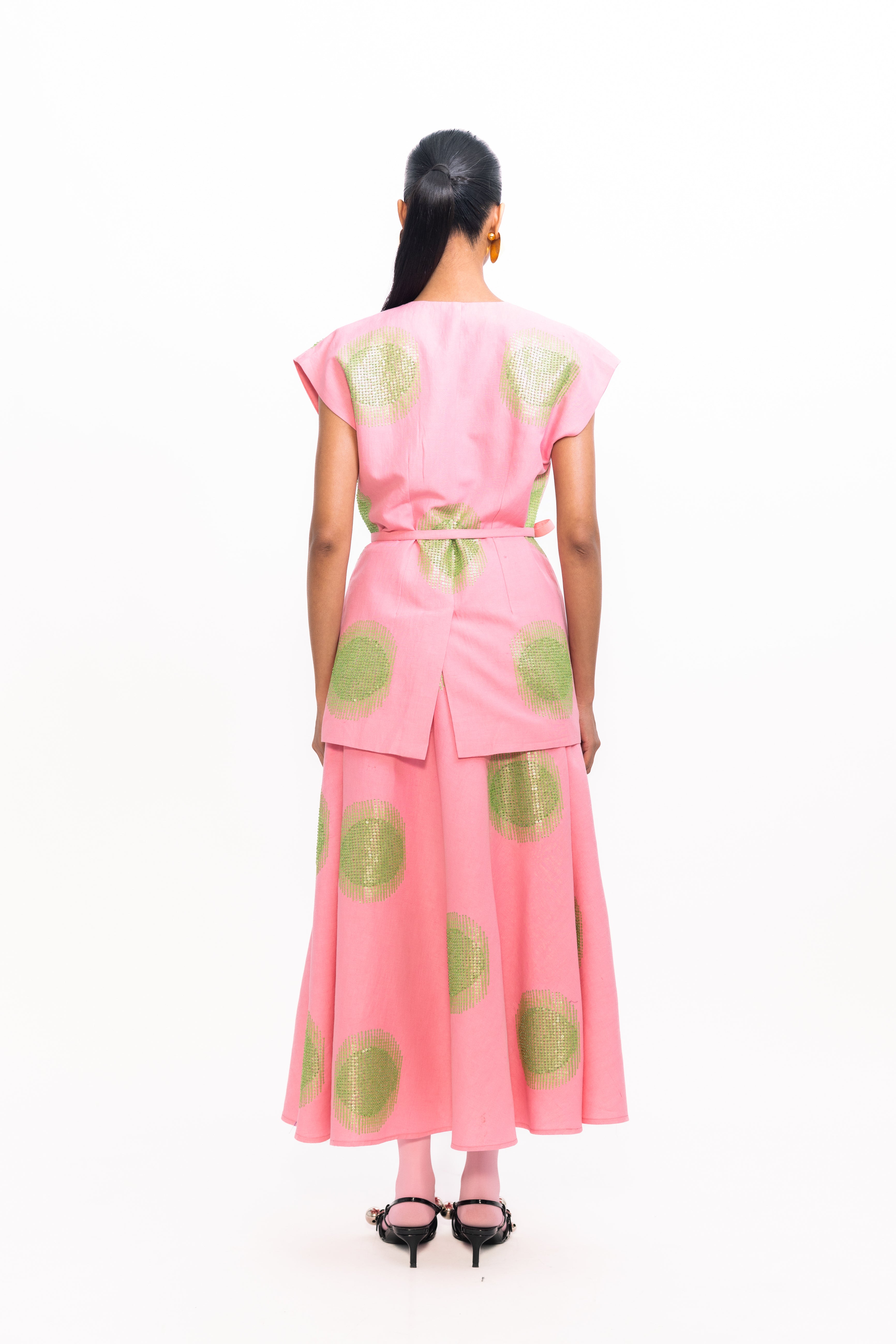 This flared skirt offers elegant volume and a beautifully structured silhouette. The crisp fabric holds its shape while creating graceful movement, making it an ideal choice for evening occasions, festive gatherings, or chic daytime styling.