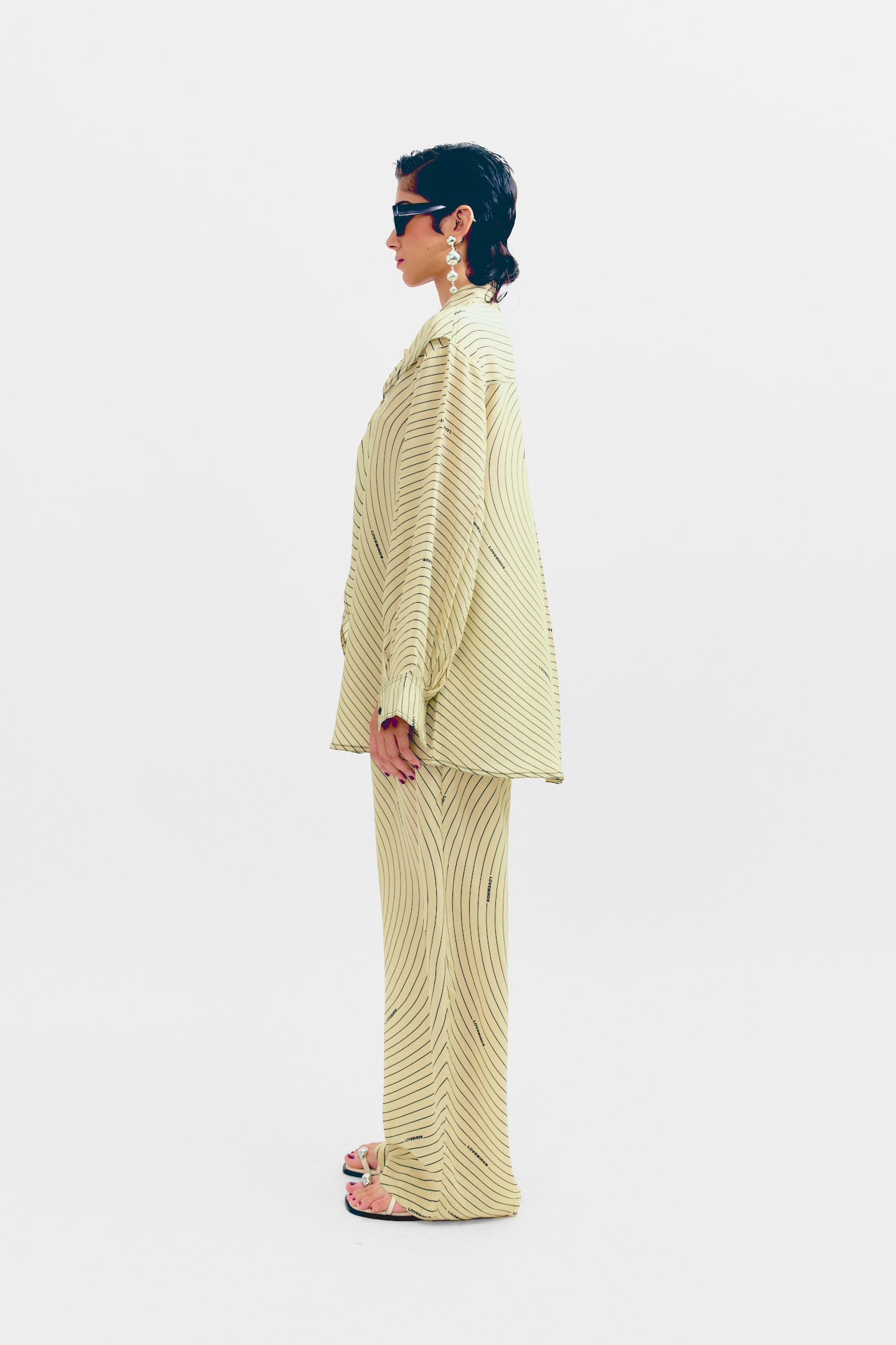 A unique twist on a classic shirt, this piece features an attached triangle scarf detail that adds effortless style and a layered look. Designed with a relaxed fit, it blends structure and softness—perfect for both casual and elevated outfits.