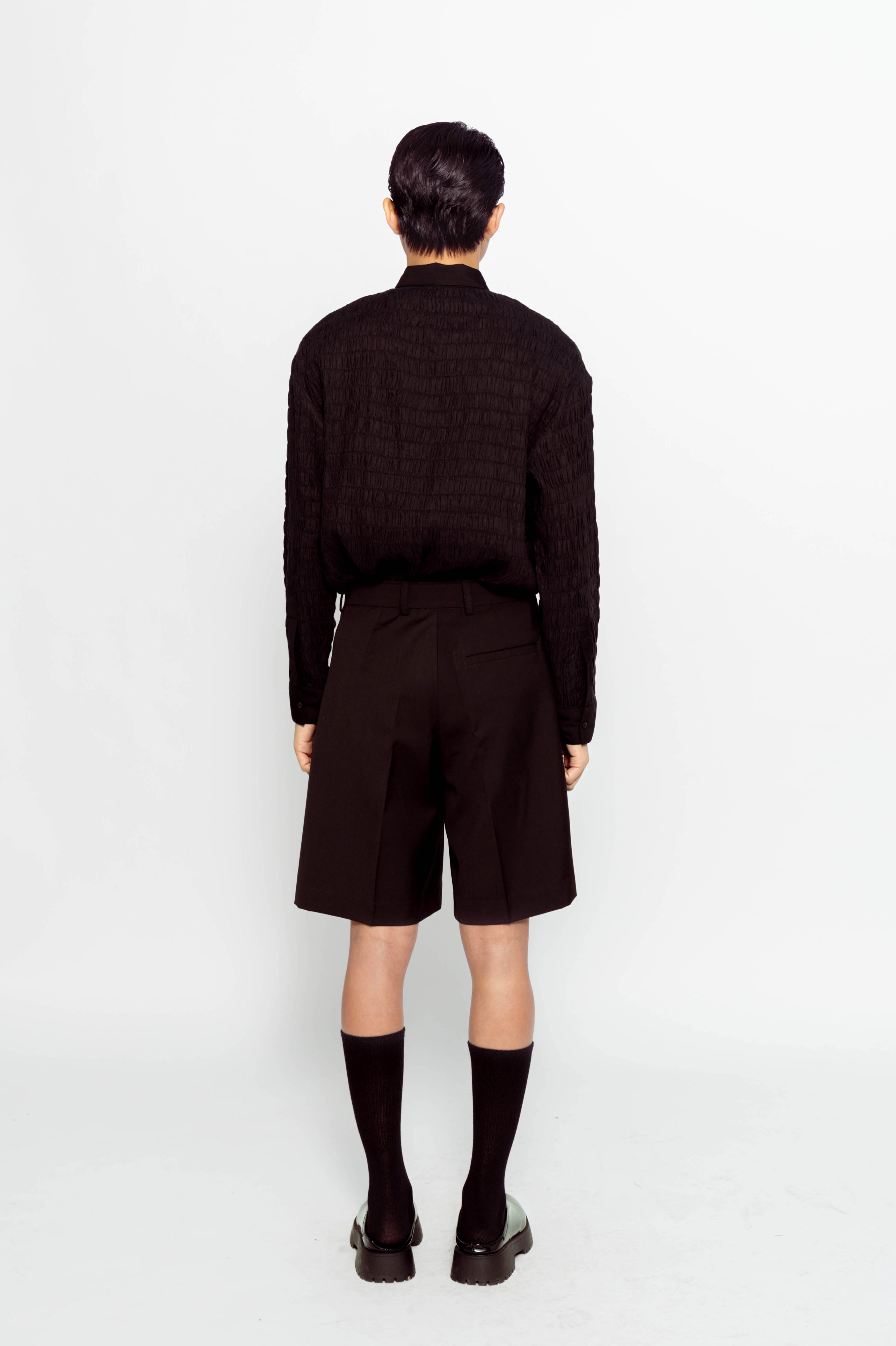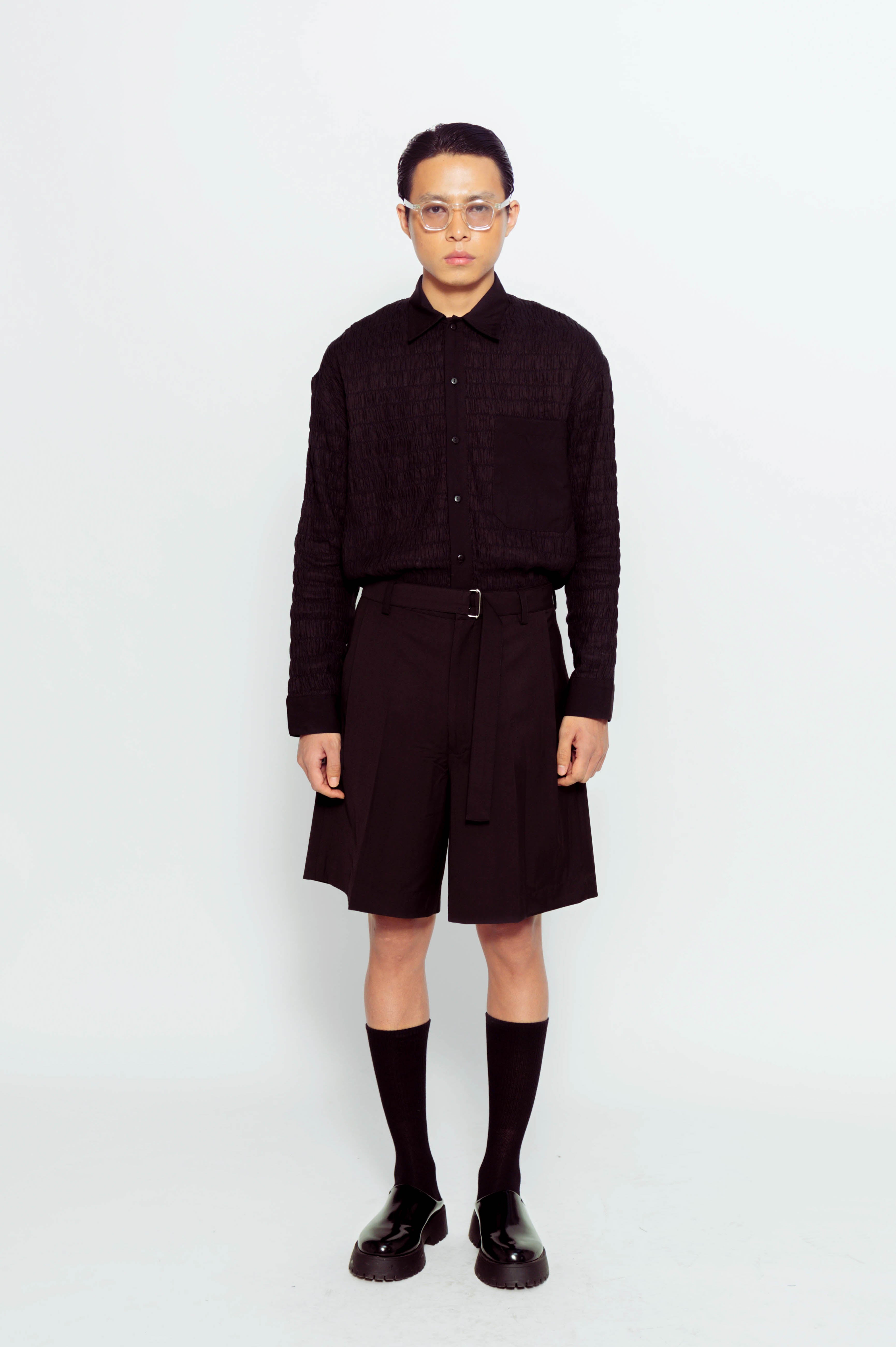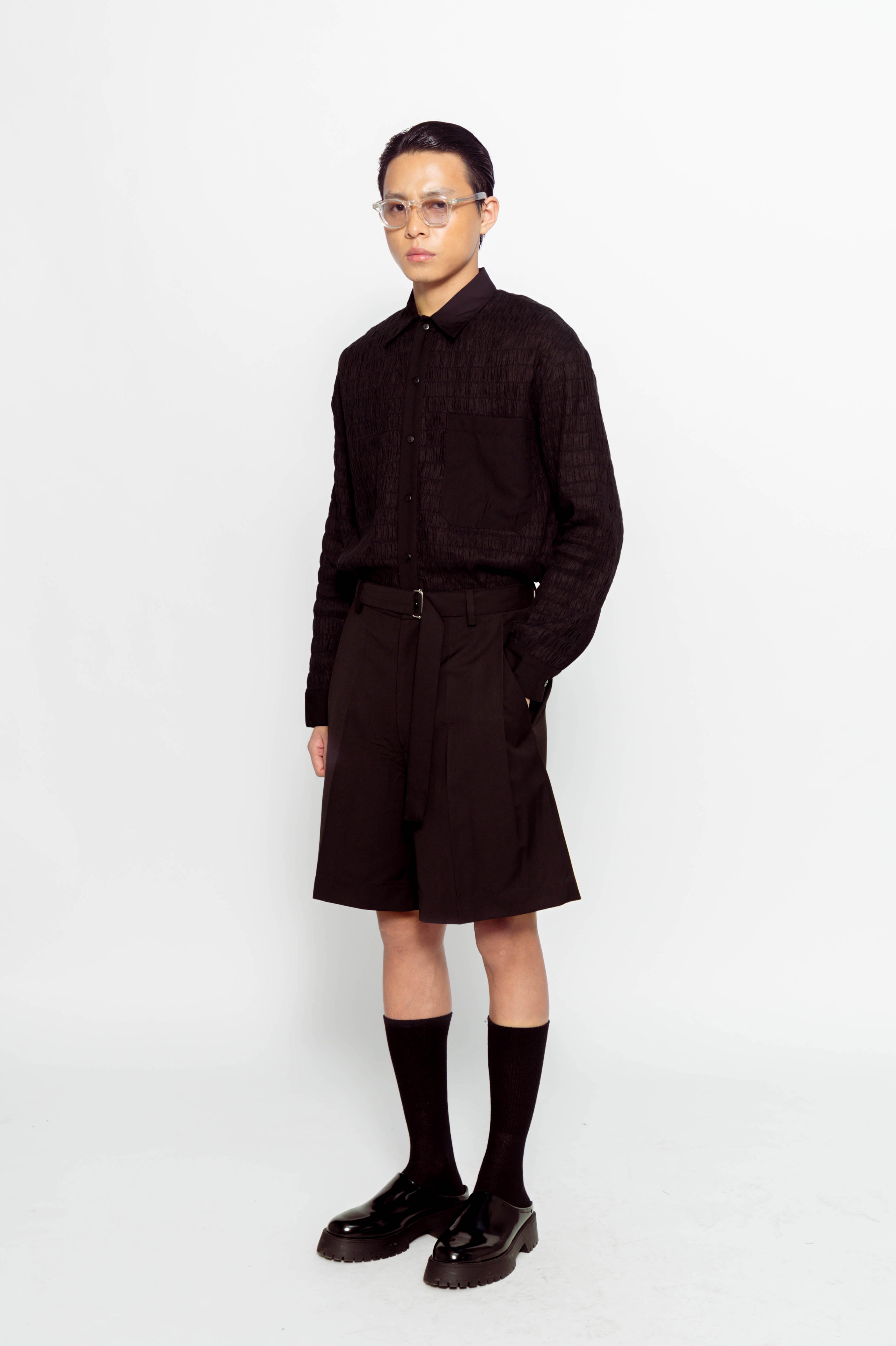 This men's handloom linen full-sleeve shirt with shirring detail offers textured gathers for a stylish, comfortable, and unique look.
