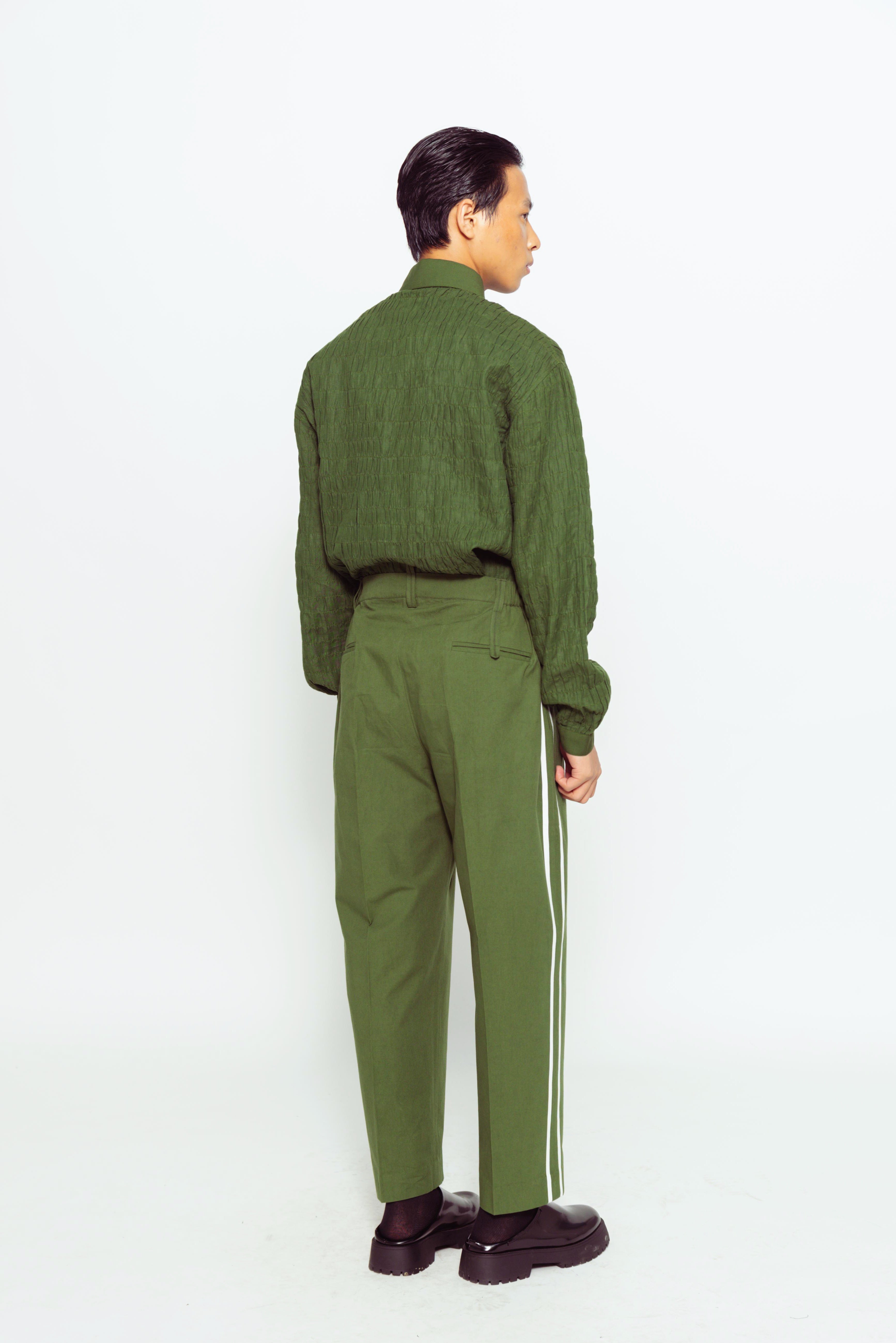 Cotton ripstop trousers with contrast side slots and side elastic offer durability, comfort, and a stylish design for casual or active wear.