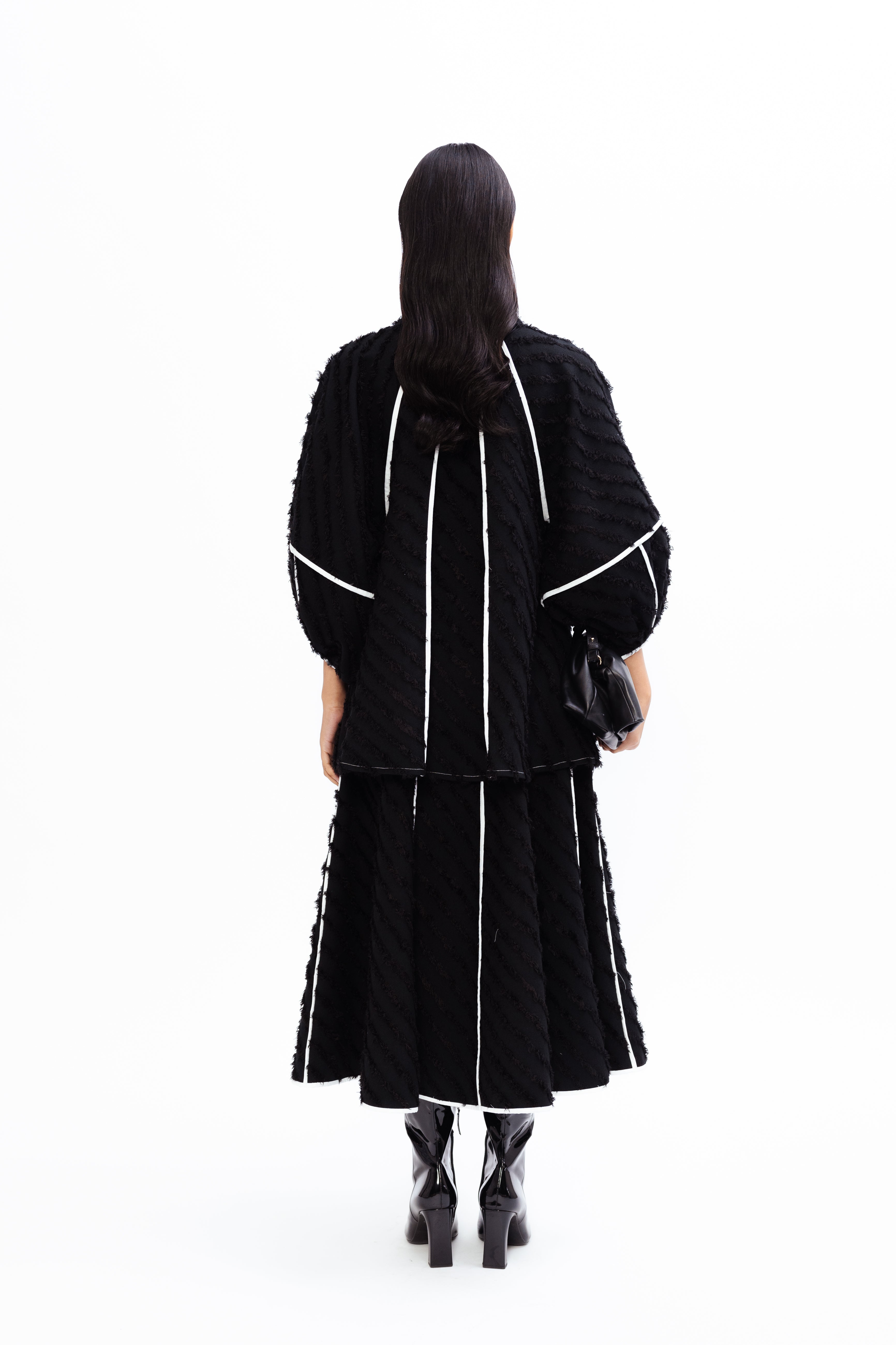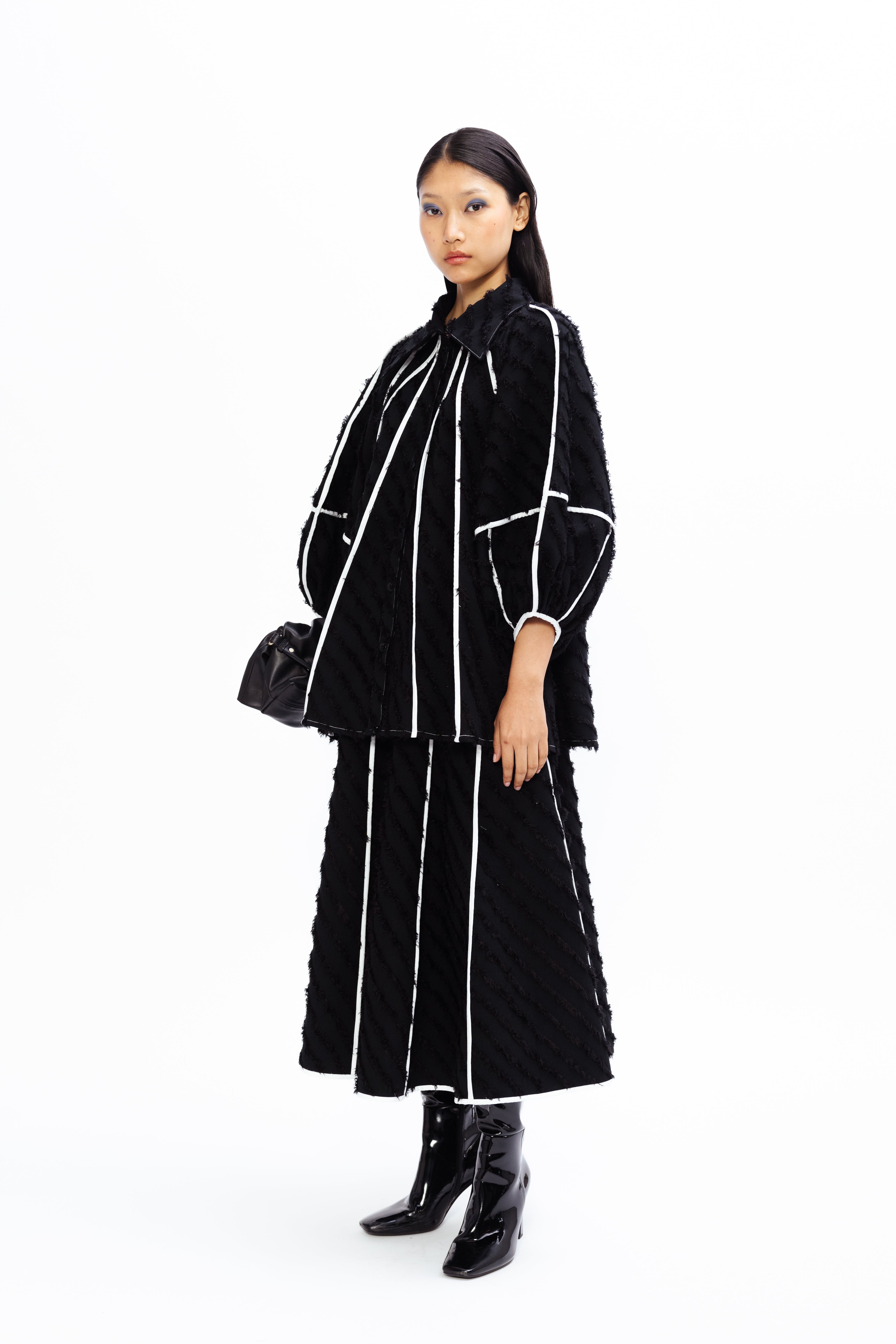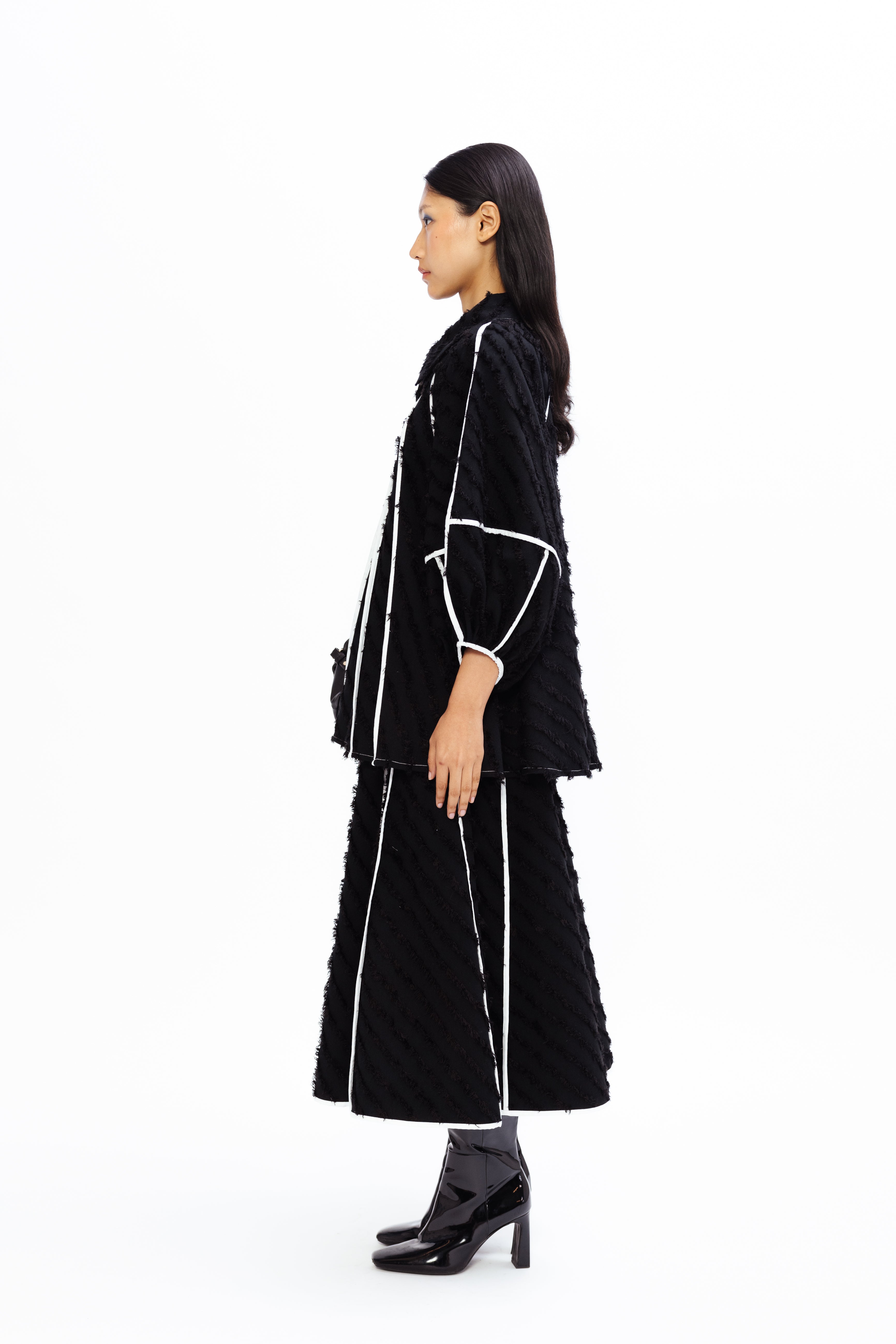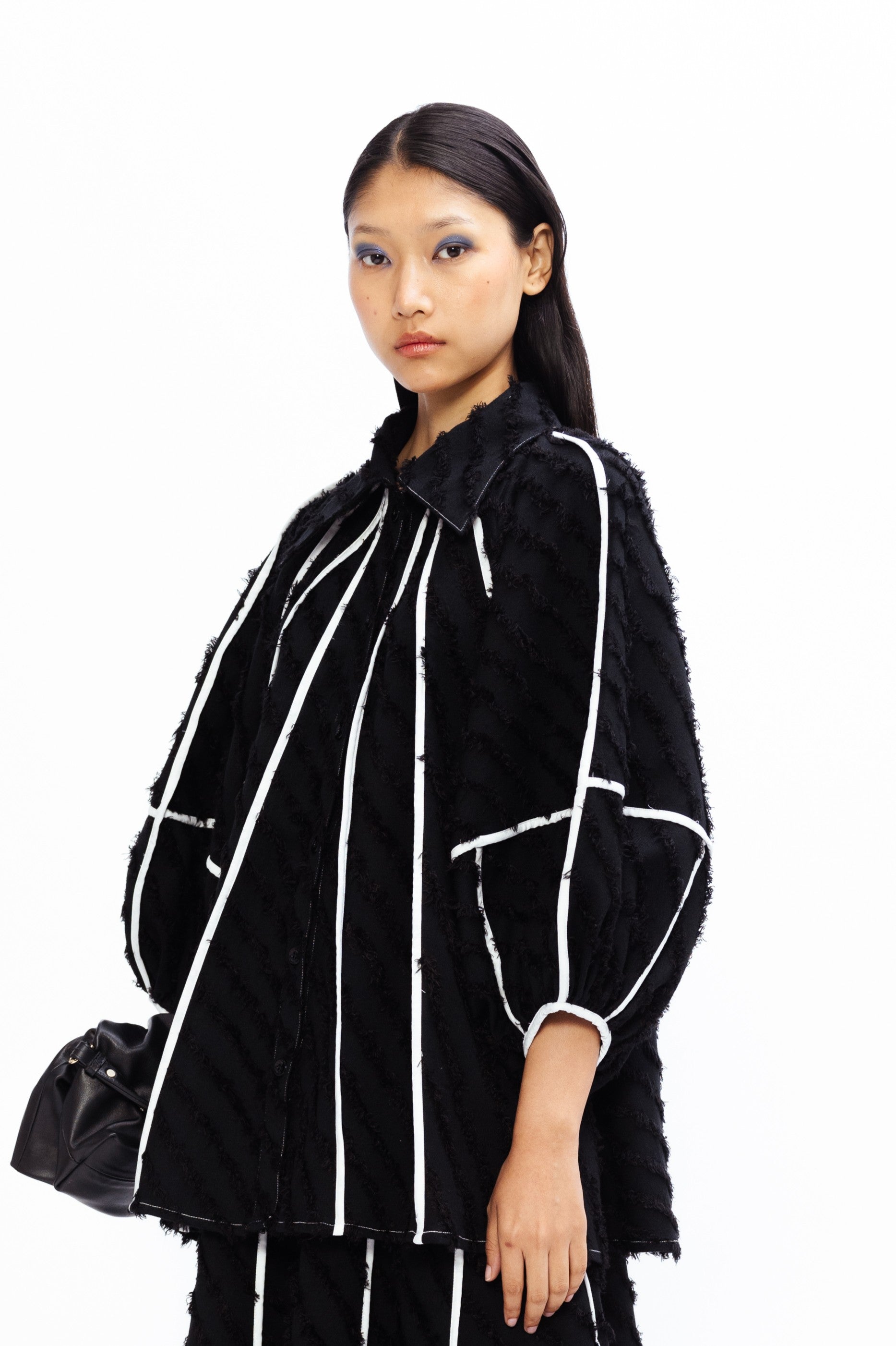 An easy-to-wear classic, this wool shirt features striking contrast detailing that elevates its timeless appeal. The multi-paneled design adds depth and visual interest, while the colossal sleeves introduce a touch of drama. Finished with contrast slotting, it’s a uniquely detailed piece that blends sophistication with modern flair.